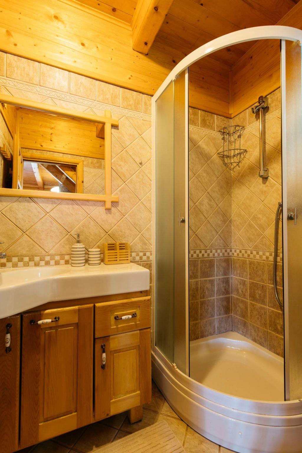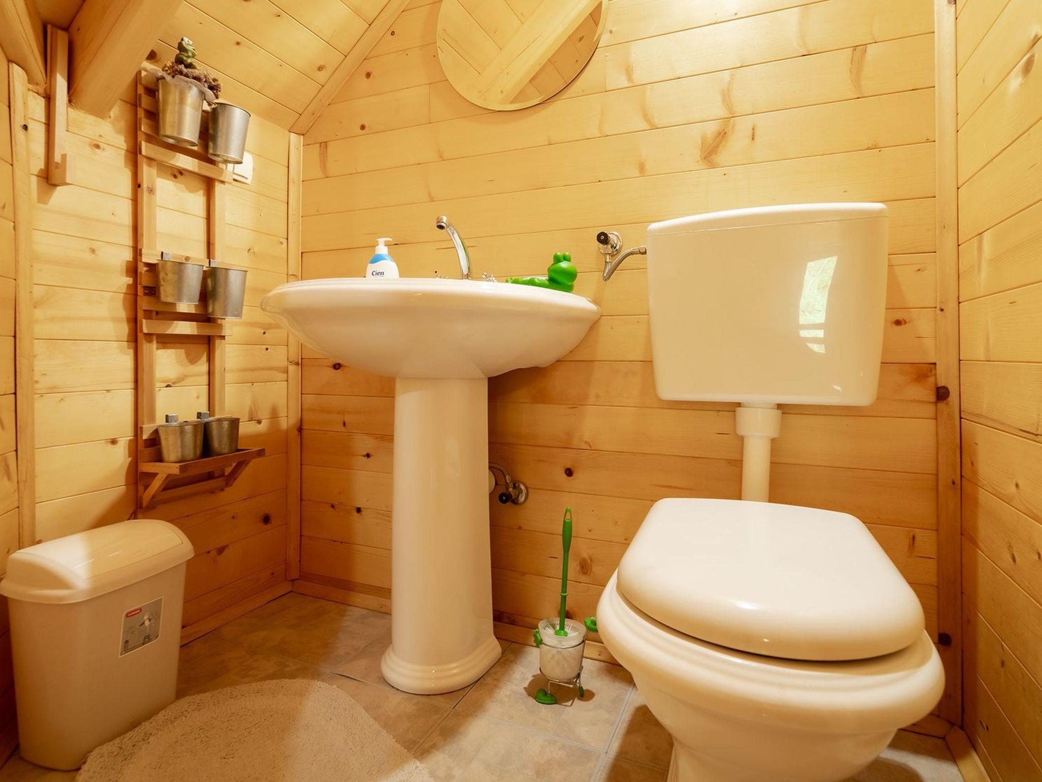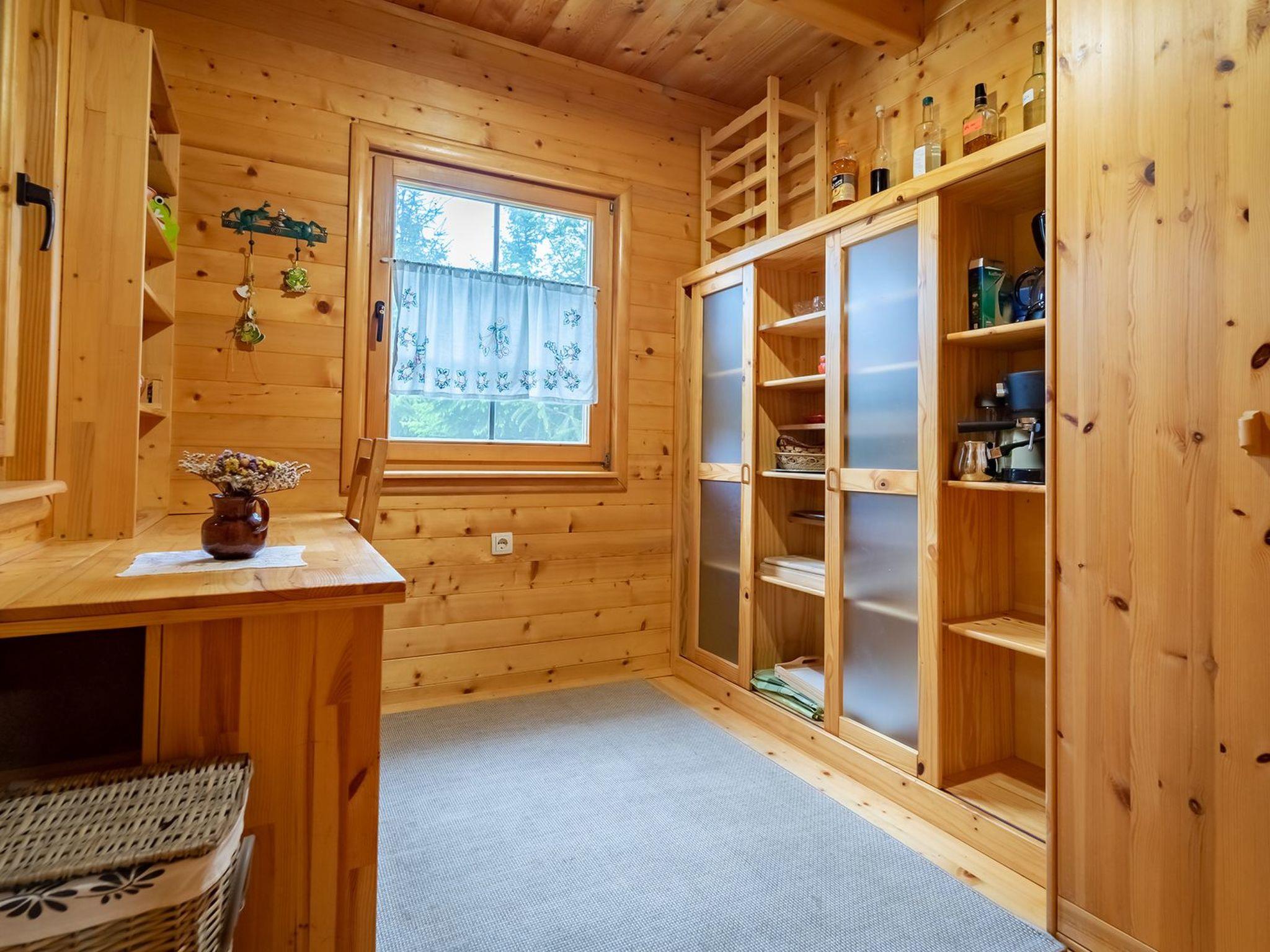 Das schöne Holzhaus besteht aus zwei Etagen, insgesamt 80 m². Das Erdgeschoss ist ca. 40 m² groß und besteht aus folgenden Räumen: Wohnzimmer mit Kamin, Flachbildfernseher mit SAT, Doppelschlafcouch, Bad mit Dusche und WC, Küche/Esszimmer mit Backofen, Cerankochfeld, Kühlschrank, Gefrierschrank, Mikrowelle, Toaster, Kaffeemaschine, Wasserkocher, Spülmaschine und Waschmaschine. Im ersten Stock gibt es drei Schlafzimmer und eine Toilette. Ein Schlafzimmer hat ein Doppelbett (1,60m), ein Schlafsofa für eine Person und einen Balkon mit schönem Waldblick. Das zweite Schlafzimmer hat ein Doppelbett (1,60 m) und das dritte Schlafzimmer hat zwei Einzelbetten (2x 0,90 m).