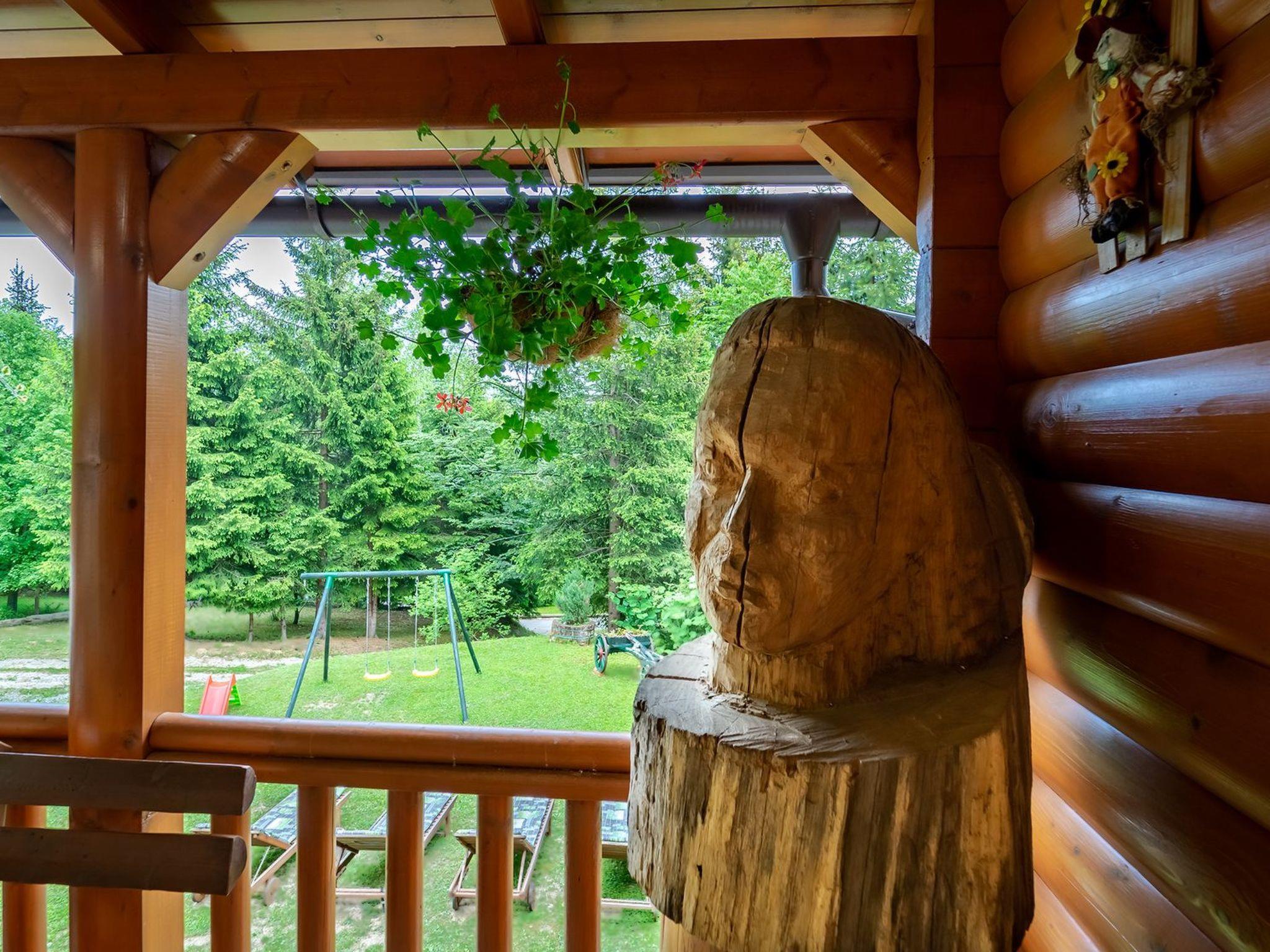 Das ganze Haus ist aus Holz gebaut und hat eine angenehme und entspannende Atmosphäre. Das Haus ist von Wald umgeben und bietet Ihnen viel Platz zum Entspannen und Spielen an der frischen Luft.