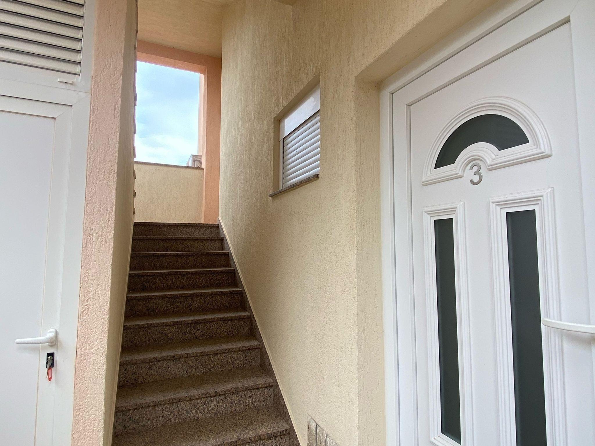 Ferienwohnung bietet Platz für 5 Gäste. Die Betten sind in Schlafzimmern, die es 2 gibt, innerhalb einer Gesamtfläche von 65m2, angeordnet. Die Gäste haben einen eigenen Balkon zur Verfügung, auf der sie in warmen Sommernächten genießen können. Das Apartment bietet Meerblick. Es ist erlaubt, Speisen auf dem Gemeinschafts-Grill vorzubereiten. In der Unterkunftseinheit besteht die Möglichkeit des Mitbringens von Haustieren gegen Aufpreis. IM PREIS INBEGRIFFEN: Kurtaxe, Endreinigung, Klimatisierung, Parkplatz, Internet, Kinderbett, Bügeleisen, Bügelbrett. VERBINDLICHE ZUSÄTZLICHE KOSTEN: Aufzahlung für Kurzaufenthalte (prozentualer Zuschlag pro Nächtigungsanzahl: 30% - 1, 20% - 2, 10% - 3). UNVERBINDLICHE ZUSÄTZLICHE KOSTEN: Haustiere (10,00 € pro Nacht), Zusatzbett (10,00 € pro Nacht). Die Verfügbarkeit zusätzlicher Dienstleistungen in Ihrem reservierten Termin und die Preise derselben (falls nicht aufgeführt) müssen im Voraus überprüft werden. Zusätzliche Dienstleistungen die in der Zahlungsaufforderung nicht aufgeführt sind werden direkt beim Vermieter bezahlt, angenommen der Gast nutzt auch diese.