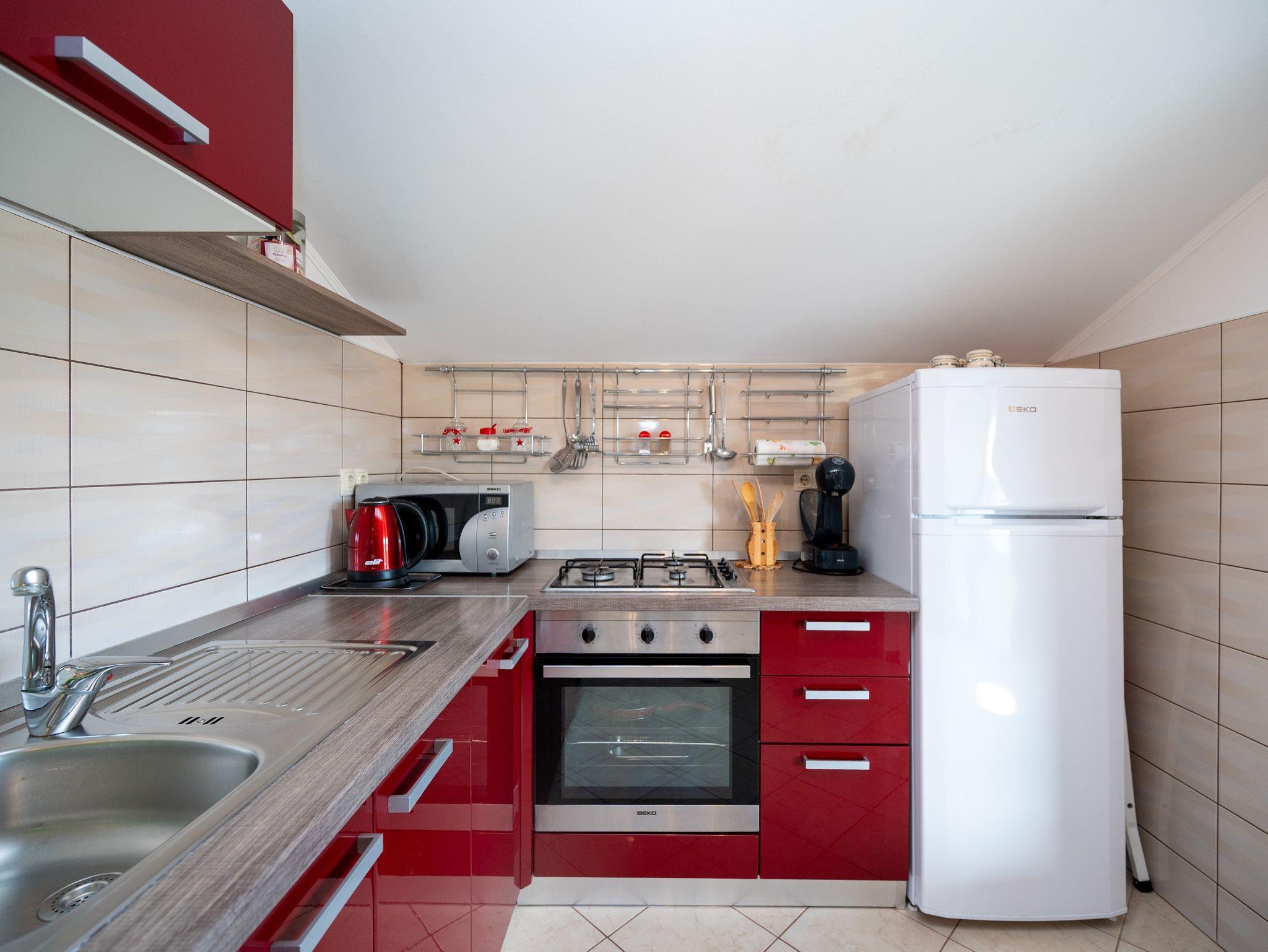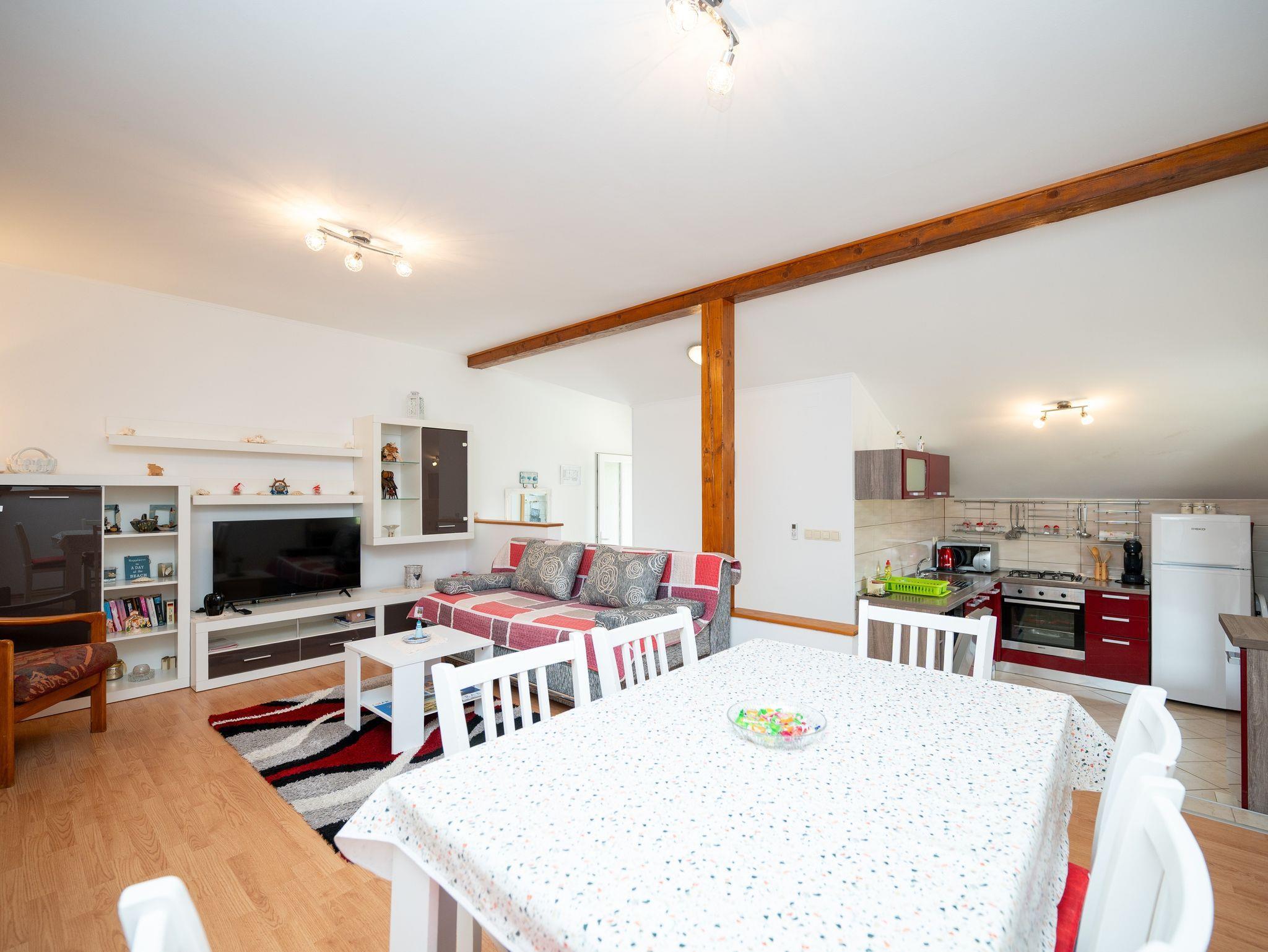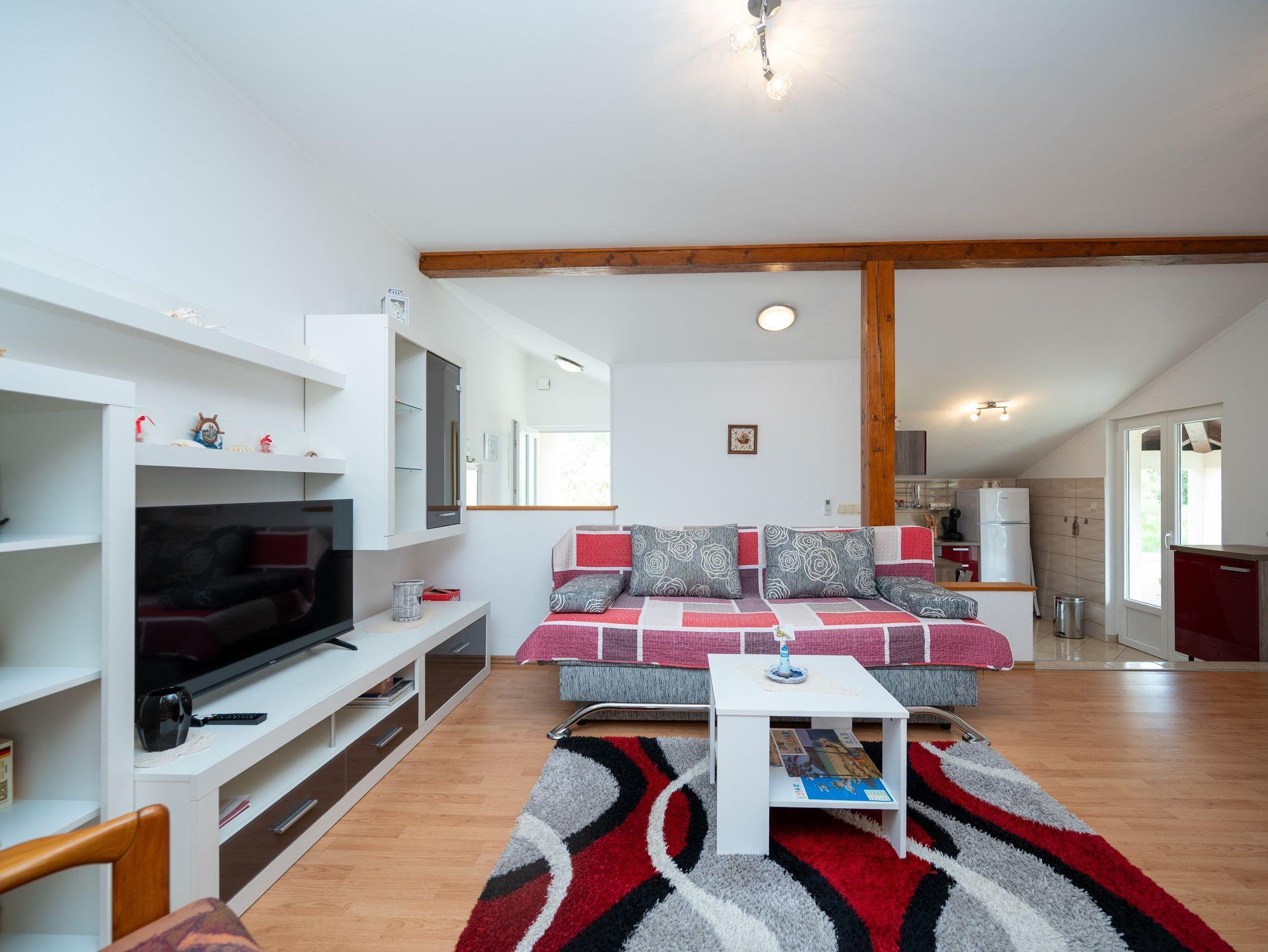Ferienwohnung bietet Platz für 4 Gäste. Die Betten sind in Schlafzimmern, die es 2 gibt, innerhalb einer Gesamtfläche von 48m2, angeordnet. Die Gäste haben eine eigene Terrasse zur Verfügung, auf der sie in warmen Sommernächten genießen können. Das Apartment bietet Meerblick. Es ist erlaubt, Speisen auf dem Gemeinschafts-Grill vorzubereiten. In der Unterkunftseinheit besteht die Möglichkeit des Mitbringens von Haustieren gegen Aufpreis. IM PREIS INBEGRIFFEN: Kurtaxe, Endreinigung, Klimatisierung, Parkplatz, Internet, Kinderbett, Bügeleisen, Bügelbrett, Föhn. VERBINDLICHE ZUSÄTZLICHE KOSTEN: Aufzahlung für Kurzaufenthalte (prozentualer Zuschlag pro Nächtigungsanzahl: 30% - 1, 20% - 2, 10% - 3). UNVERBINDLICHE ZUSÄTZLICHE KOSTEN: Haustiere (10,00 € pro Nacht). Die Verfügbarkeit zusätzlicher Dienstleistungen in Ihrem reservierten Termin und die Preise derselben (falls nicht aufgeführt) müssen im Voraus überprüft werden. Zusätzliche Dienstleistungen die in der Zahlungsaufforderung nicht aufgeführt sind werden direkt beim Vermieter bezahlt, angenommen der Gast nutzt auch diese.