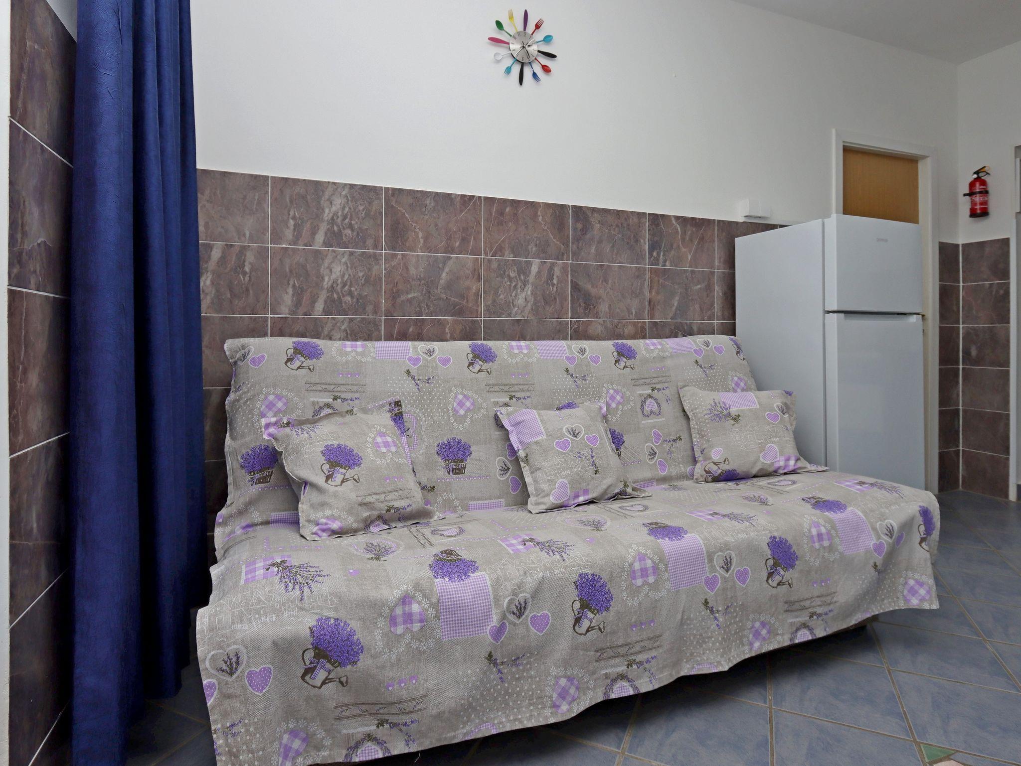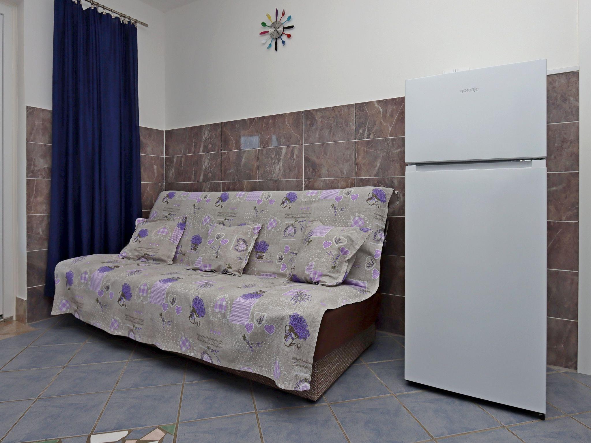 Ferienwohnung bietet Platz für 4 Gäste. Die Betten sind in Schlafzimmern, die es 2 gibt, innerhalb einer Gesamtfläche von 39m2, angeordnet. Die Gäste haben eine eigene Terrasse zur Verfügung, auf der sie in warmen Sommernächten genießen können. Das Apartment bietet Meerblick. Es ist erlaubt, Speisen auf dem Gemeinschafts-Grill vorzubereiten. IM PREIS INBEGRIFFEN: Kurtaxe, Endreinigung, Klimatisierung, Parkplatz, Internet, 1 Bett für Kinder (im Preis enthalten). VERBINDLICHE ZUSÄTZLICHE KOSTEN: Aufzahlung für Kurzaufenthalte (prozentualer Zuschlag pro Nächtigungsanzahl: 30% - 1, 20% - 2, 10% - 3). UNVERBINDLICHE ZUSÄTZLICHE KOSTEN: Wäschewaschen (5,00 € Waschen). Die Verfügbarkeit zusätzlicher Dienstleistungen in Ihrem reservierten Termin und die Preise derselben (falls nicht aufgeführt) müssen im Voraus überprüft werden. Zusätzliche Dienstleistungen die in der Zahlungsaufforderung nicht aufgeführt sind werden direkt beim Vermieter bezahlt, angenommen der Gast nutzt auch diese.