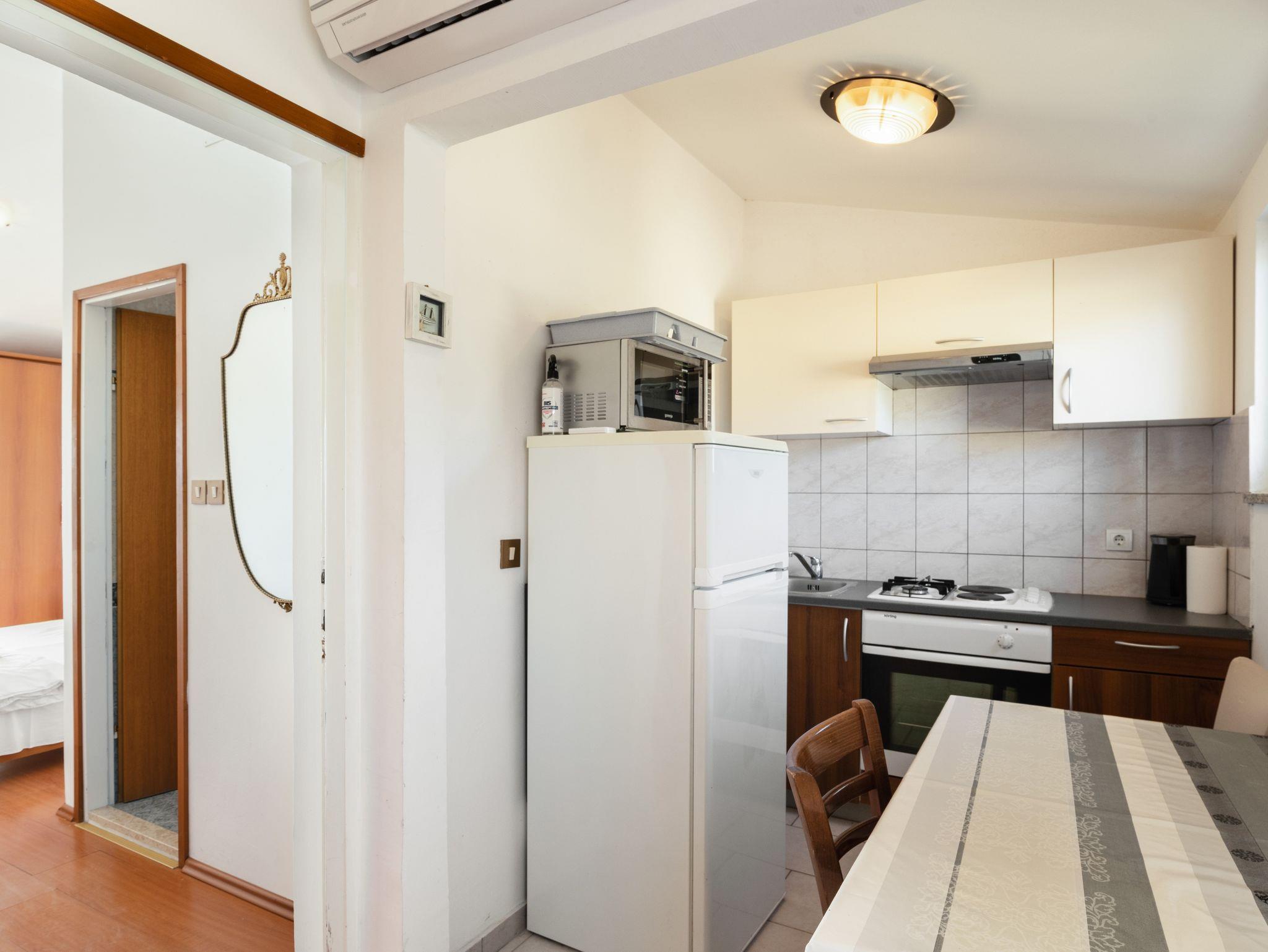 Ferienwohnung bietet Platz für 5 Gäste. Die Betten sind in Schlafzimmern, die es 2 gibt, innerhalb einer Gesamtfläche von 40m2, angeordnet. Die Gäste haben einen eigenen Balkon zur Verfügung, auf der sie in warmen Sommernächten genießen können. Das Apartment bietet Meerblick. Es ist erlaubt, Speisen auf dem Gemeinschafts-Grill vorzubereiten. In der Unterkunftseinheit besteht die Möglichkeit des Mitbringens von Haustieren gegen Aufpreis. Die reservierte Unterkunftseinheit verfügt über einen gemeinsame Terrasse. IM PREIS INBEGRIFFEN: Kurtaxe, Endreinigung, Klimatisierung, Parkplatz, Internet, Bügeleisen, Bügelbrett, Föhn. VERBINDLICHE ZUSÄTZLICHE KOSTEN: Aufzahlung für Kurzaufenthalte (prozentualer Zuschlag pro Nächtigungsanzahl: 30% - 1, 20% - 2, 10% - 3). UNVERBINDLICHE ZUSÄTZLICHE KOSTEN: Haustiere (20,00 € pro Nacht). Die Verfügbarkeit zusätzlicher Dienstleistungen in Ihrem reservierten Termin und die Preise derselben (falls nicht aufgeführt) müssen im Voraus überprüft werden. Zusätzliche Dienstleistungen die in der Zahlungsaufforderung nicht aufgeführt sind werden direkt beim Vermieter bezahlt, angenommen der Gast nutzt auch diese. Ermäßigung auf den Grundpreis: Gratistag 14=13 (bei einem Aufenthalt von 14 Tagen oder mehr erhalten Sie einen Gratistag für den Aufenthalt bis 31.12.26).