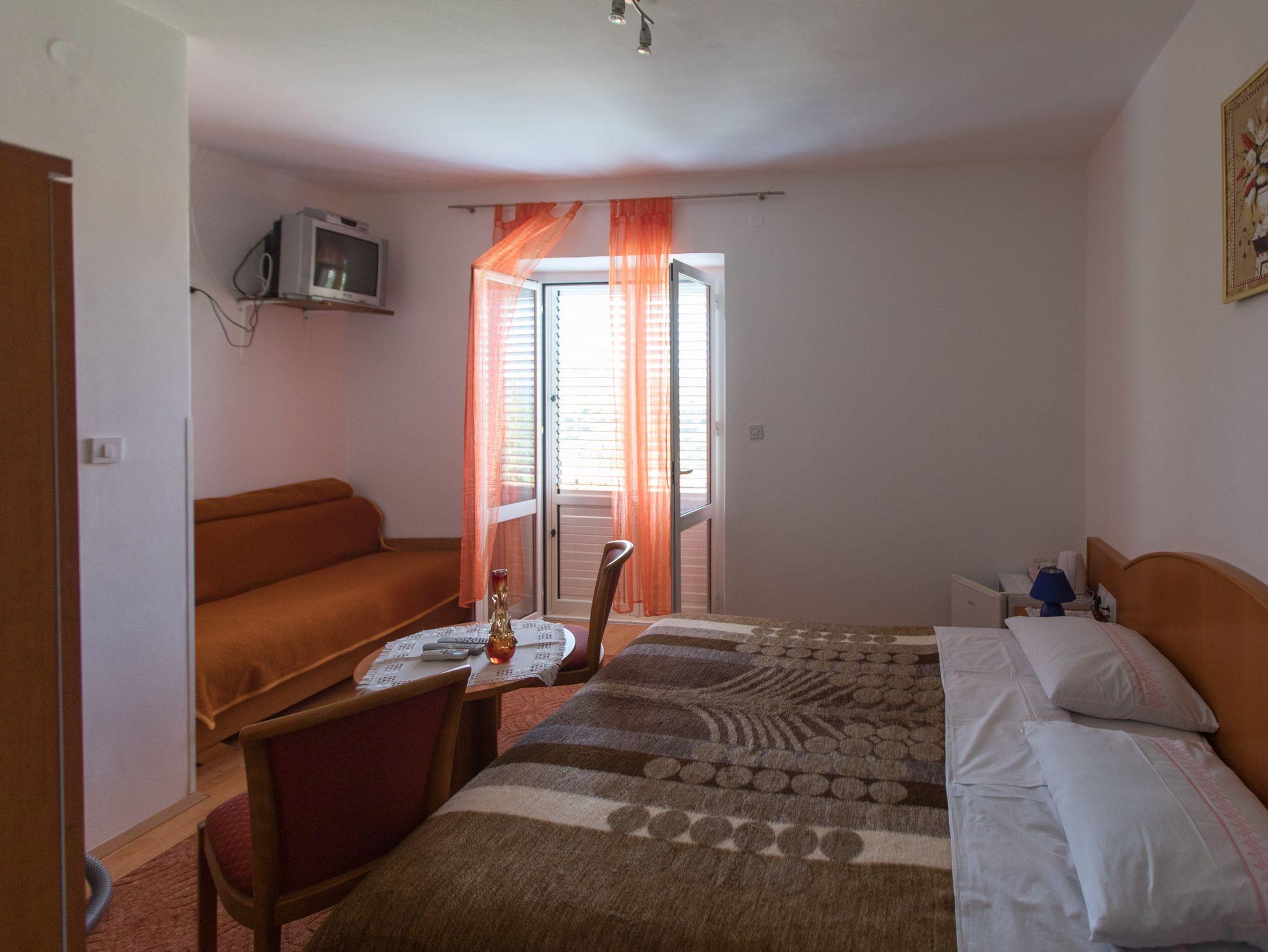 Zimmer bietet Platz für 3 Gäste. Die Betten sind in Schlafzimmern, die es 1 gibt, innerhalb einer Gesamtfläche von 16m2, angeordnet. Das Zimmer bietet Meerblick. Die reservierte Unterkunftseinheit ist ein Zimmer mit eigenem Badezimmer ohne die Möglichkeit der Nutzung einer Küche. Die reservierte Unterkunftseinheit verfügt über einen gemeinsamen Balkon. IM PREIS INBEGRIFFEN: Kurtaxe, Endreinigung, Klimatisierung, Internet, Kinderbett, Föhn. VERBINDLICHE ZUSÄTZLICHE KOSTEN: Aufzahlung für Kurzaufenthalte (prozentualer Zuschlag pro Nächtigungsanzahl: 30% - 1, 20% - 2, 10% - 3). Die Verfügbarkeit zusätzlicher Dienstleistungen in Ihrem reservierten Termin und die Preise derselben (falls nicht aufgeführt) müssen im Voraus überprüft werden. Zusätzliche Dienstleistungen die in der Zahlungsaufforderung nicht aufgeführt sind werden direkt beim Vermieter bezahlt, angenommen der Gast nutzt auch diese. Ermäßigung auf den Grundpreis: Gratistag 14=13 (bei einem Aufenthalt von 14 Tagen oder mehr erhalten Sie einen Gratistag für den Aufenthalt bis 31.12.26).