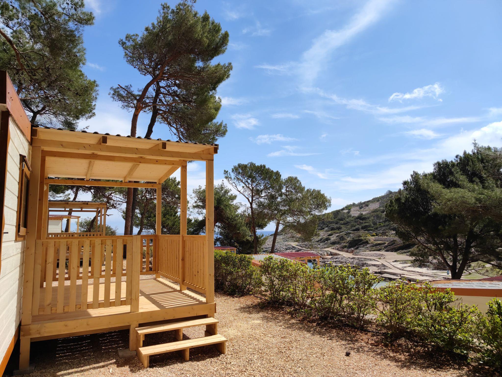 Poljana 3 km von Mali Lošinj: Kinderfreundliche Ferienanlage "Camping Village Poljana". 8 km vom Zentrum von Veli Lošinj, 64 km vom Zentrum von Merag, 78 km vom Zentrum von Krk, sonnige Lage, 20 m vom Meer, direkter Zugang zum Strand. Zur Mitbenutzung: Grundstück 15 ha (eingezäunt) mit Bäumen. Aussendusche, Tennis (extra), Beachvolleyball, Kinderspielplatz. In der Anlage: Empfang, Restaurant, Bar, Einkaufsmöglichkeit, Waschmaschine (zur Mitbenutzung, extra), Fahrradverleih. Wäschewechsel (zusätzlich extra). Handtuchwechsel (zusätzlich extra). Frühstück Vollpension Halbpension möglich (extra). Lebensmittelgeschäft 100 m, Supermarkt 3 km, Restaurant, Café 100 m, Bushaltestelle 60 m, Fähre "Merag" 64 km, Steinstrand 70 m, Felsstrand 50 m, FKK - Strand 300 m. Jacht-Hafen 200 m, Wanderwege ab Haus 50 m, Radweg 100 m. Nahe gelegene Sehenswürdigkeiten: Museum of Apoxyomenos 3 km, Dolphine watching 9 km, Gyps fulvus bird watching 40 km. Bekannte Seen in der Umgebung sind gut erreichbar: Vransko jezero 35 km. Bitte beachten: Animation in der Saison. Geeignet für Familien, Babyausstattung auf Anfrage (extra). Das Foto ist nur ein Hausbeispiel. Die Mobilheime befinden sich 50 - 250 m vom Meer und vom Strand entfernt. 1 Auto kann 20 m vom Mobilheim entfernt geparkt werden (im Mietpreis inbegriffen). Ein zweiter Parkplatz für ein weiteres Auto ist extra bezahlbar.