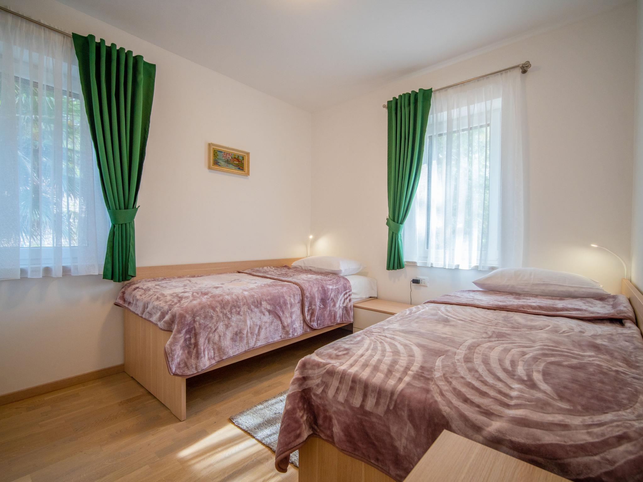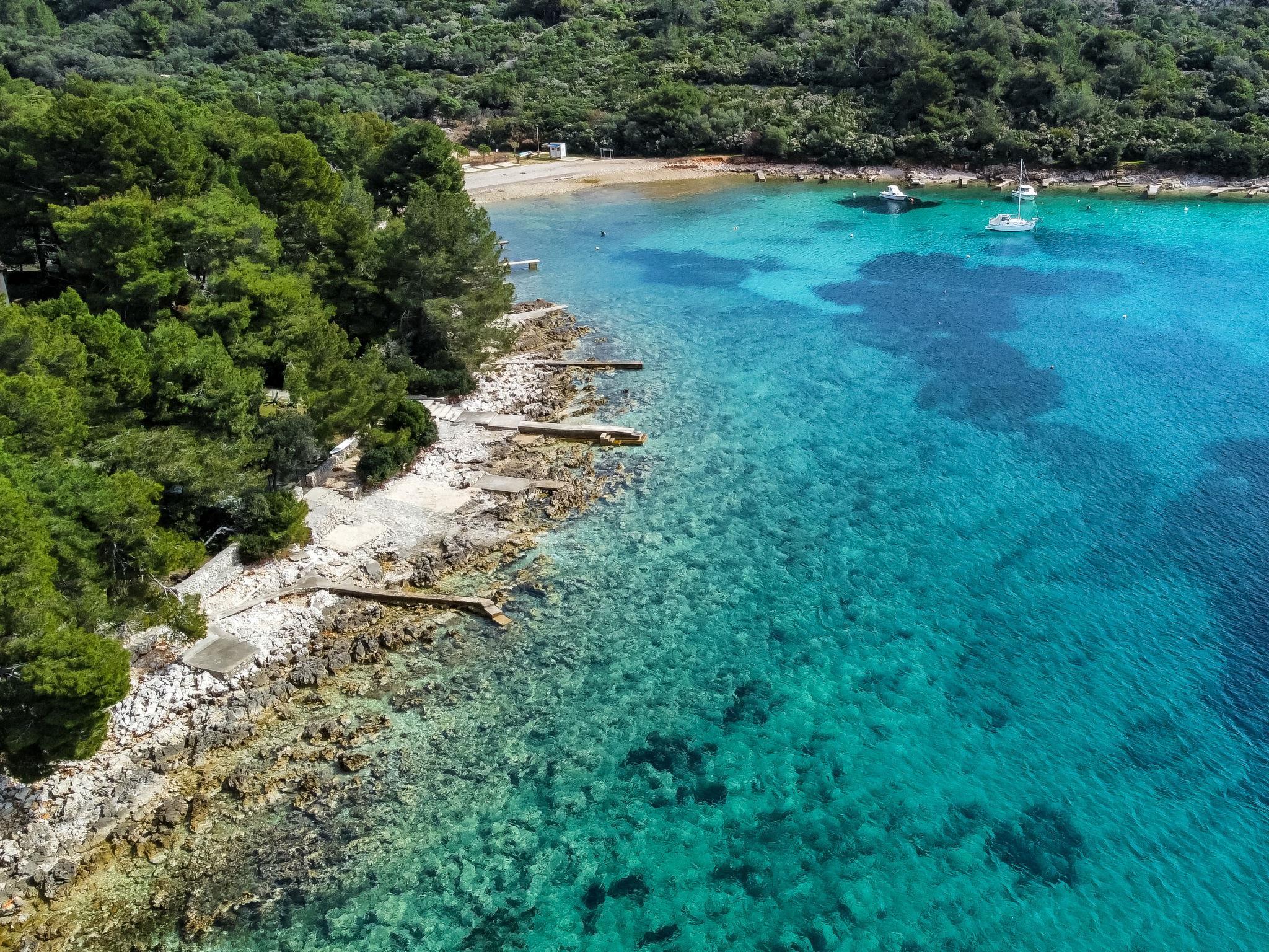 Artatore 7 km von Mali Lošinj: Modernes Dreifamilienhaus "Artatore". Sonnige Lage, 130 m vom Meer, 130 m vom Strand. Zur Mitbenutzung: Grundstück 400 m2. Zur Alleinbenutzung: Sprudelbad. Im Hause: Internetzugang. Parkplatz beim Haus auf dem Grundstück. Einkaufsgeschäft 30 m, Restaurant 60 m, Bushaltestelle 5 m, Sandstrand, Kieselstrand, betonierter Strand 130 m.