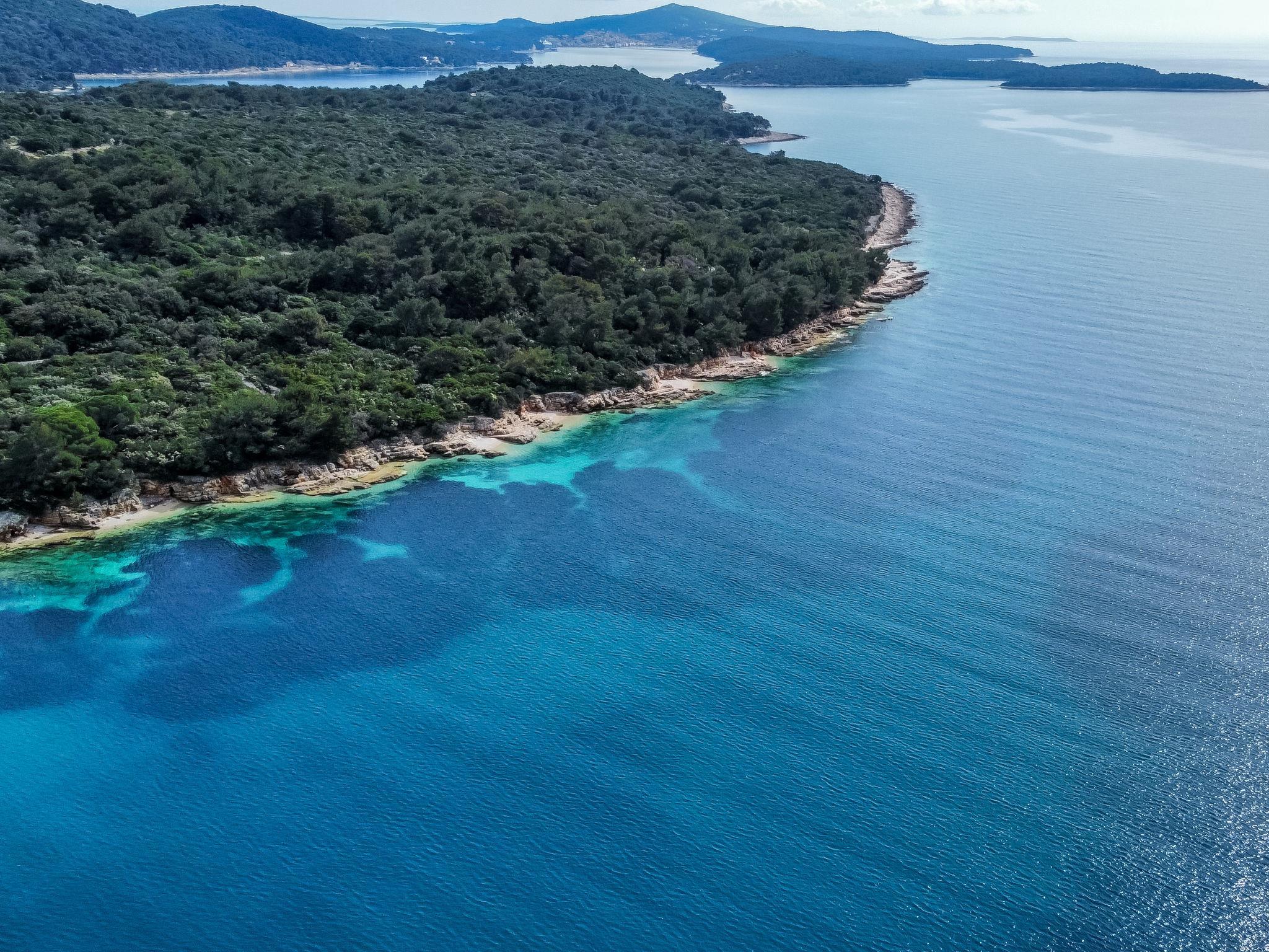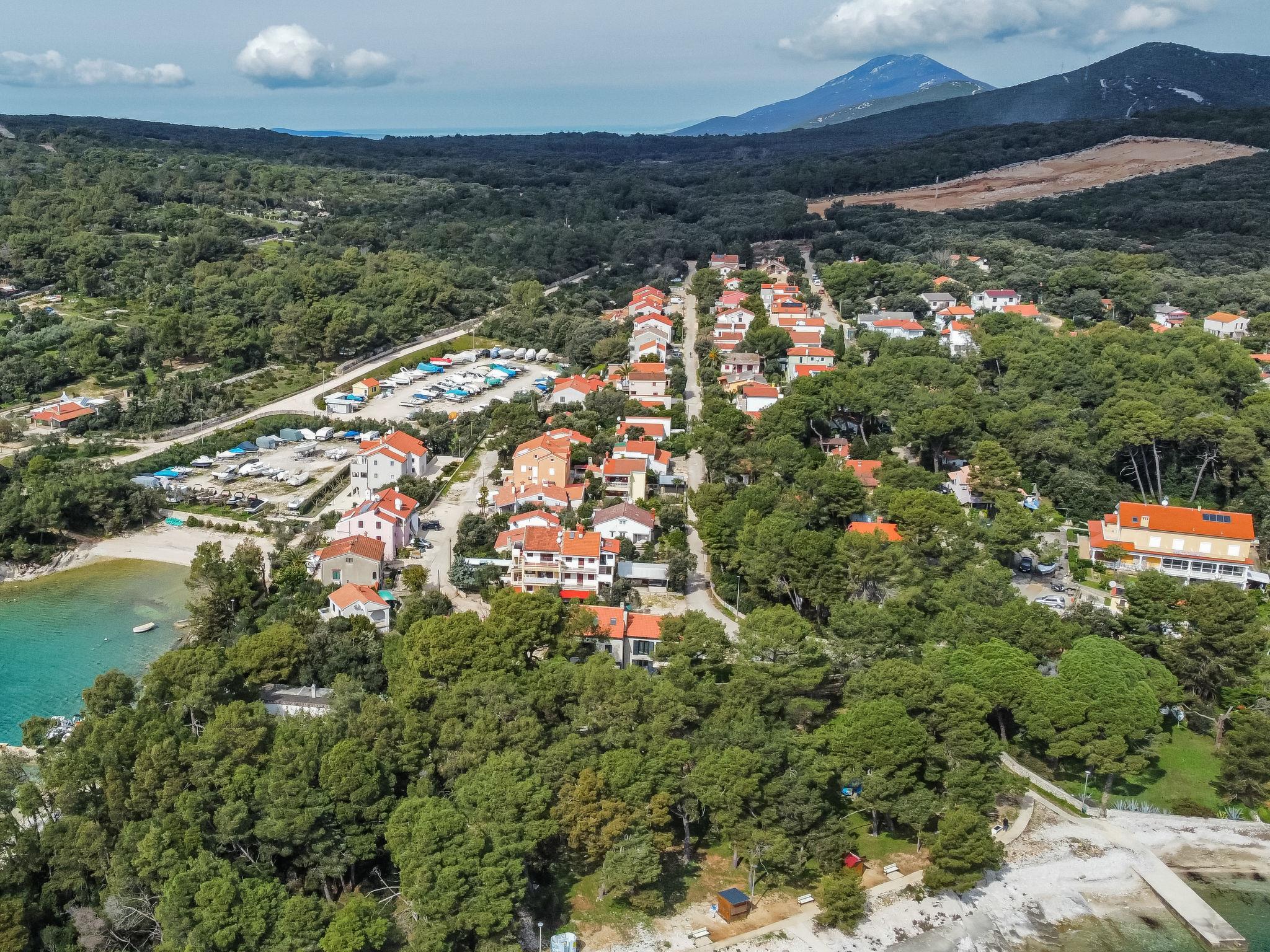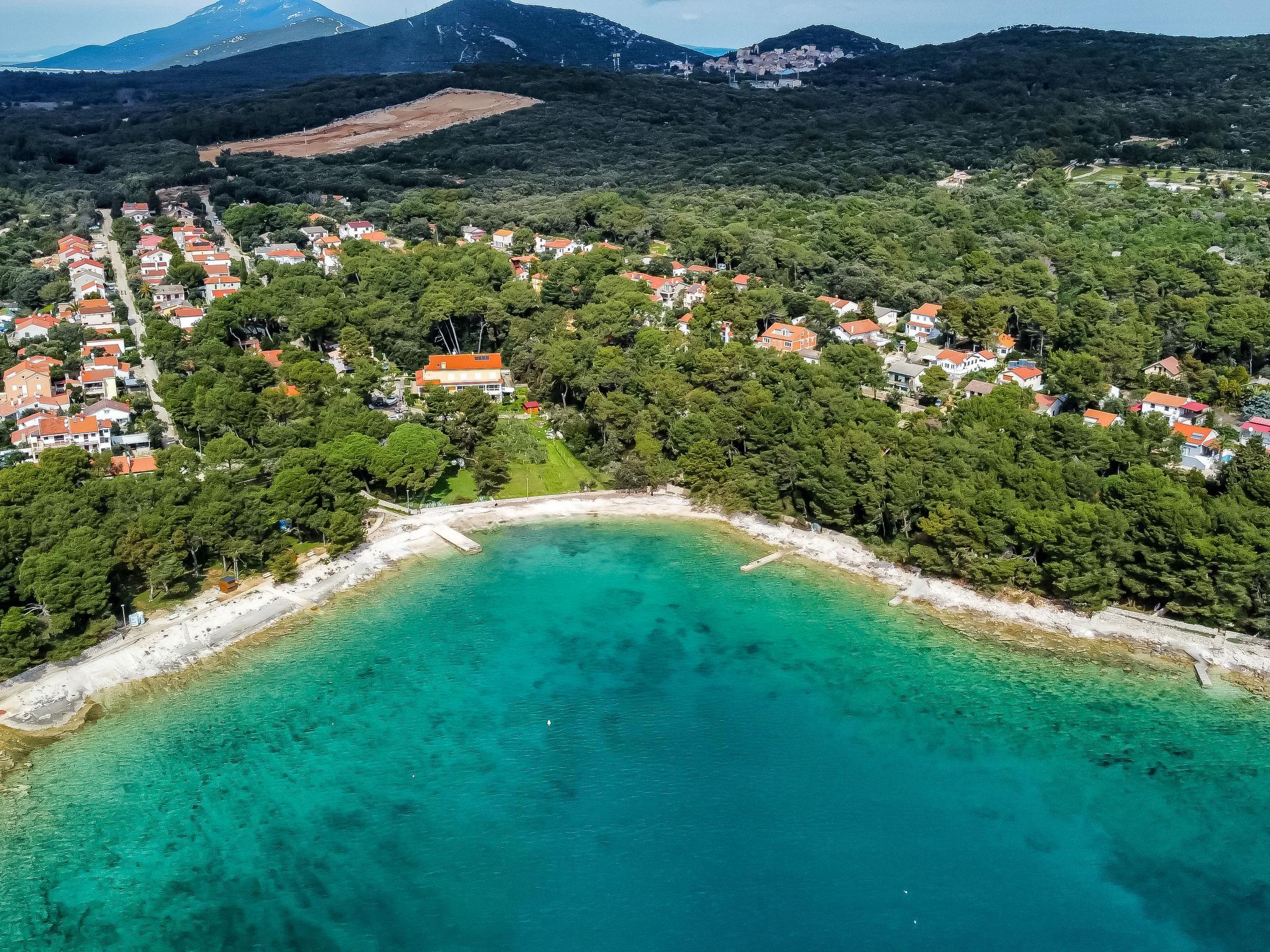 Artatore 7 km von Mali Lošinj: Modernes Dreifamilienhaus "Artatore". Sonnige Lage, 130 m vom Meer, 130 m vom Strand. Zur Mitbenutzung: Grundstück 400 m2. Zur Alleinbenutzung: Sprudelbad. Im Hause: Internetzugang. Parkplatz beim Haus auf dem Grundstück. Einkaufsgeschäft 30 m, Restaurant 60 m, Bushaltestelle 5 m, Sandstrand, Kieselstrand, betonierter Strand 130 m.