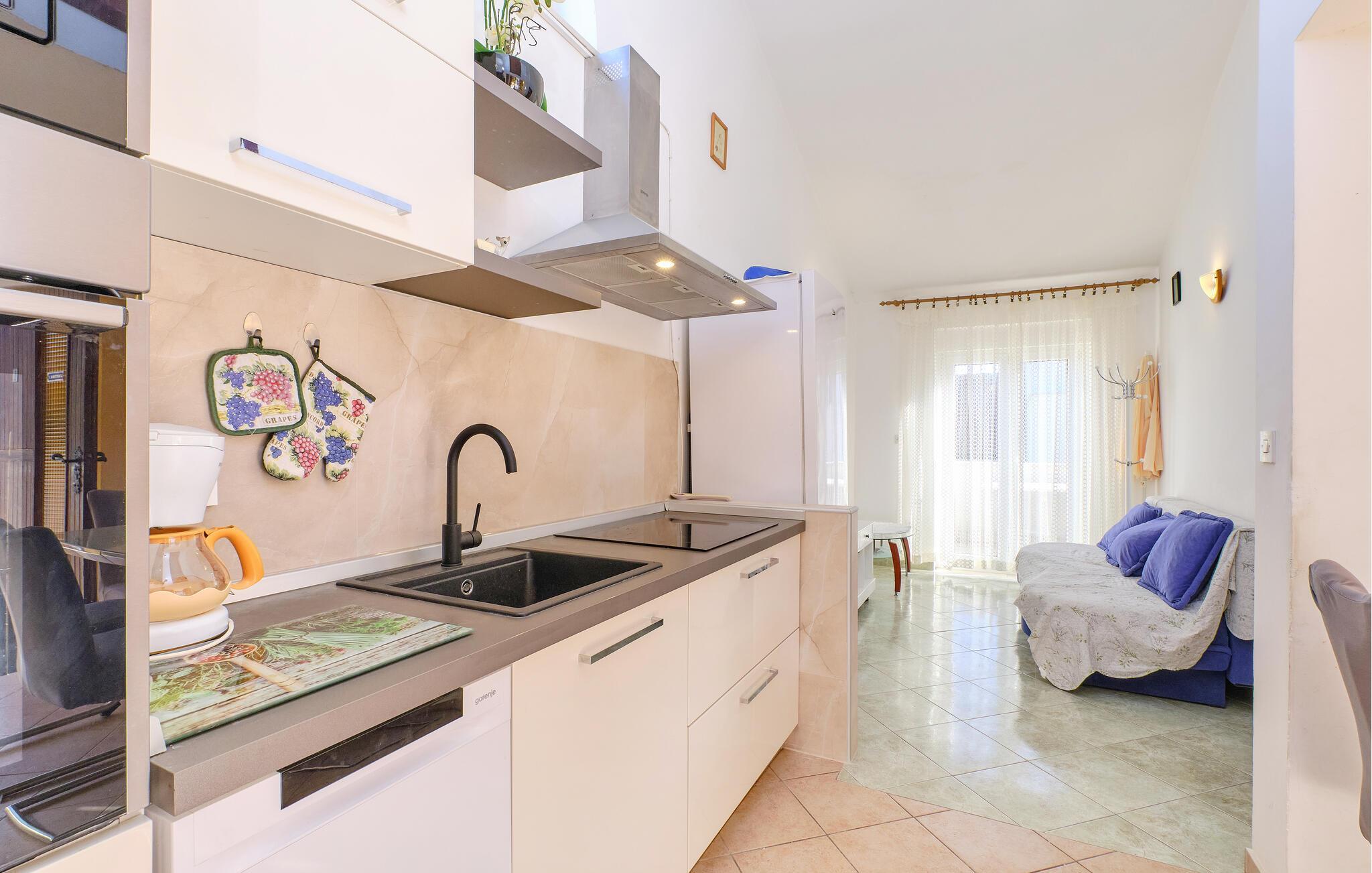 Die Wohnung befindet sich im ersten Stock eines Familienhauses mit mehreren Wohnungen. SIe besteht aus einer Küche, einem Wohnzimmer, zwei Schlafzimmern und einem Badezimmer und bietet Platz für fünf Personen. Ihre Haustiere sind ebenfalls willkommen.