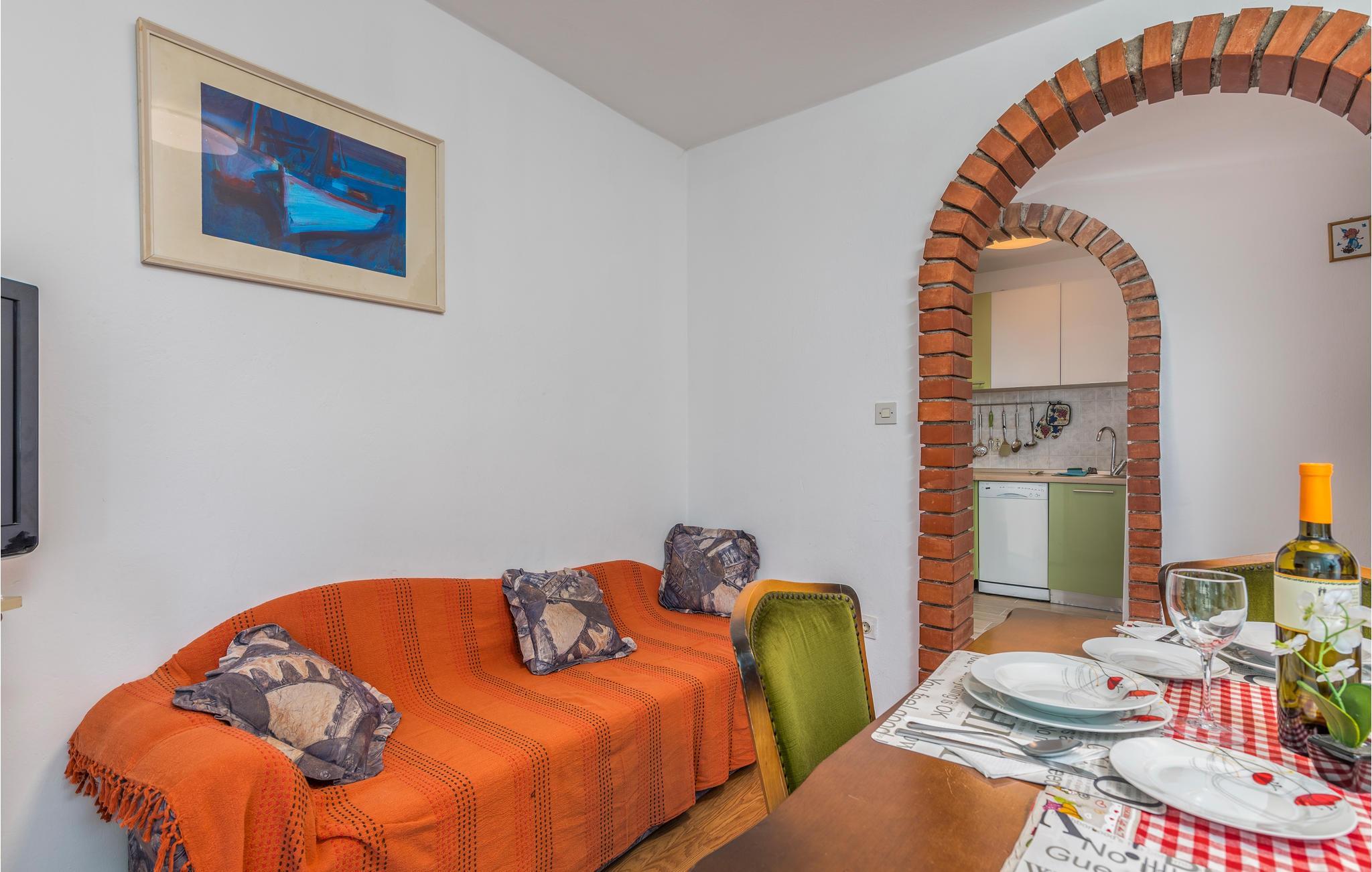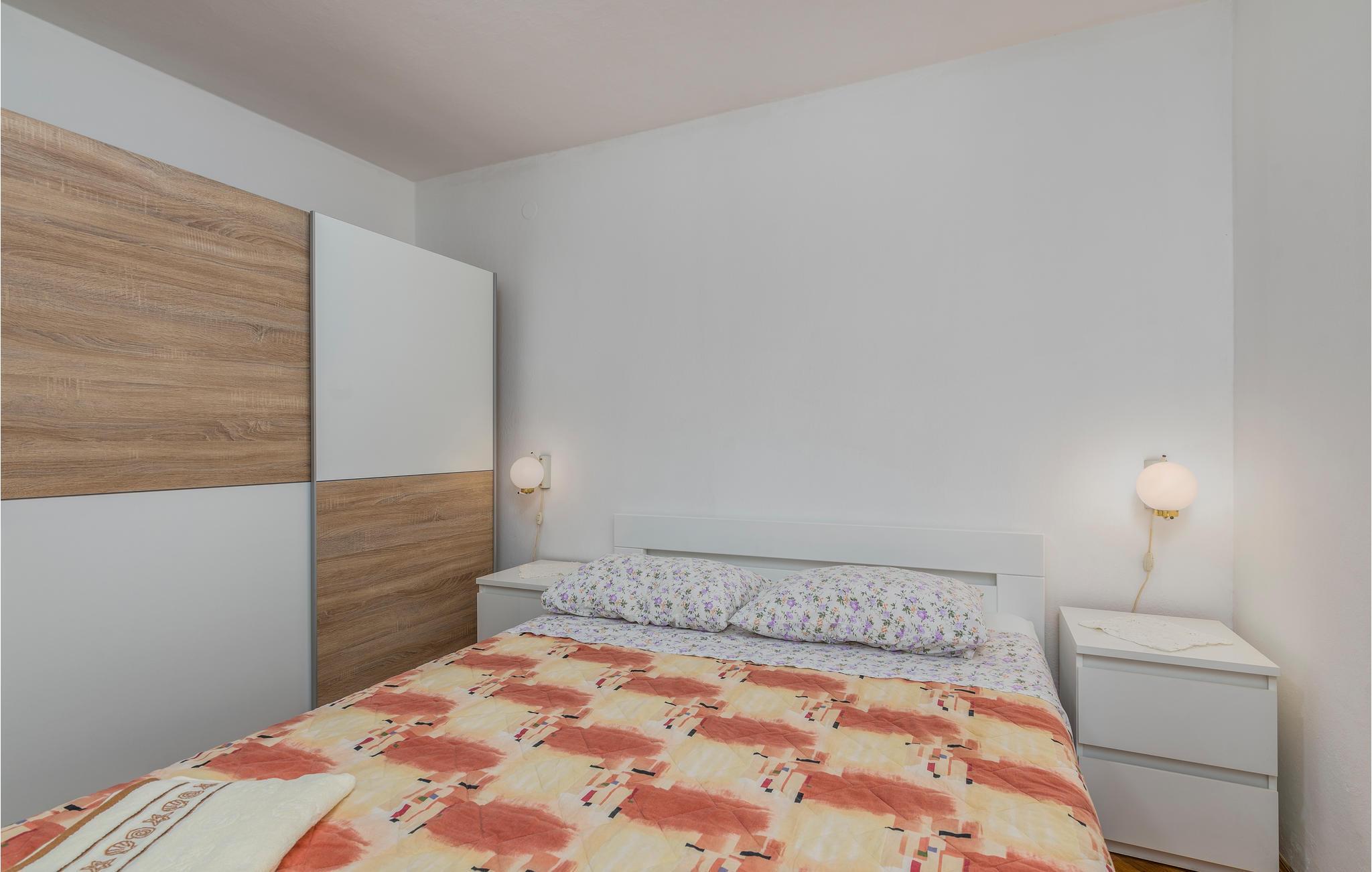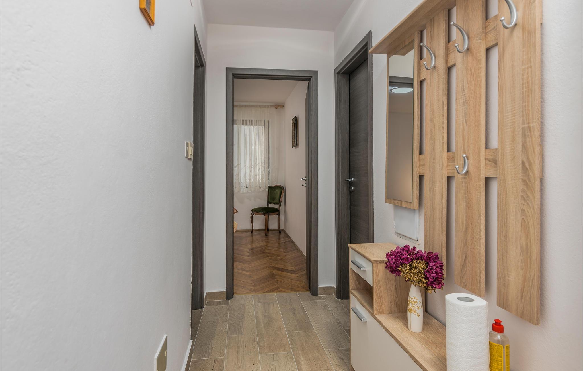 Die Wohnung befindet sich im Erdgeschoss eines Familienhauses mit mehreren Wohnungen. Sie besteht aus einer Küche, einem Wohnzimmer, zwei Schlafzimmern und einem Badezimmer und bietet Platz für fünf Personen. Ihre Haustiere sind ebenfalls willkommen.