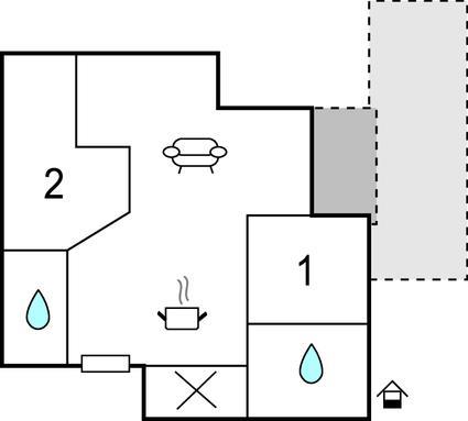 Badezimmer 5m2 (nr. 1) - WC. Warmes und kaltes Wasser. Dusche