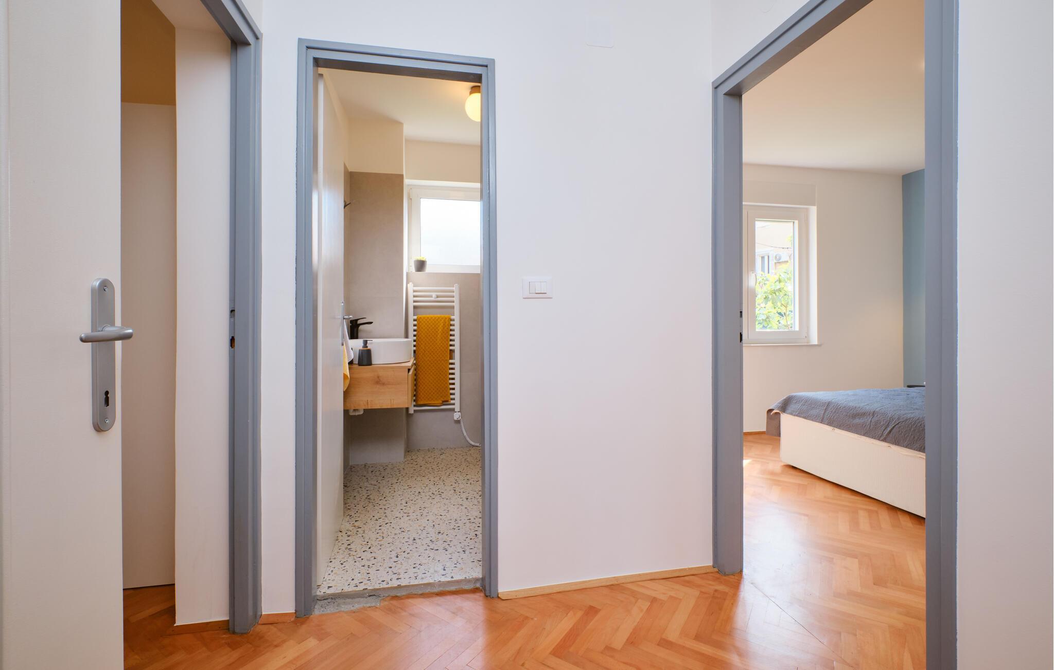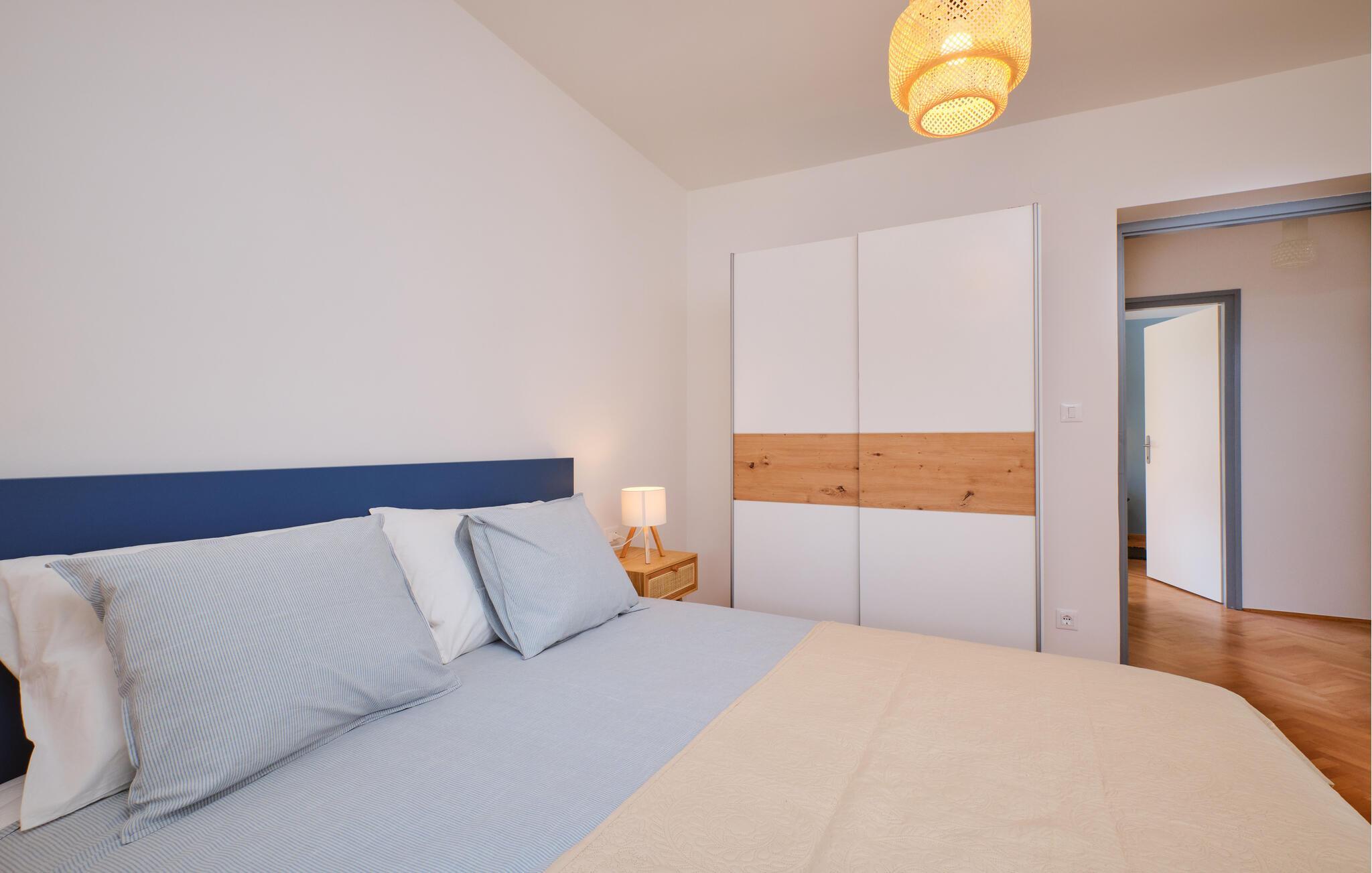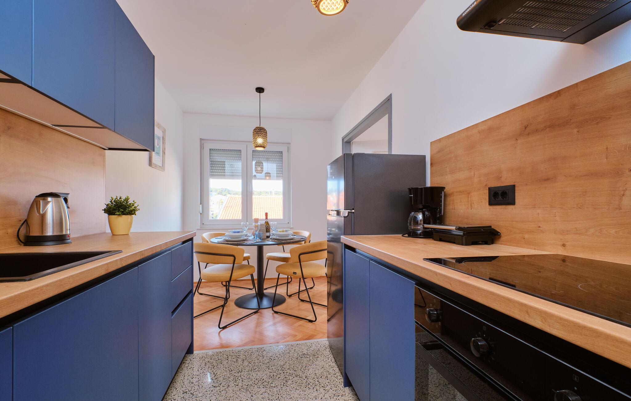 Diese moderne Wohnung vereint Eleganz und Behaglichkeit auf sehr harmonische Weise. Durch bodentiefe Fenster fällt viel warmes Tageslicht ins Innere, während Sie einen schönen Blick auf die Stadt und das Meer haben. Mediterrane Farben, eine warme Holzoptik und eine bequeme Sofalandschaft sorgen zusätzlich für einen entspannten Aufenthalt. Egal ob Sie Ihre Lieblingsmusik oder gemeinsam kochen – hier bestimmen Sie den Rhythmus Ihres Tages.