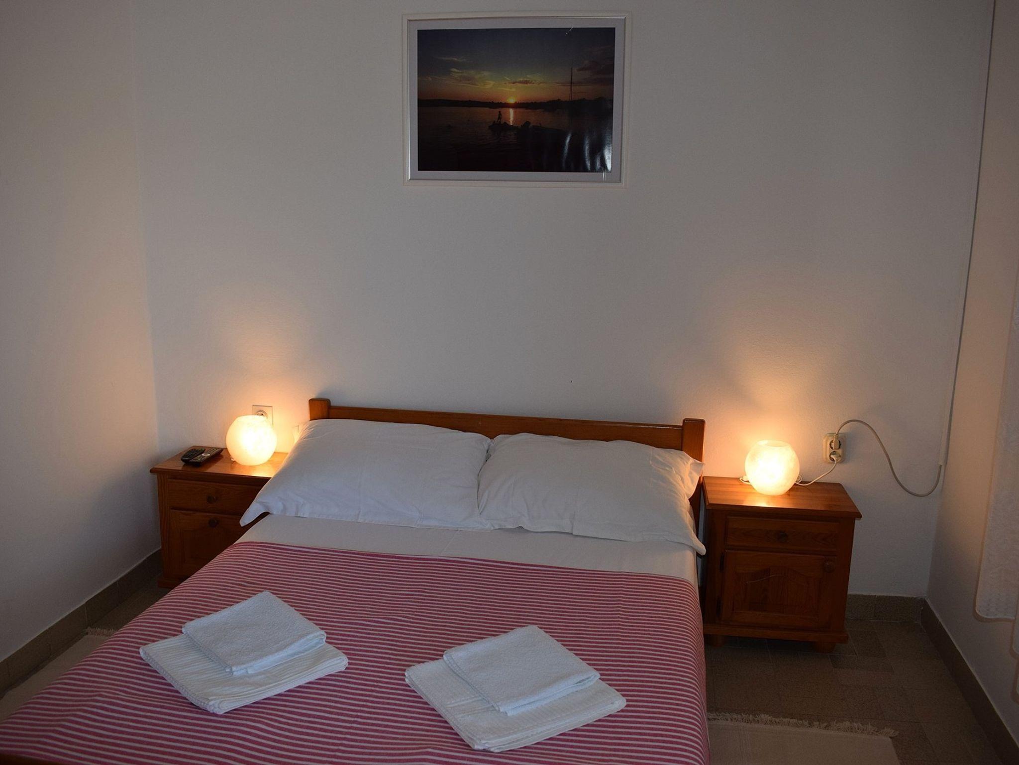 Ferienwohnung bietet Platz für 4 Gäste. Die Betten sind in Schlafzimmern, die es 2 gibt, innerhalb einer Gesamtfläche von 32m2, angeordnet. Die Gäste haben eine eigene Terrasse zur Verfügung, auf der sie in warmen Sommernächten genießen können. Es ist erlaubt, Speisen auf dem Gemeinschafts-Grill vorzubereiten. In der Unterkunftseinheit besteht die Möglichkeit des Mitbringens von Haustieren gegen Aufpreis. IM PREIS INBEGRIFFEN: Kurtaxe, Endreinigung, Klimatisierung, Parkplatz, Internet, Wäschewaschen, Bootsanlegeplatz, Bügeleisen, Bügelbrett, Föhn. VERBINDLICHE ZUSÄTZLICHE KOSTEN: Aufzahlung für Kurzaufenthalte (prozentualer Zuschlag pro Nächtigungsanzahl: 30% - 1, 20% - 2, 10% - 3). UNVERBINDLICHE ZUSÄTZLICHE KOSTEN: Haustiere (10,00 € pro Nacht). Die Verfügbarkeit zusätzlicher Dienstleistungen in Ihrem reservierten Termin und die Preise derselben (falls nicht aufgeführt) müssen im Voraus überprüft werden. Zusätzliche Dienstleistungen die in der Zahlungsaufforderung nicht aufgeführt sind werden direkt beim Vermieter bezahlt, angenommen der Gast nutzt auch diese.