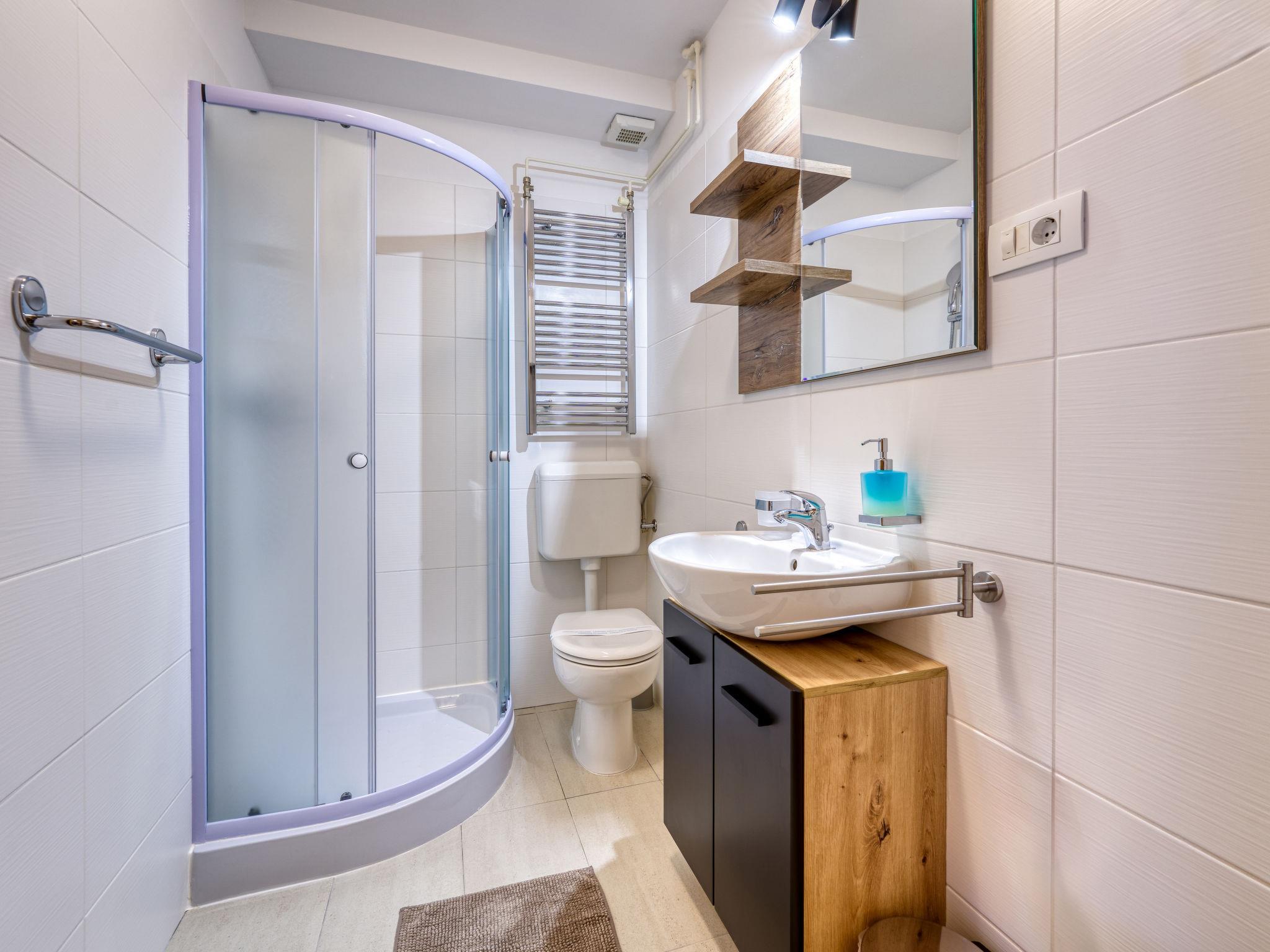 Mehrfamilienhaus "Marija". 900 m vom Zentrum, ruhige, sonnige Lage am Hang, 650 m vom Meer, 650 m vom Strand, im Grünen. Zur Mitbenutzung: Garten Rasen 60 m2, Pflanzen. Grill. Im Hause: Internetzugang, Zentralheizung. Schmale Zufahrt. Parkplatz beim Haus auf dem Grundstück. Einkaufsgeschäft 350 m, Supermarkt 1 km, Restaurant, Café, Bushaltestelle 500 m, Kieselstrand, Felsstrand, Strandbad 650 m. Tennis 550 m.