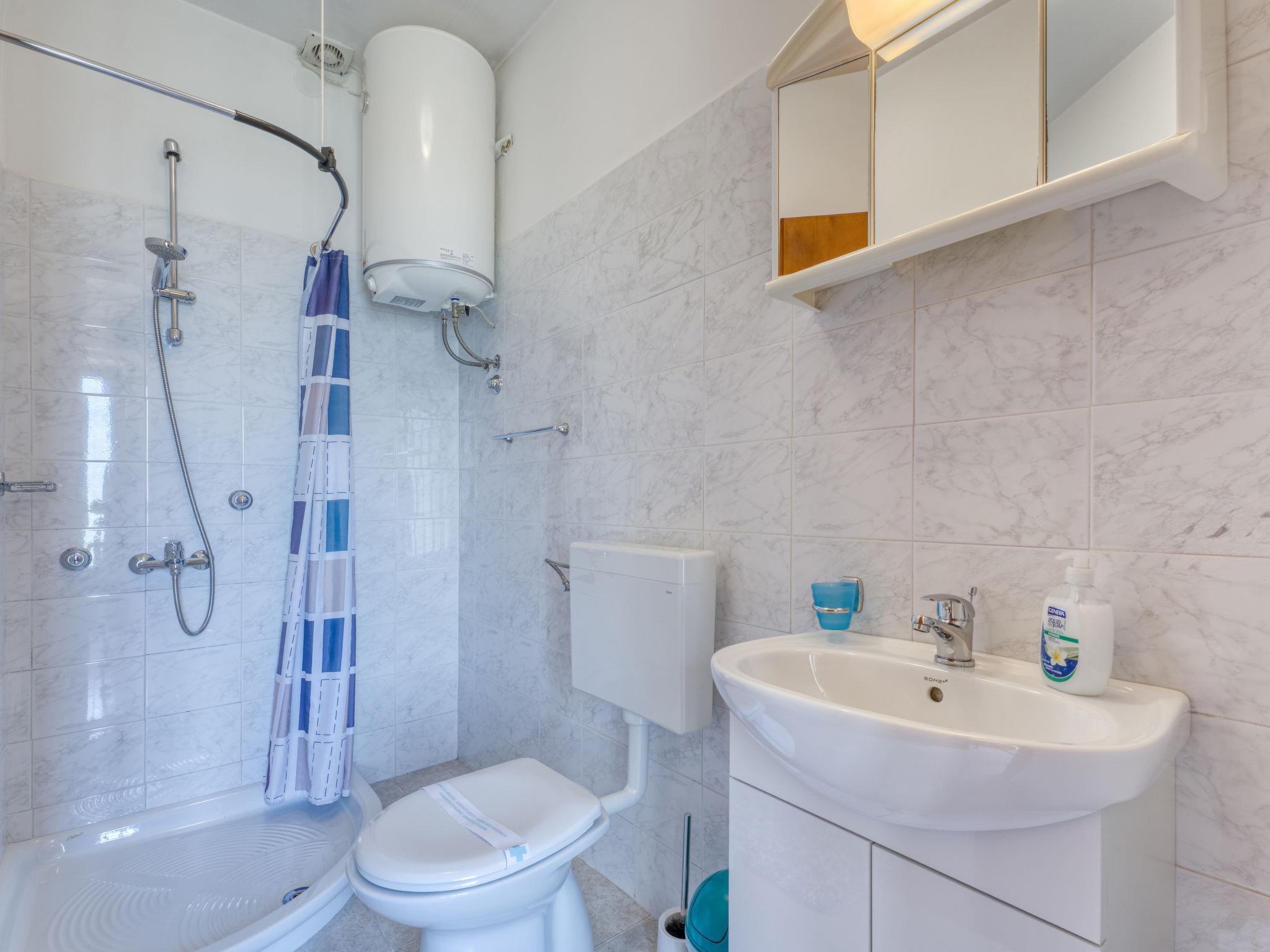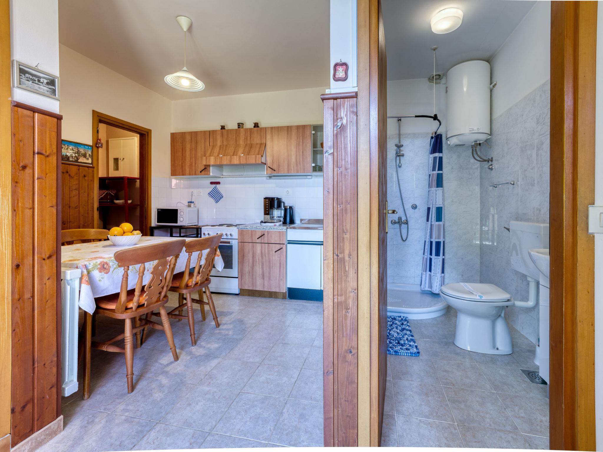 Mehrfamilienhaus "Marija". 900 m vom Zentrum, ruhige, sonnige Lage am Hang, 650 m vom Meer, 650 m vom Strand, im Grünen. Zur Mitbenutzung: Garten Rasen 60 m2, Pflanzen. Grill. Im Hause: Internetzugang, Zentralheizung. Schmale Zufahrt. Parkplatz beim Haus auf dem Grundstück. Einkaufsgeschäft 350 m, Supermarkt 1 km, Restaurant, Café, Bushaltestelle 500 m, Kieselstrand, Felsstrand, Strandbad 650 m. Tennis 550 m.