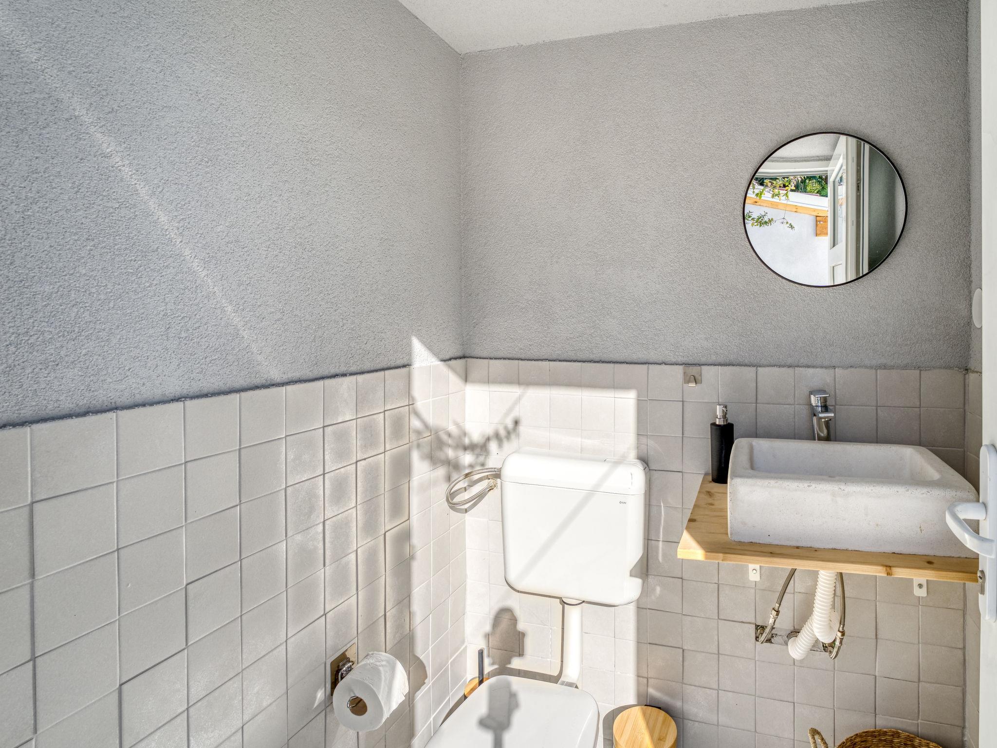 2-Zimmer-Wohnung 55 m2, im Erdgeschoss. Schön eingerichtet: Wohn-/Esszimmer mit Sat-TV (Flachbildschirm), Klimaanlage. Ausgang zur Terrasse. 1 Zimmer mit 1 franz. Bett (160 cm, Länge 200 cm), Klimaanlage. Offene Küche (Backofen, 4 Glaskeramikplatten, Toaster, Wasserkocher, Tiefkühler, elektrische Kaffeemaschine). Dusche/WC. Warmluftheizung. Terrasse 15 m2. Terrassenmöbel. Schöne Sicht auf den Garten. Zur Verfügung: Haartrockner. Internet (Wireless LAN, gratis). Bitte beachten: Nichtraucher-Unterkunft.