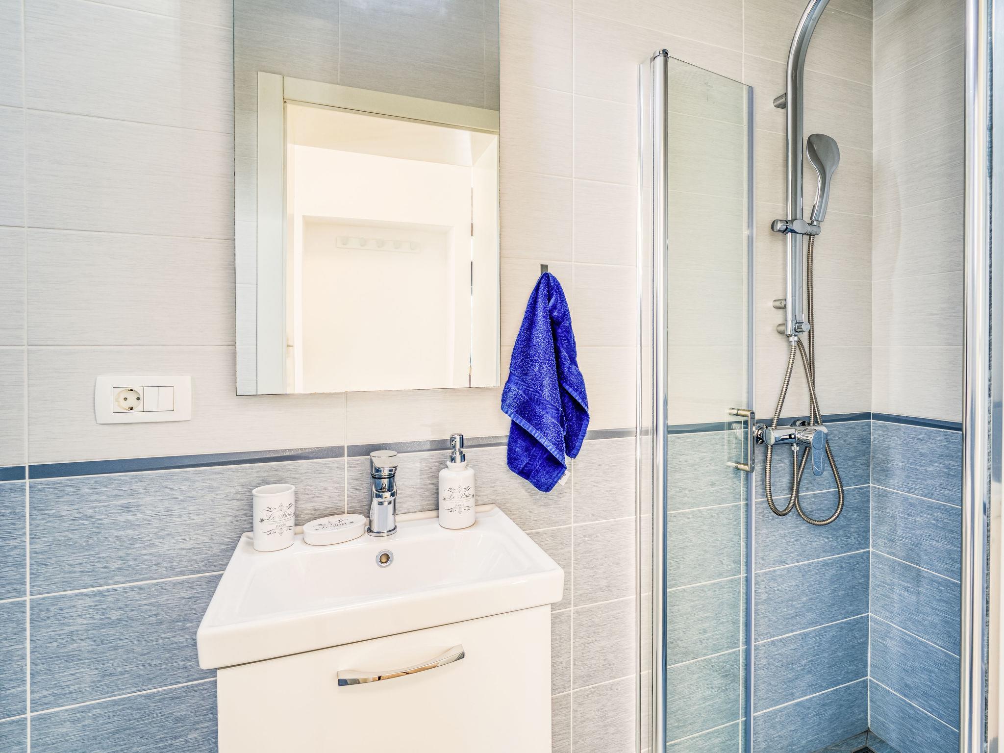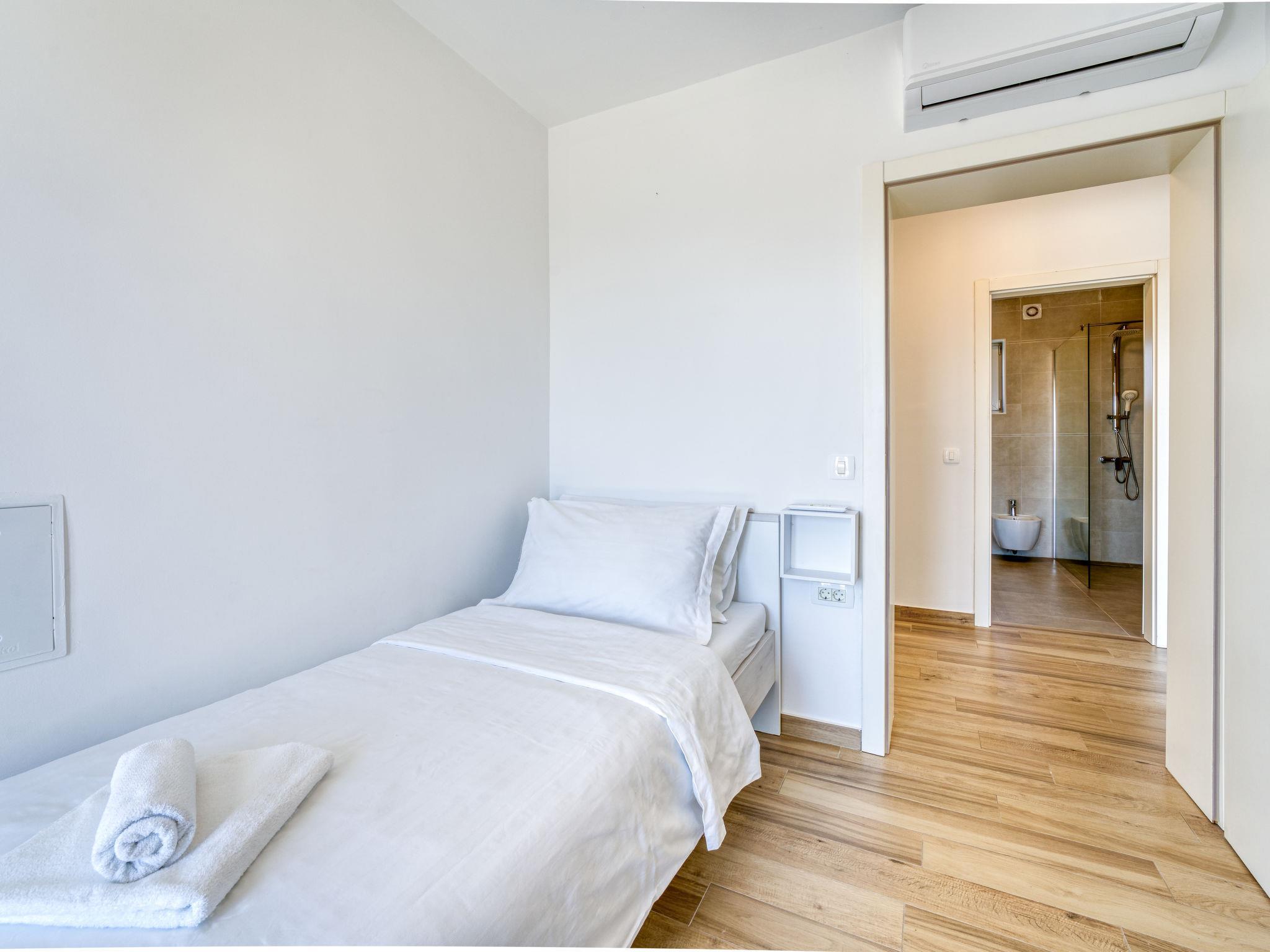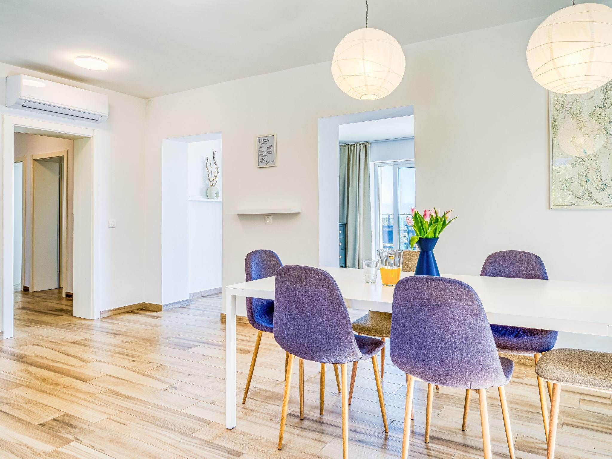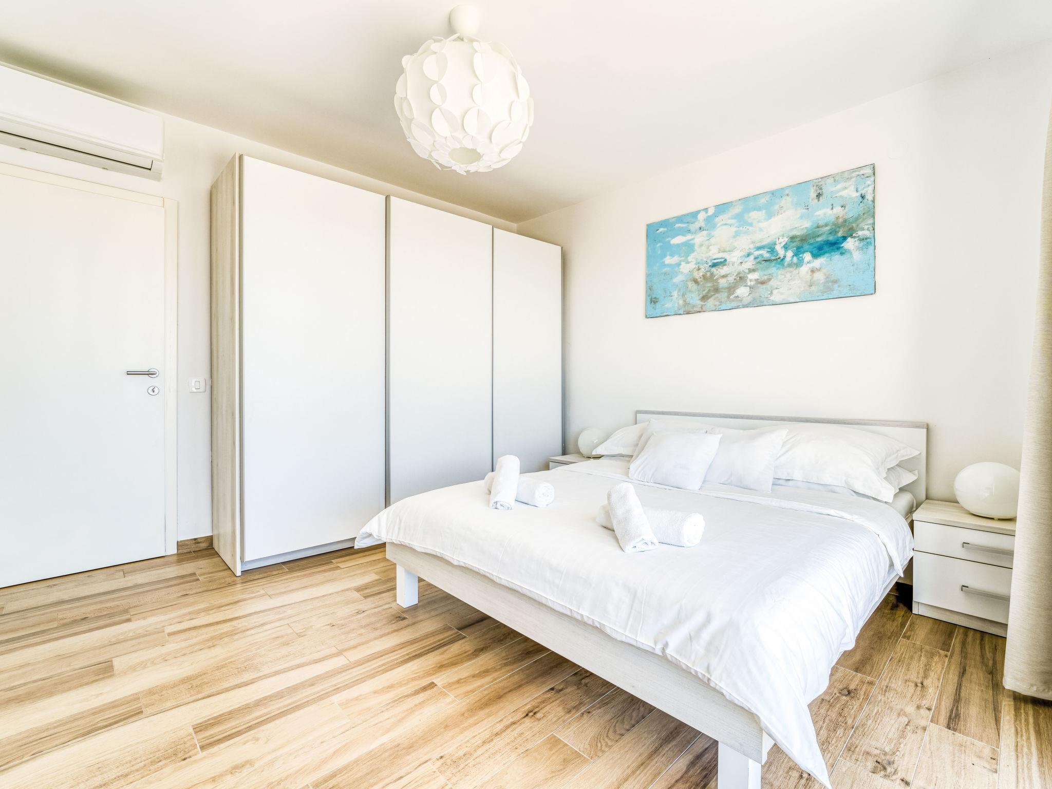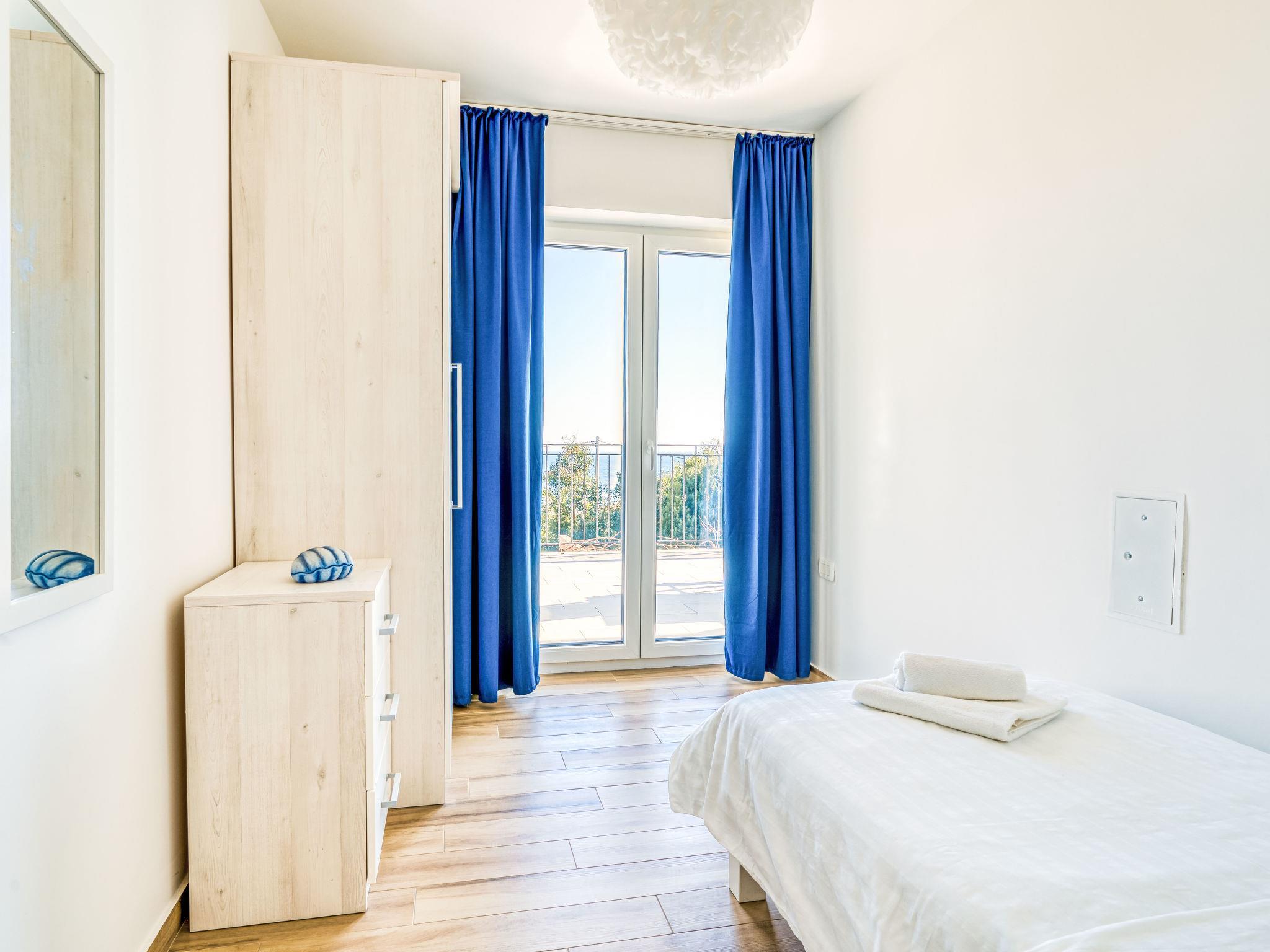 4-Zimmer-Wohnung 100 m2 im 1. Stock. Schön eingerichtet: grosses Wohn-/Esszimmer mit Sat-TV (Flachbildschirm), Klimaanlage. Ausgang zum Balkon. 1 Zimmer mit 1 Bett (90 cm, Länge 200 cm), Klimaanlage. Ausgang zum Balkon. 1 Zimmer mit 1 franz. Bett (160 cm, Länge 200 cm), Sat-TV (Flachbildschirm), Klimaanlage. Ausgang zum Balkon. 1 Zimmer mit 2 Betten (90 cm, Länge 200 cm), Klimaanlage. Offene Küche (Backofen, Geschirrspüler, 4 Glaskeramikplatten, Toaster, Wasserkocher, Tiefkühler, elektrische Kaffeemaschine). Ausgang zum Balkon. Dusche/WC, Dusche/Bidet/WC, Doppelwaschbecken. Warmluftheizung. Grosser Balkon 43 m2, Terrasse 14 m2. Terrassenmöbel, Balkonmöbel. Herrliche Sicht auf das Meer. Zur Verfügung: Haartrockner. Internet (WLAN, gratis). Bitte beachten: Nichtraucher-Unterkunft.