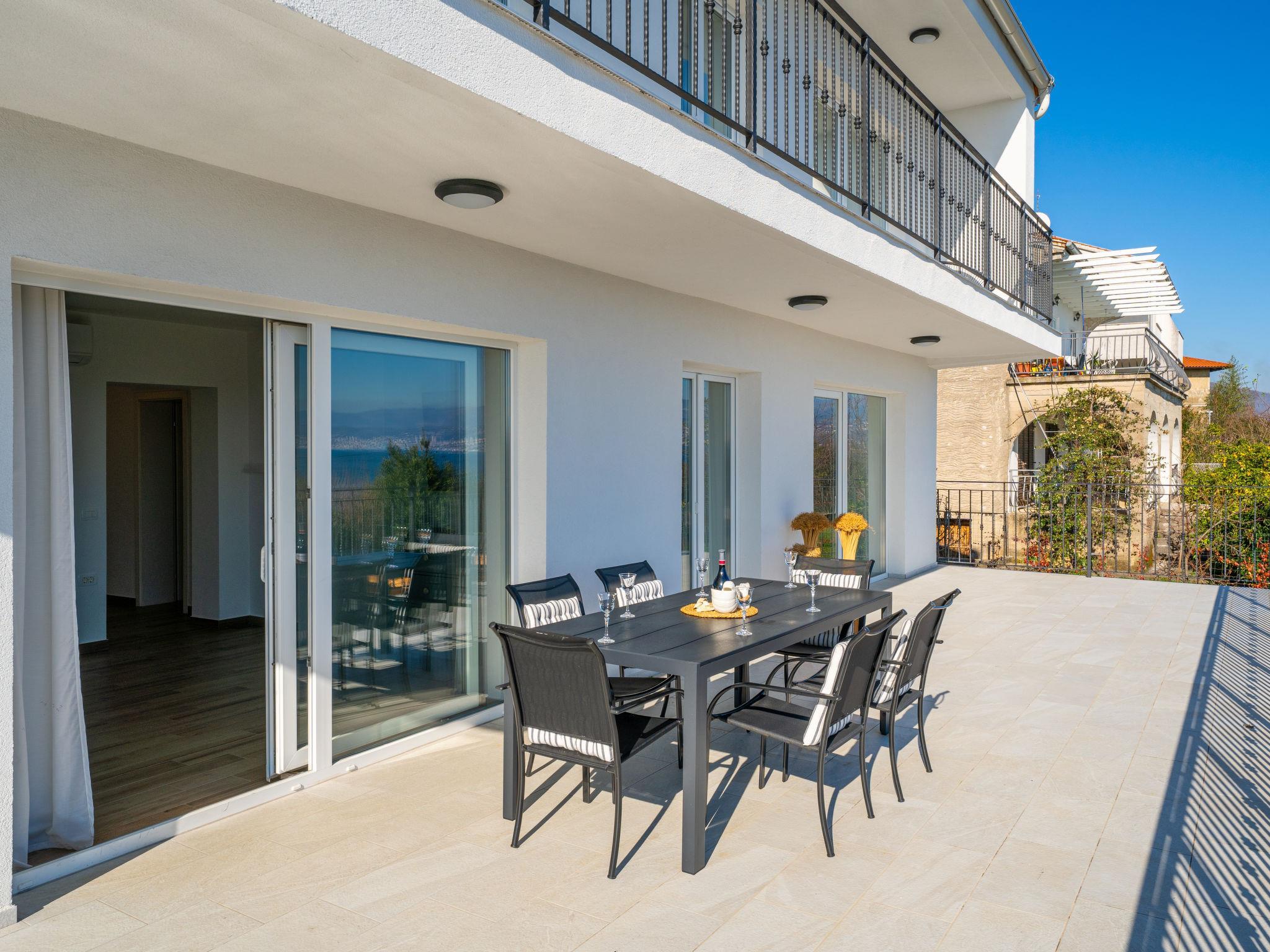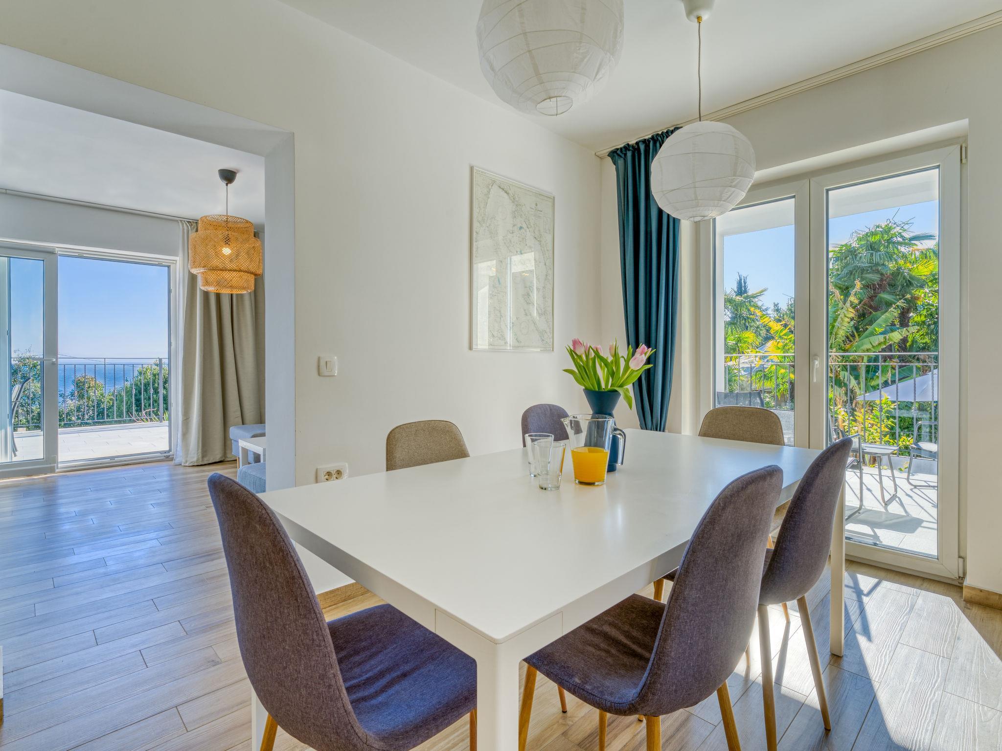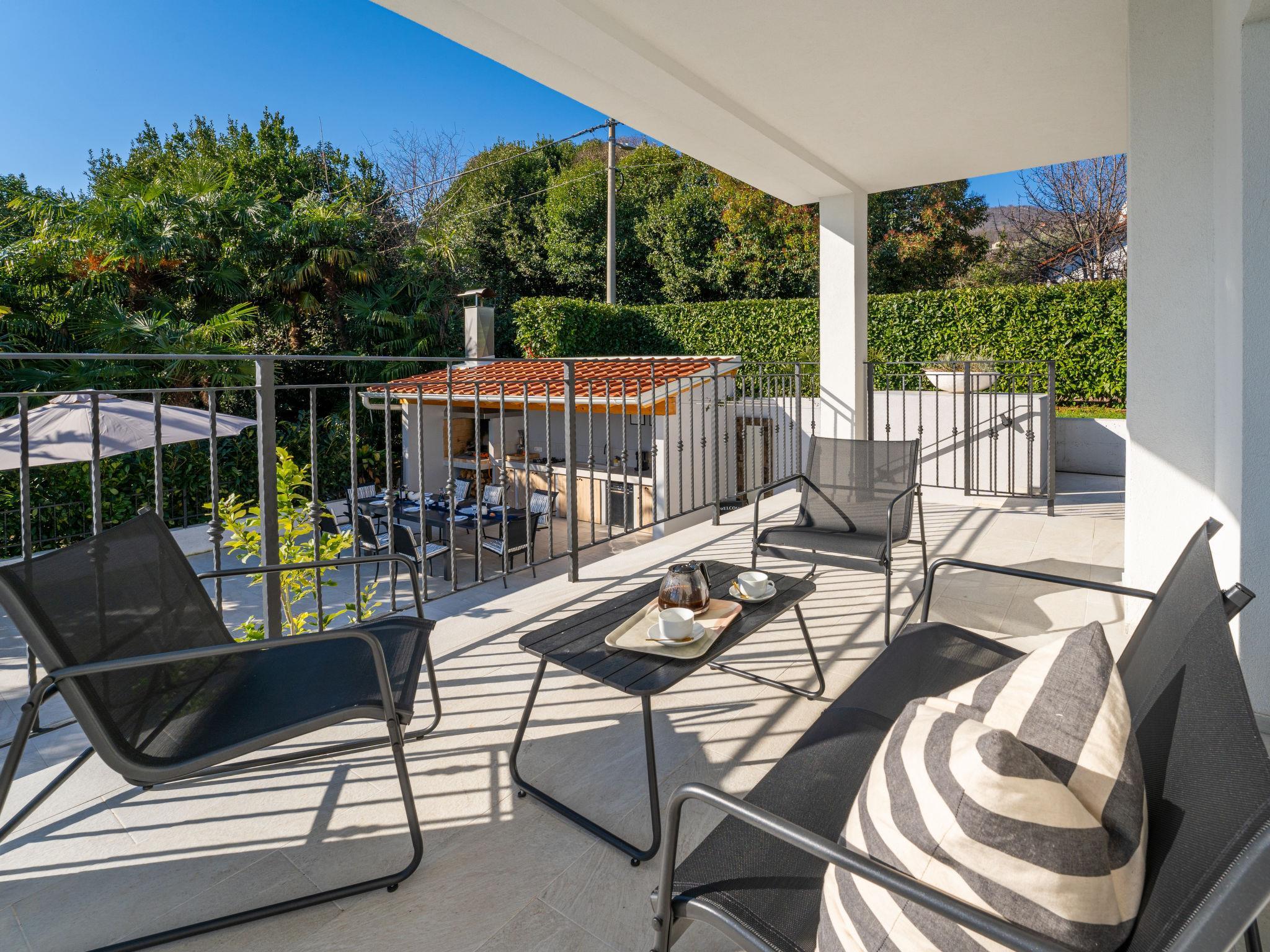 Schönes Mehrfamilienhaus "Villa Palma", renoviert im Jahre 2023. 1.1 km vom Zentrum von Lovran, sonnige Lage, 600 m vom Meer, 600 m vom Strand. Zur Mitbenutzung: Grundstück 900 m2 (eingezäunt), Garten mit Pflanzen, Schwimmbad eckig (8 x 4 m, 150 cm tief, saisonale Verfügbarkeit: 01.Mai. - 15.Okt.) mit Innentreppe und Salzelektrolyse-Reinigungssystem. WC im Poolbereich, Poolhaus mit Kühlschrank und Kochherd, Terrasse (30 m2), Gartenmöbel, Grill. Im Hause: Internetzugang. Parkplatz beim Haus auf dem Grundstück. Supermarkt 300 m, Restaurant 700 m, Bar 300 m, Bushaltestelle 400 m, Kieselstrand 600 m. Tennis 400 m, Wanderwege ab Haus 600 m.