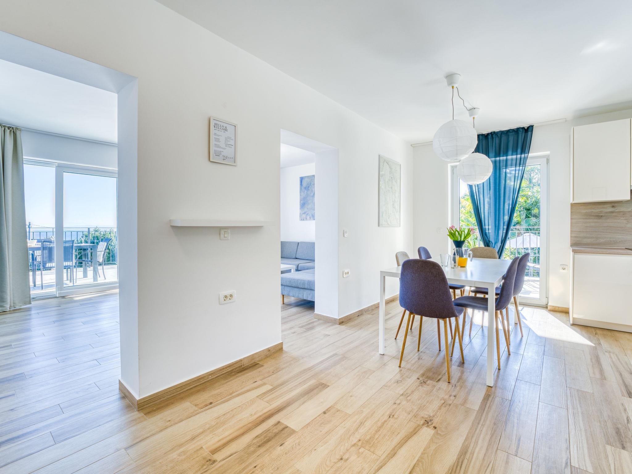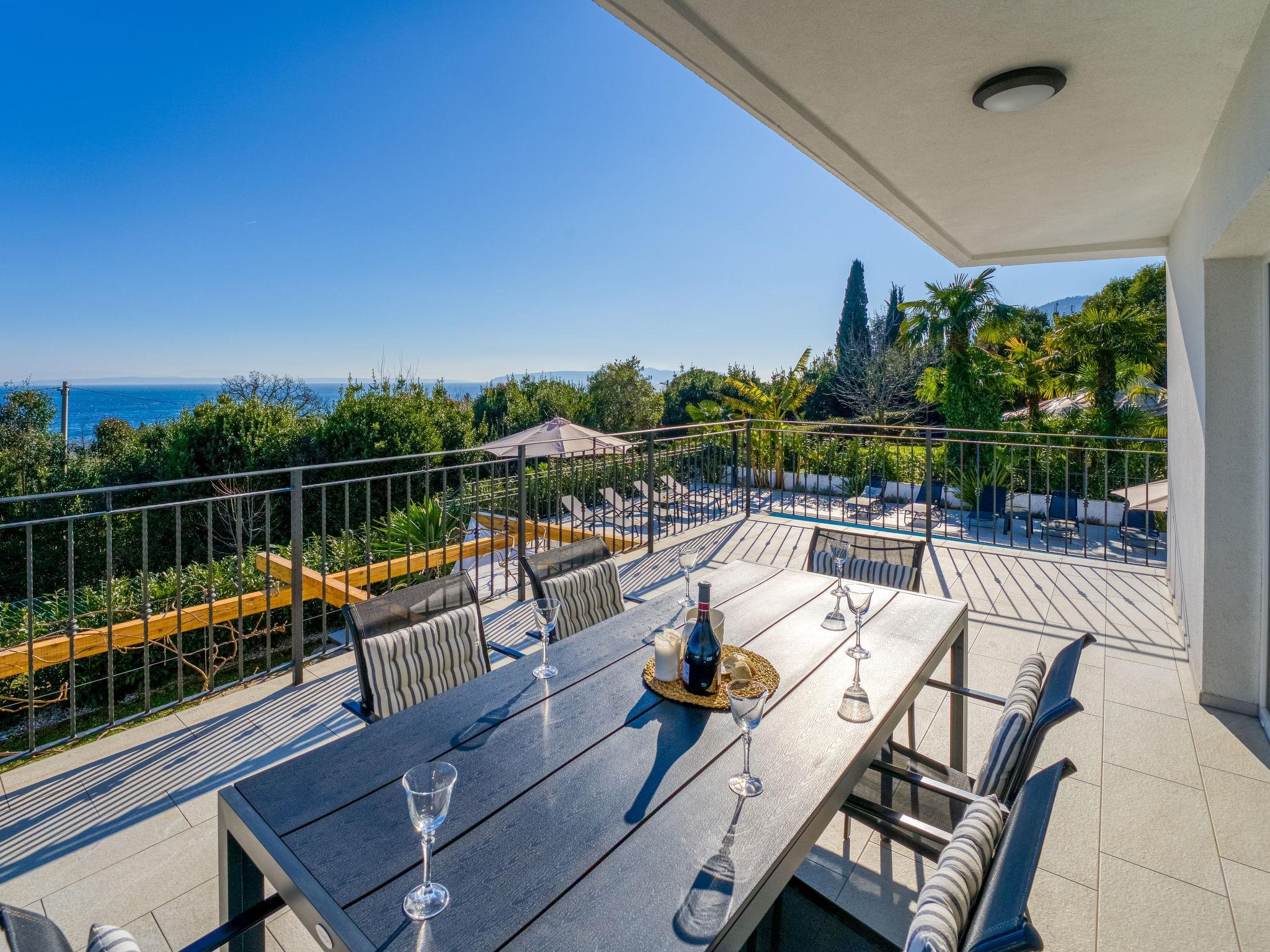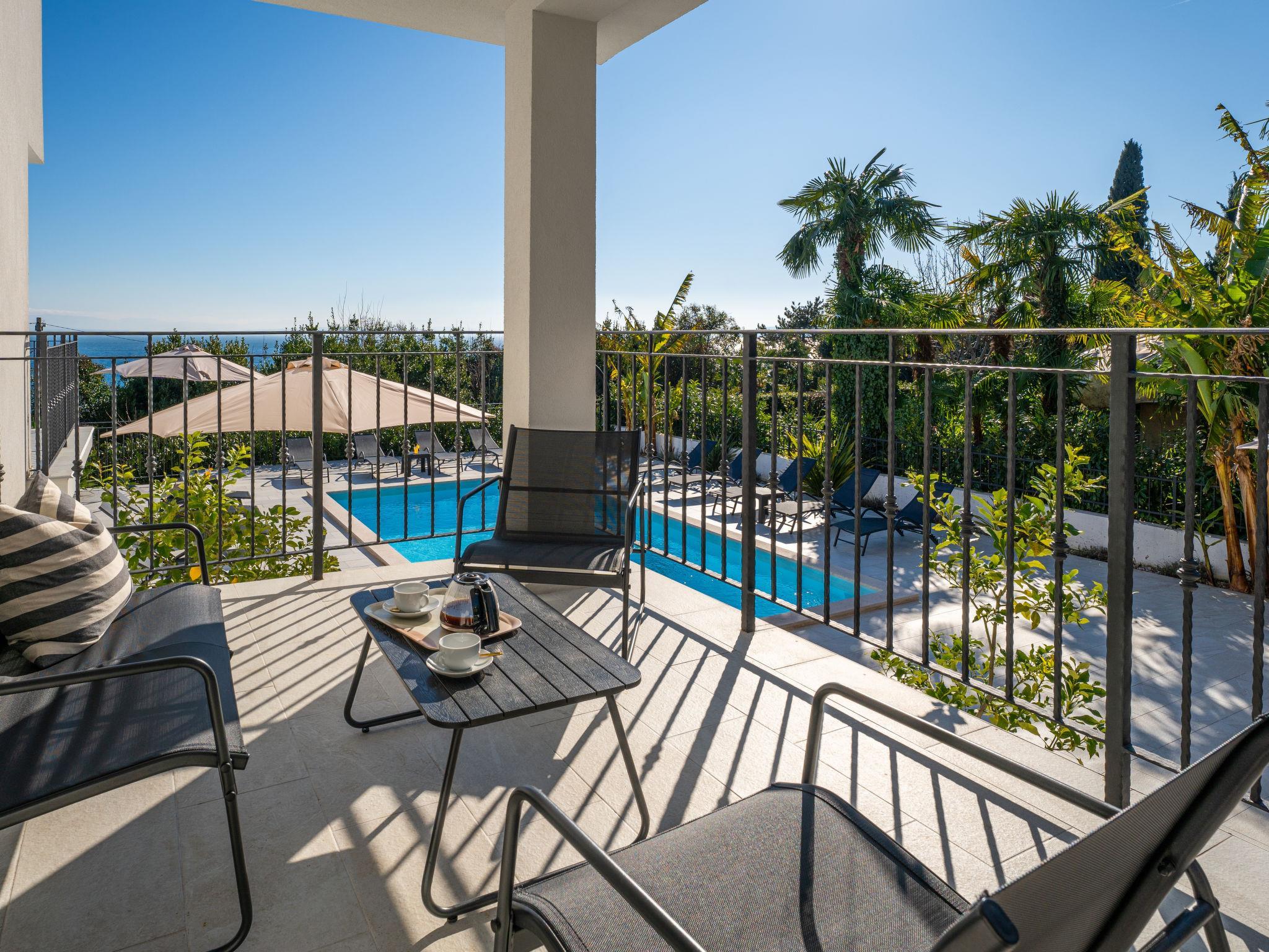 Schönes Mehrfamilienhaus "Villa Palma", renoviert im Jahre 2023. 1.1 km vom Zentrum von Lovran, sonnige Lage, 600 m vom Meer, 600 m vom Strand. Zur Mitbenutzung: Grundstück 900 m2 (eingezäunt), Garten mit Pflanzen, Schwimmbad eckig (8 x 4 m, 150 cm tief, saisonale Verfügbarkeit: 01.Mai. - 15.Okt.) mit Innentreppe und Salzelektrolyse-Reinigungssystem. WC im Poolbereich, Poolhaus mit Kühlschrank und Kochherd, Terrasse (30 m2), Gartenmöbel, Grill. Im Hause: Internetzugang. Parkplatz beim Haus auf dem Grundstück. Supermarkt 300 m, Restaurant 700 m, Bar 300 m, Bushaltestelle 400 m, Kieselstrand 600 m. Tennis 400 m, Wanderwege ab Haus 600 m.