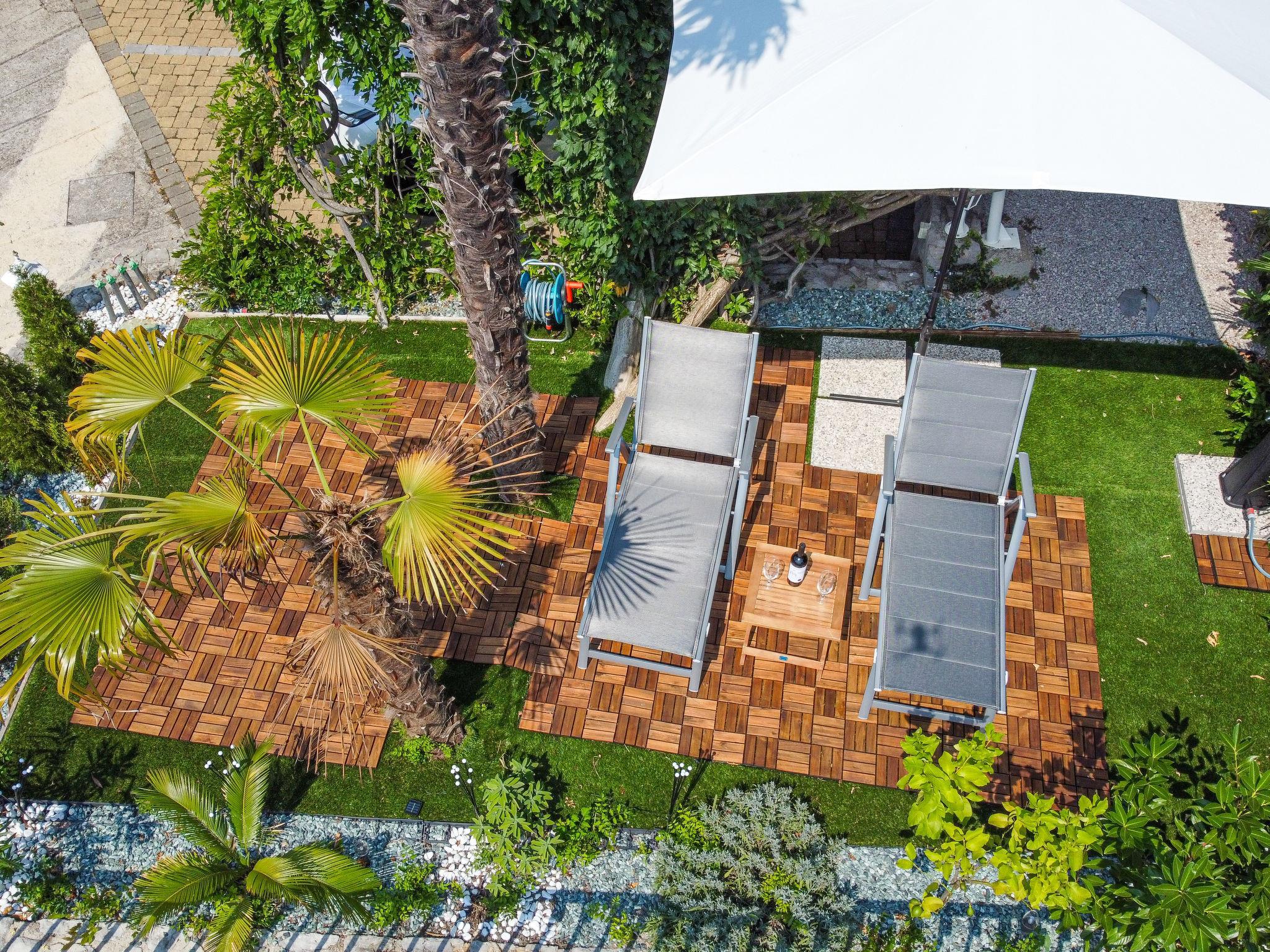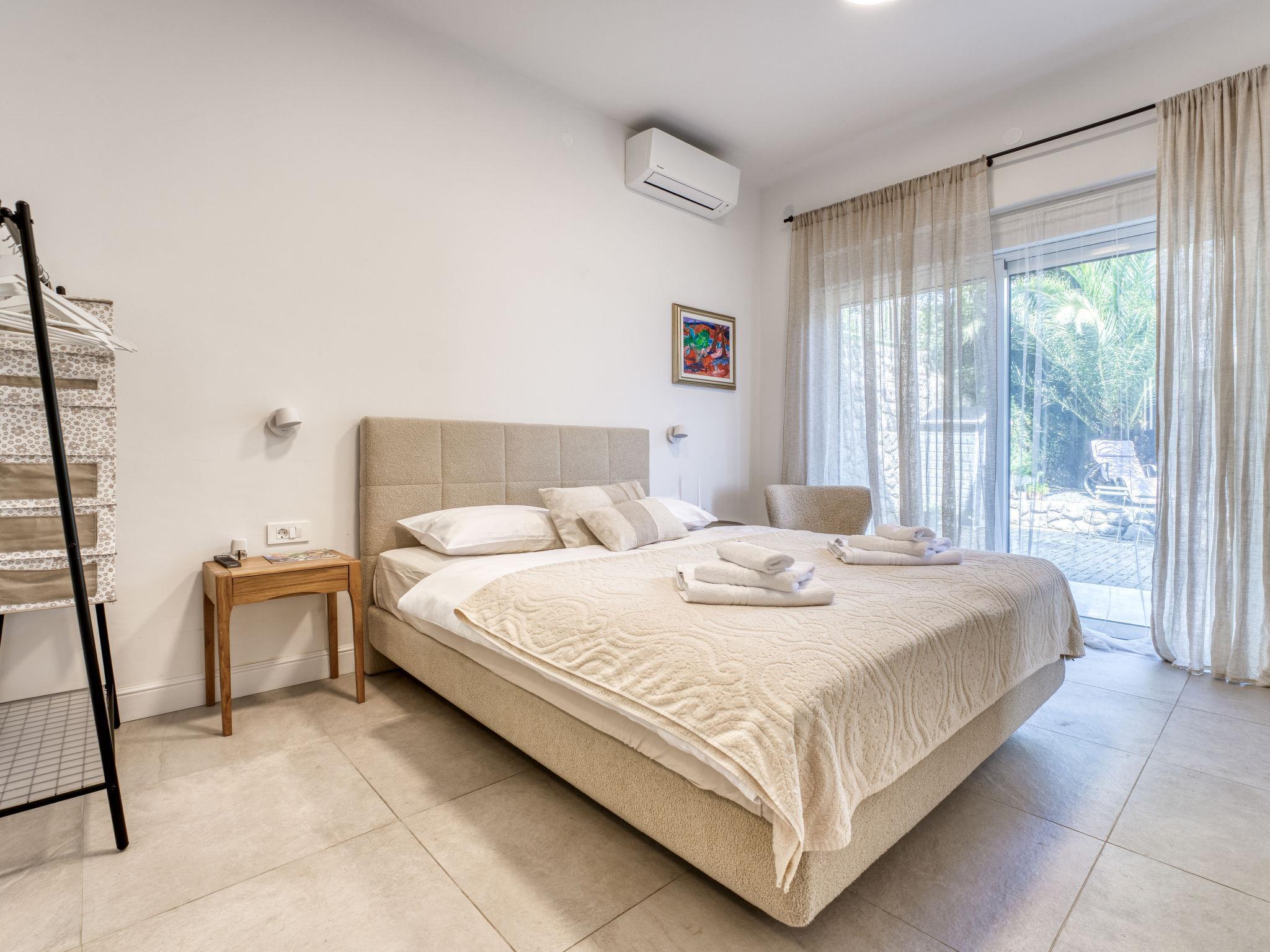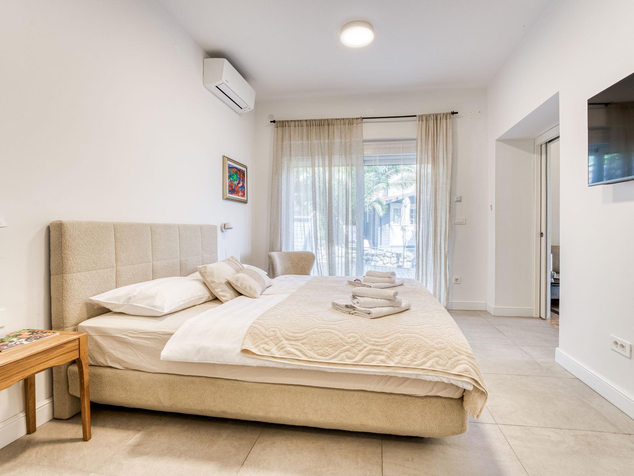 "Design Jamar", 3-Zimmer-Wohnung 54 m2, im erhöhten Erdgeschoss. Renoviert im Jahre 2025, geschmackvoll und stilvoll eingerichtet: Wohn-/Esszimmer mit Klimaanlage. Ausgang zur Terrasse. 1 Zimmer mit 1 Doppelbett (2 x 90 cm, Länge 200 cm), Dusche/WC und Kabel-TV (Flachbildschirm), Klimaanlage. Ausgang zur Terrasse. 1 Zimmer mit 1 Doppelbett (2 x 80 cm, Länge 200 cm), Dusche/WC und Kabel-TV (Flachbildschirm). Offene Küche (Backofen, Geschirrspüler, 2 Induktionskochplatten, Toaster, Wasserkocher, elektrische Kaffeemaschine). Bodenheizung, Warmluftheizung. Terrasse 25 m2 teilweise überdacht, Rasen 25 m2. Terrassenmöbel, Liegestühle (3). Herrliche Sicht auf das Meer. Zur Verfügung: Haartrockner. Internet (WLAN, gratis). Bitte beachten: Nichtraucher-Haus. 1 kleines Haustier/Hund erlaubt.