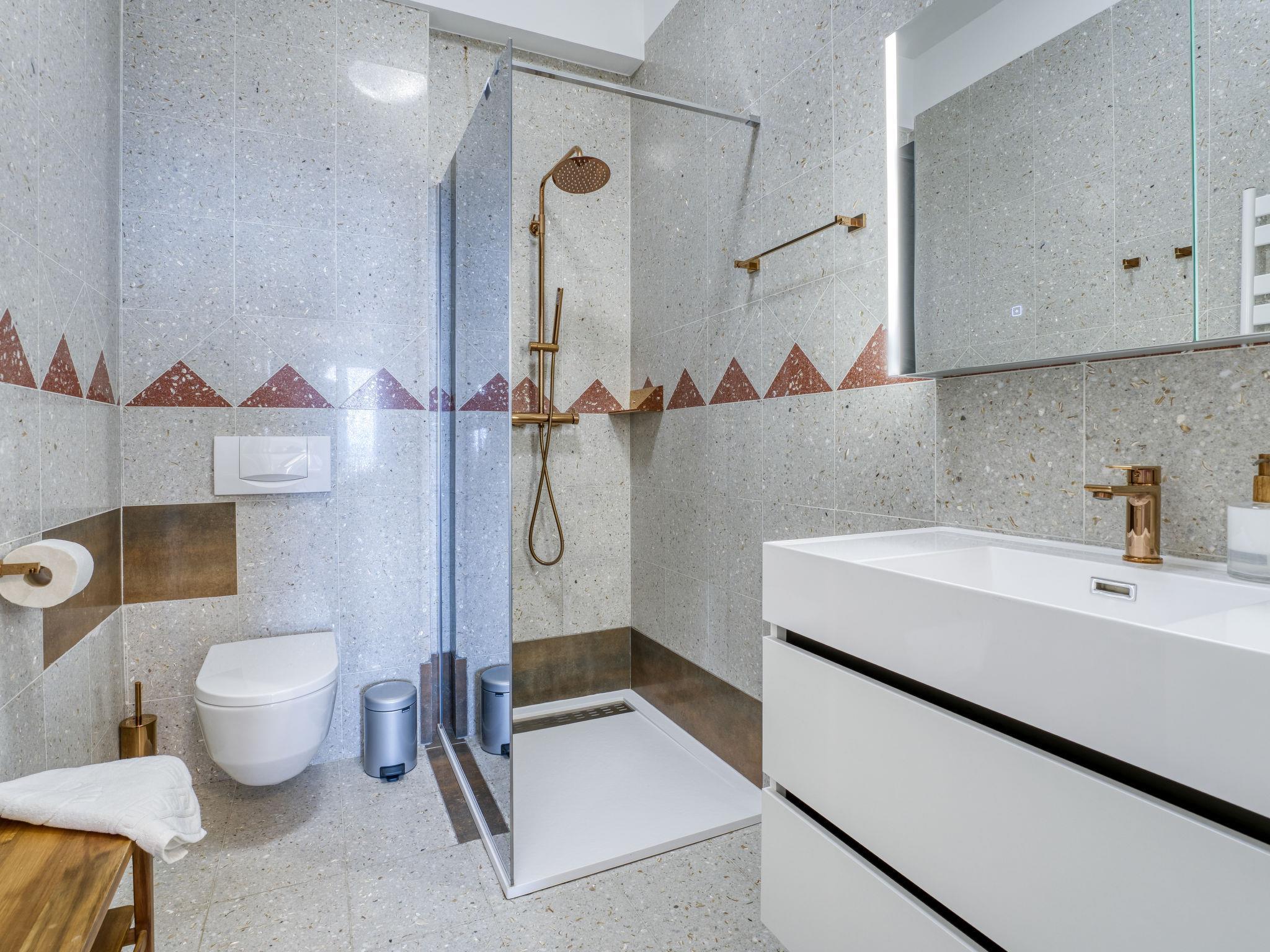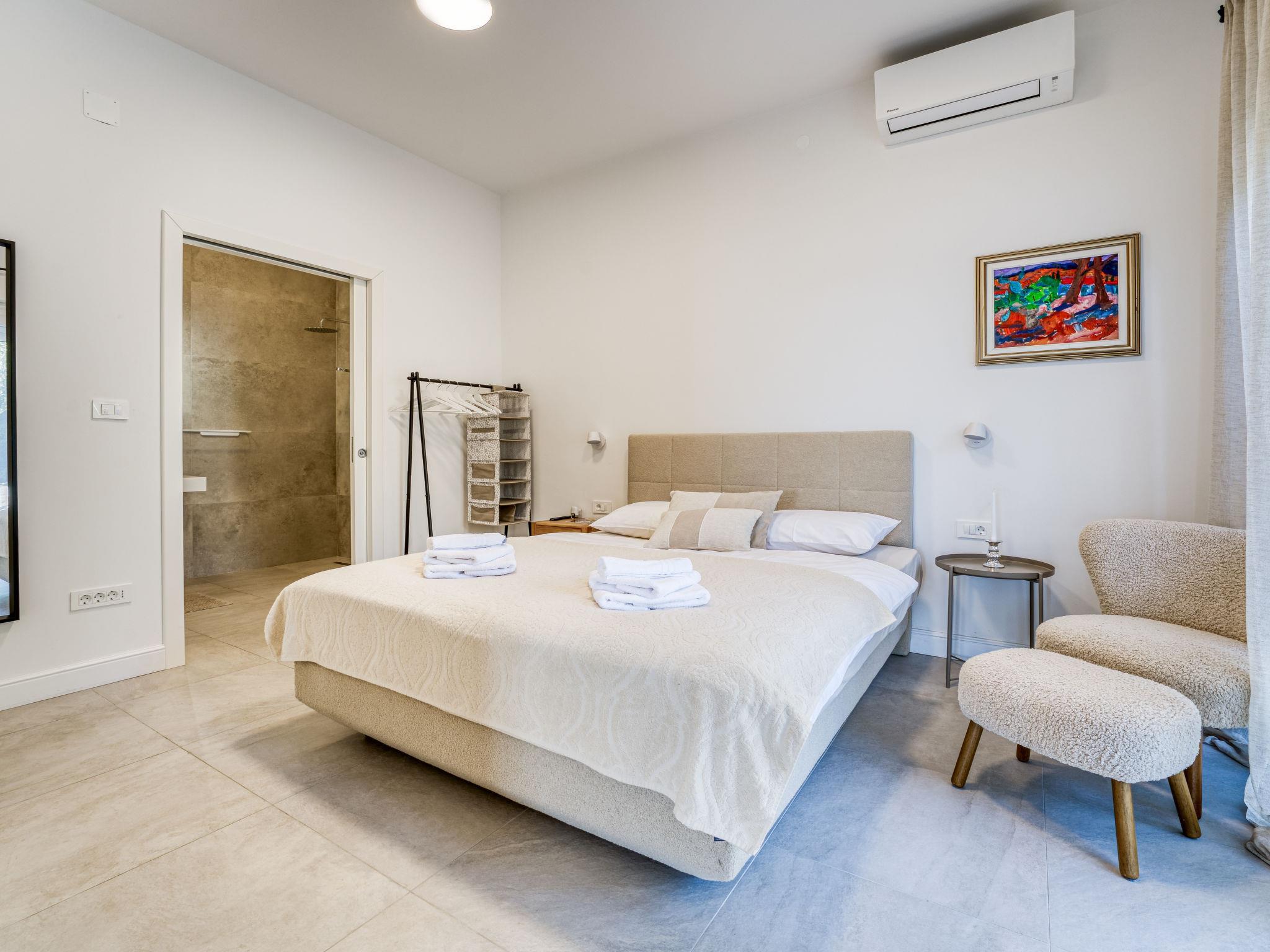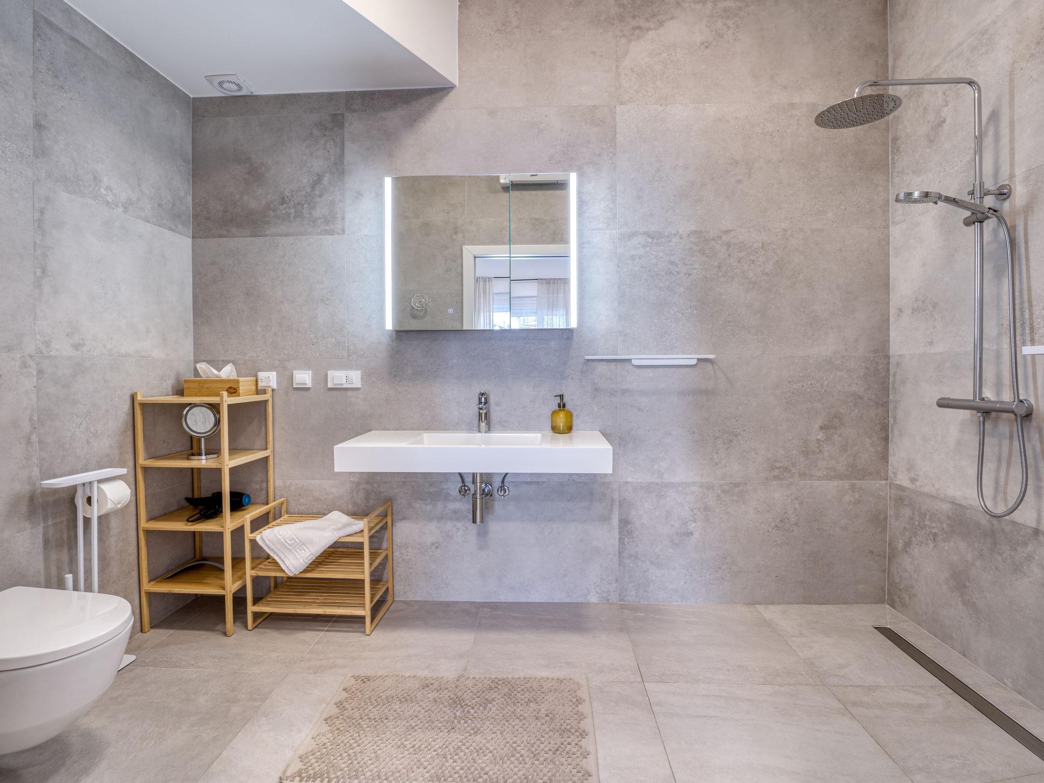 "Design Jamar", 3-Zimmer-Wohnung 54 m2, im erhöhten Erdgeschoss. Renoviert im Jahre 2025, geschmackvoll und stilvoll eingerichtet: Wohn-/Esszimmer mit Klimaanlage. Ausgang zur Terrasse. 1 Zimmer mit 1 Doppelbett (2 x 90 cm, Länge 200 cm), Dusche/WC und Kabel-TV (Flachbildschirm), Klimaanlage. Ausgang zur Terrasse. 1 Zimmer mit 1 Doppelbett (2 x 80 cm, Länge 200 cm), Dusche/WC und Kabel-TV (Flachbildschirm). Offene Küche (Backofen, Geschirrspüler, 2 Induktionskochplatten, Toaster, Wasserkocher, elektrische Kaffeemaschine). Bodenheizung, Warmluftheizung. Terrasse 25 m2 teilweise überdacht, Rasen 25 m2. Terrassenmöbel, Liegestühle (3). Herrliche Sicht auf das Meer. Zur Verfügung: Haartrockner. Internet (WLAN, gratis). Bitte beachten: Nichtraucher-Haus. 1 kleines Haustier/Hund erlaubt.