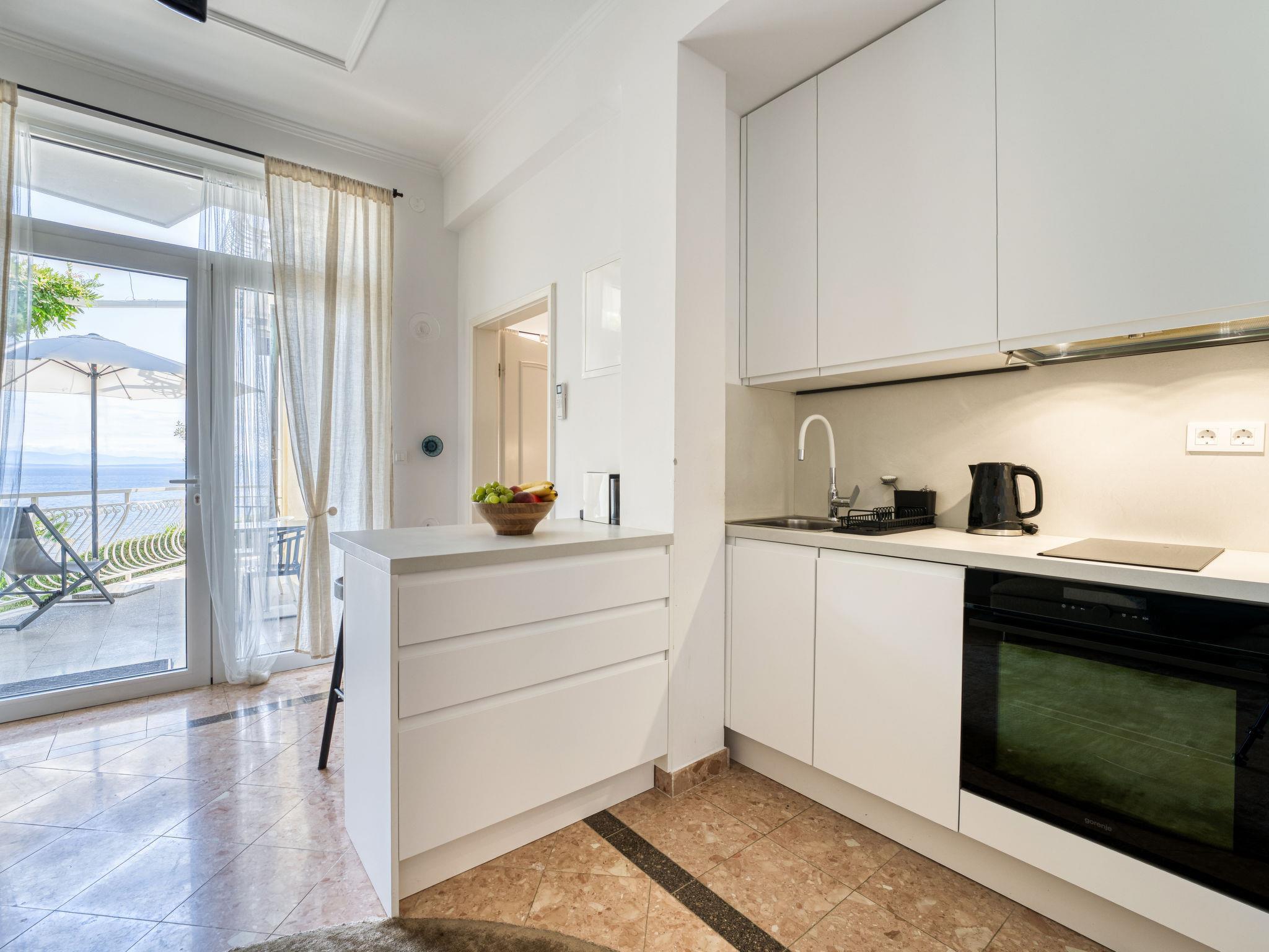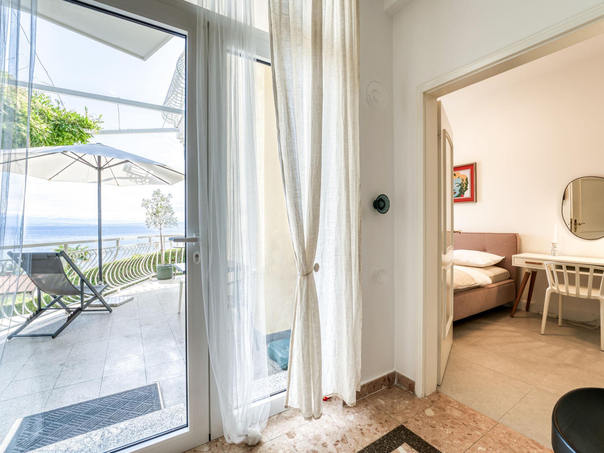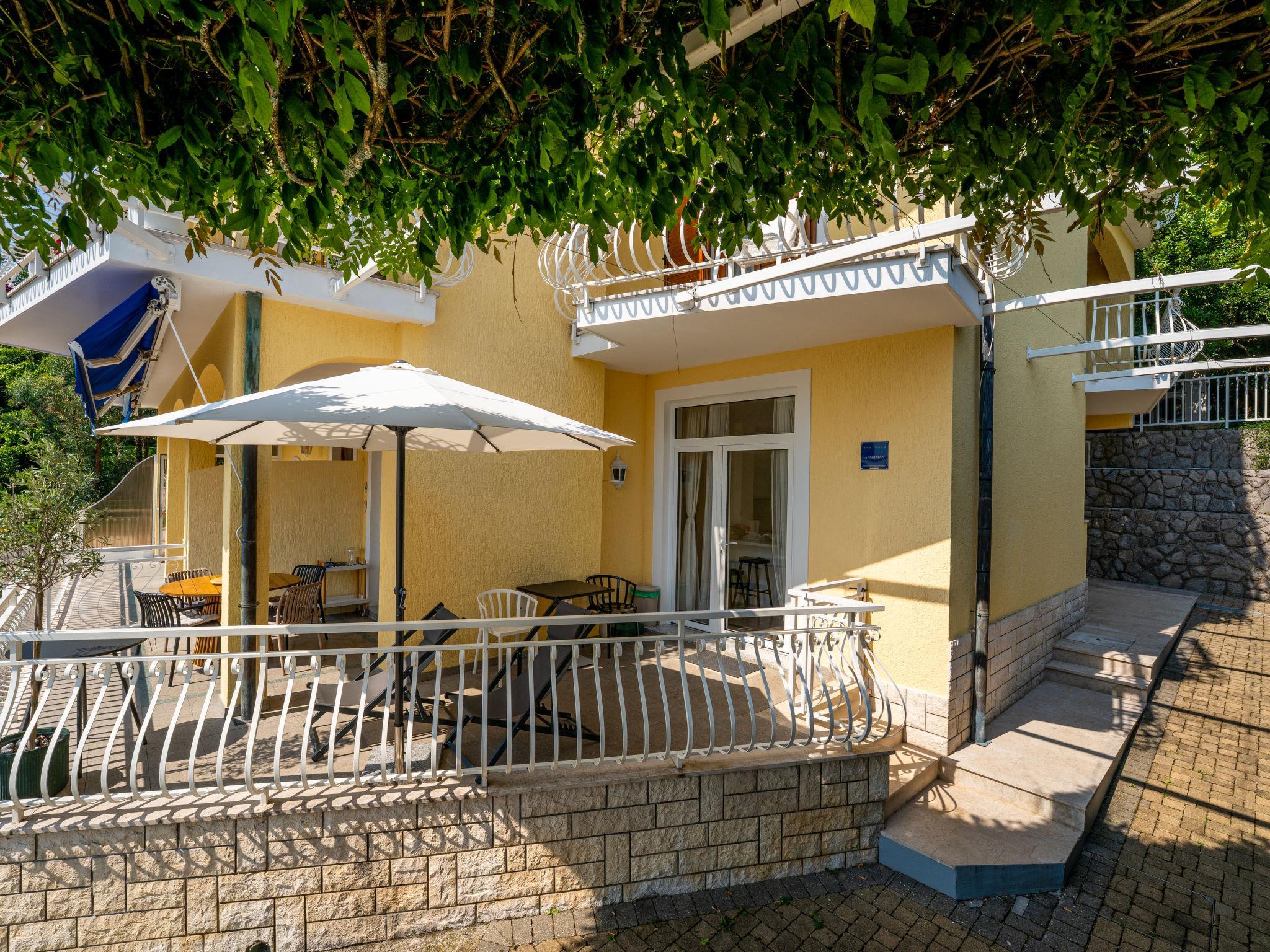 Mehrfamilienhaus. 700 m vom Zentrum von Lovran, 6.5 km vom Zentrum von Opatija, ruhige, sonnige, erhöhte Lage, 400 m vom Meer, 400 m vom Strand, in einer Sackgasse, im Grünen. Zur Mitbenutzung: Terrasse (30 m2), Gartenmöbel, Grill. Im Hause: Internetzugang. Parkplatz beim Haus auf dem Grundstück. Einkaufsgeschäft 800 m, Supermarkt 2.3 km, Restaurant 500 m, Café 600 m, Bushaltestelle 450 m, Strandbad 400 m. Tennis 1.5 km, Wanderwege ab Haus 800 m.
