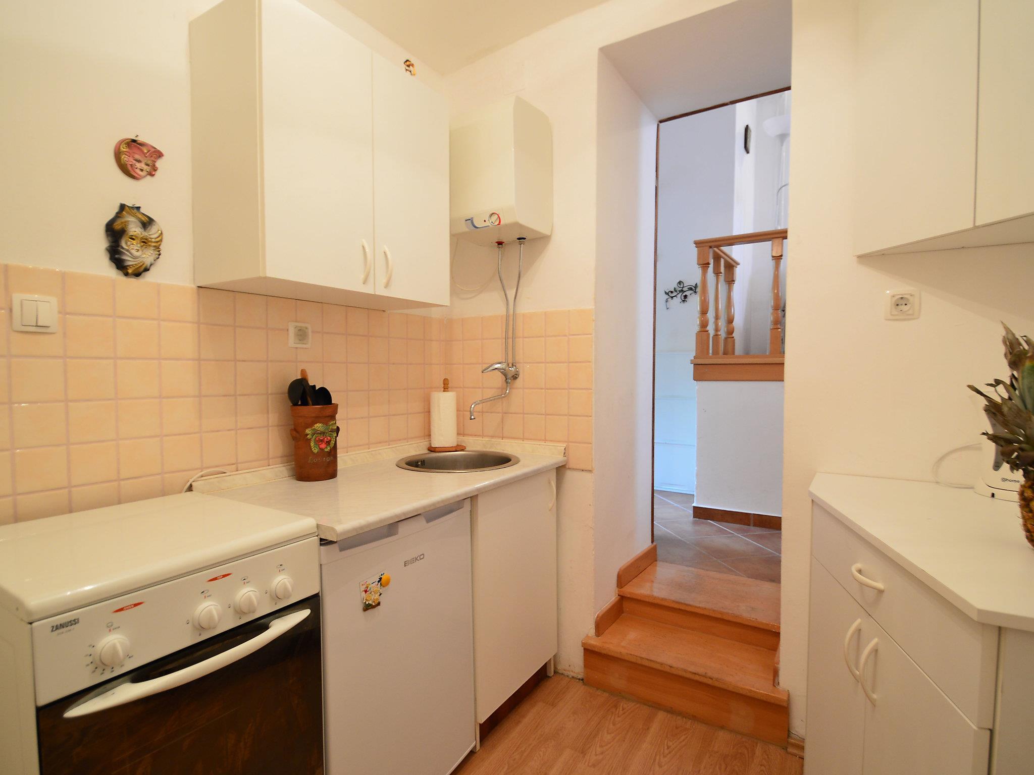 2-Zimmer-Wohnung 35 m2, im erhöhten Erdgeschoss, Südlage. Wohn-/Esszimmer mit 1 Diwanbett (110 cm, Länge 180 cm), Sat-TV (Flachbildschirm), Klimaanlage. Ausgang zum Balkon. 1 Zimmer mit 1 Doppelbett (2 x 90 cm, Länge 190 cm). Offene Küche (3 Kochplatten, Backofen). Dusche/WC. Keine Heizmöglichkeit. Balkon 4 m2. Terrassenmöbel. Fernsicht auf das Meer. Zur Verfügung: Internet (Wireless LAN, gratis). Bitte beachten: 1 kleines Haustier/Hund erlaubt. Eigener Eingang.
