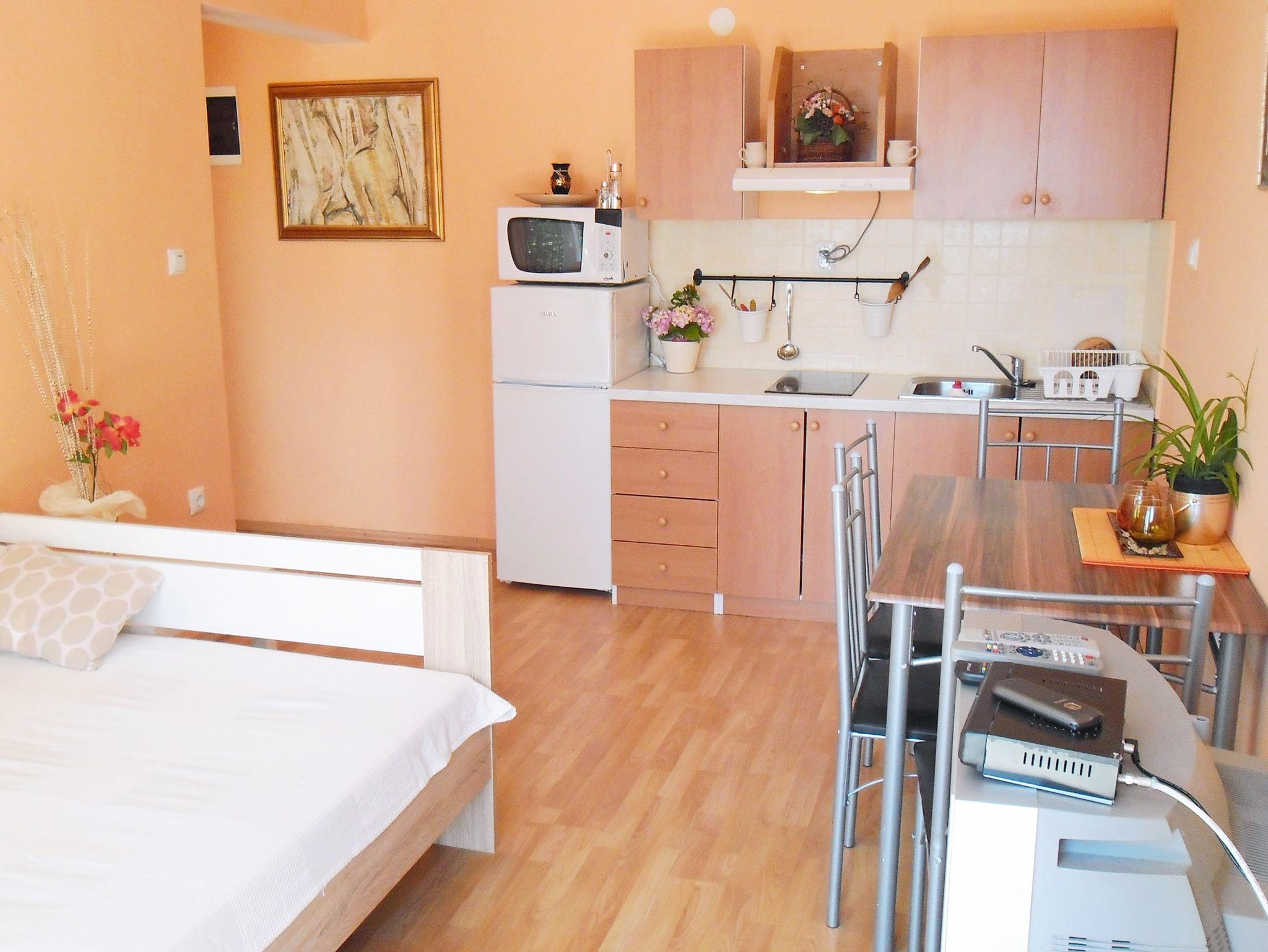 Ferienwohnung bietet Platz für 4 Gäste. Die Betten sind in Schlafzimmern, die es 1 gibt, und in Esszimmer, innerhalb einer Gesamtfläche von 28m2, angeordnet. Die Gäste haben eine eigene Terrasse zur Verfügung, auf der sie in warmen Sommernächten genießen können. Das Apartment bietet Meerblick. Es ist erlaubt, Speisen auf dem Gemeinschafts-Grill vorzubereiten. In der Unterkunftseinheit besteht die Möglichkeit des Mitbringens von Haustieren gegen Aufpreis. IM PREIS INBEGRIFFEN: Endreinigung, Klimatisierung, Internet, Bügeleisen, Bügelbrett, Föhn. VERBINDLICHE ZUSÄTZLICHE KOSTEN: Kurtaxe (Erwachsene 0,93 € - 2,00 € Nacht/Person, Kinderermäßigung 12 - 17 Jahre), Aufzahlung für Kurzaufenthalte (prozentualer Zuschlag pro Nächtigungsanzahl: 30% - 1, 20% - 2, 10% - 3). UNVERBINDLICHE ZUSÄTZLICHE KOSTEN: Haustiere (10,00 € pro Nacht), Zusatzbett (10,00 € pro Nacht). Die Verfügbarkeit zusätzlicher Dienstleistungen in Ihrem reservierten Termin und die Preise derselben (falls nicht aufgeführt) müssen im Voraus überprüft werden. Zusätzliche Dienstleistungen die in der Zahlungsaufforderung nicht aufgeführt sind werden direkt beim Vermieter bezahlt, angenommen der Gast nutzt auch diese.