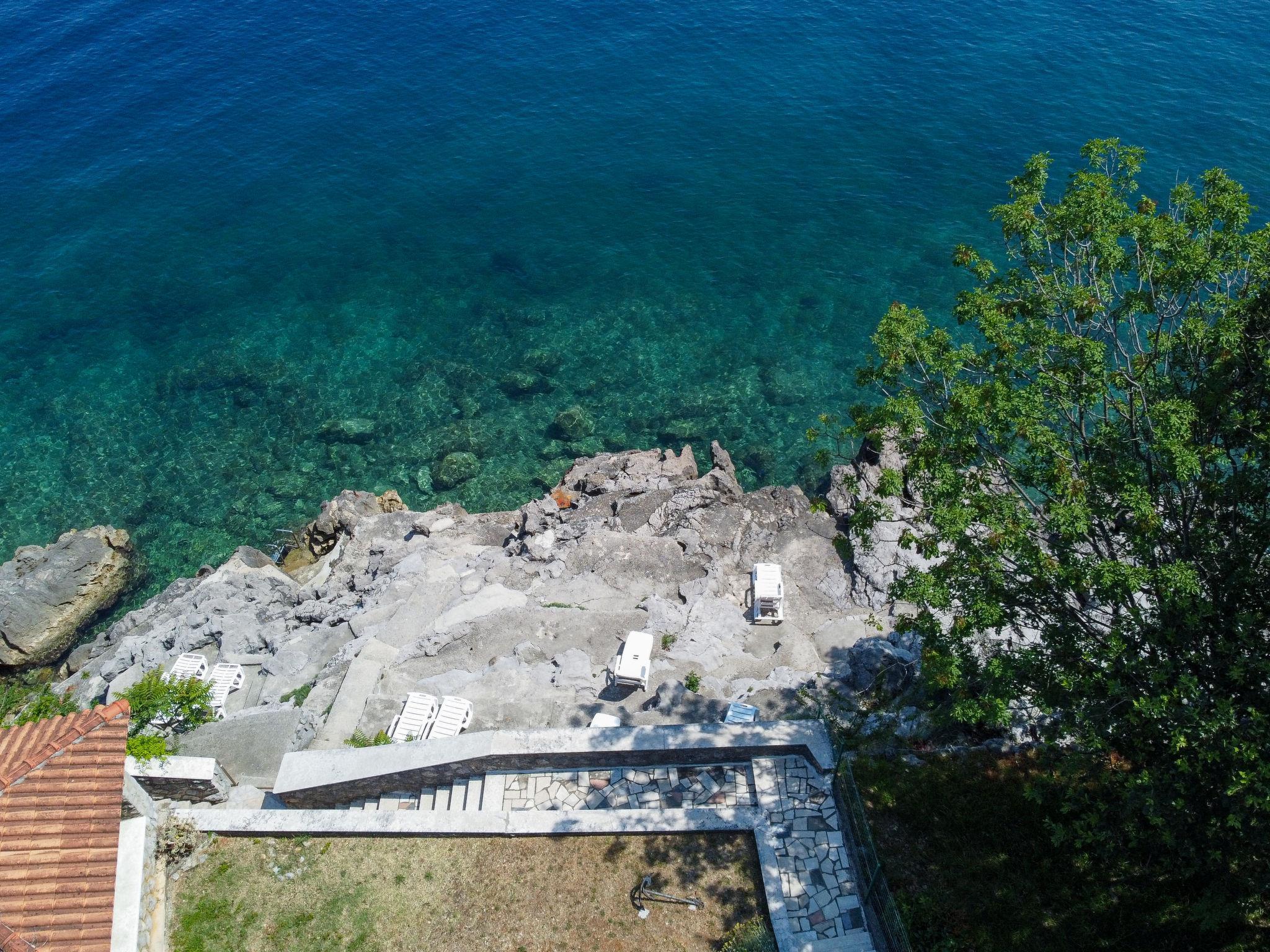 Medveja 3 km von Lovran: Mehrfamilienhaus "Lilly 1". 50 m vom Meer, 50 m vom Strand, direkter Zugang zum Strand. Zur Mitbenutzung: Grundstück 900 m2 (eingezäunt) mit Pflanzen und Bäumen. Laube (10 m2), Gartenmöbel, Grill. Im Hause: Internetzugang. Einkaufsgeschäft 300 m, Supermarkt 3 km, Restaurant, Bar, Café, Bushaltestelle 300 m, Kieselstrand "Medveja" 300 m, Steinstrand "Medveja" 300 m, Felsstrand 50 m. Sporthafen 300 m. Bitte beachten: Ferienwohnung Ref. HR3056.102.1 befindet sich auf dem gleichen Grundstück.