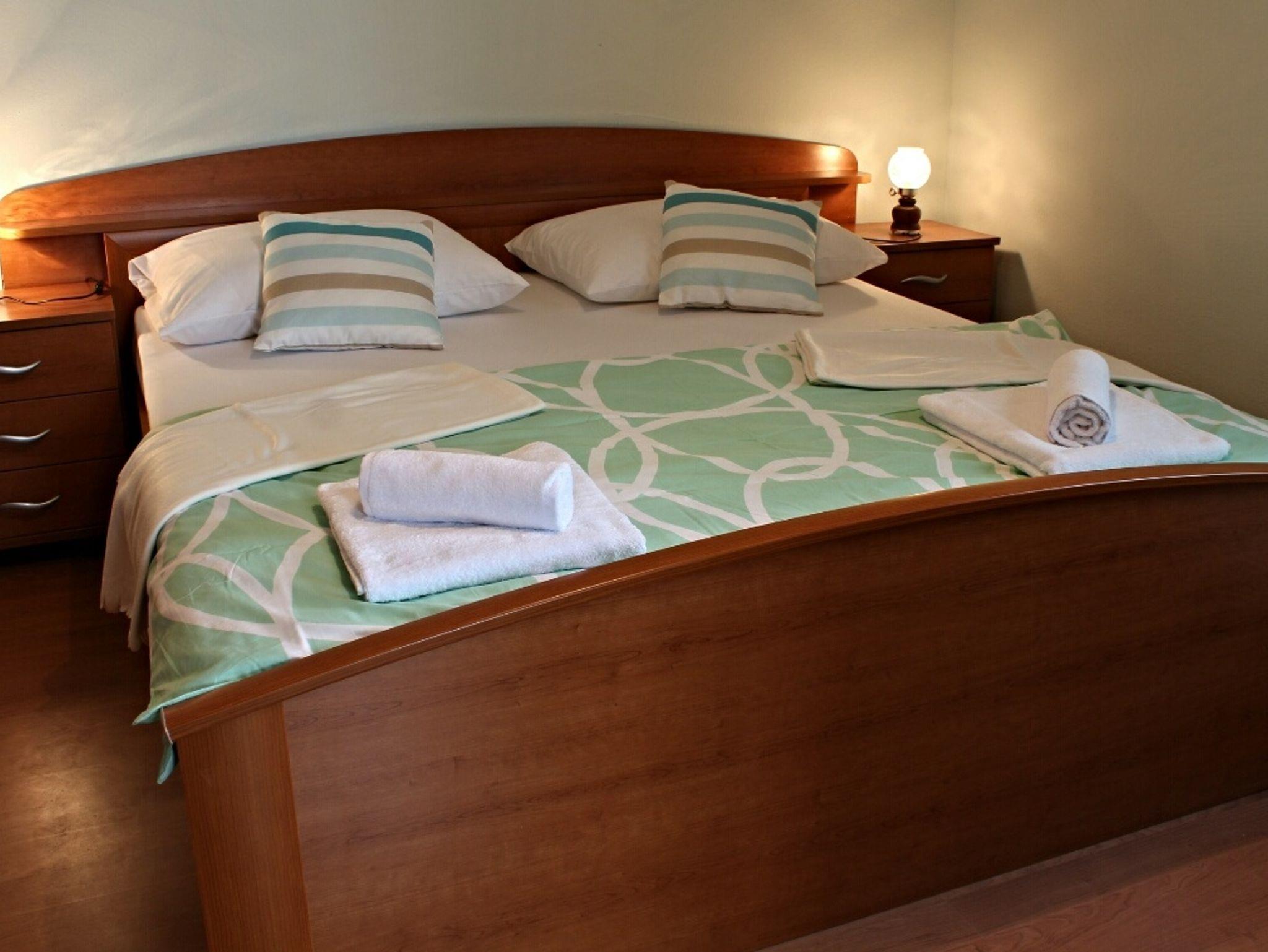 Ferienwohnung bietet Platz für 6 Gäste. Die Betten sind in Schlafzimmern, die es 2 gibt, und in Wohnzimmer, innerhalb einer Gesamtfläche von 70m2, angeordnet. Die Gäste haben eine eigene Terrasse zur Verfügung, auf der sie in warmen Sommernächten genießen können. Es ist erlaubt, Speisen auf dem Gemeinschafts-Grill vorzubereiten. IM PREIS INBEGRIFFEN: Kurtaxe, Endreinigung, Klimatisierung, Parkplatz, Garage, Internet, Bügeleisen, Bügelbrett, Föhn, tragbarer Grill. VERBINDLICHE ZUSÄTZLICHE KOSTEN: Aufzahlung für Kurzaufenthalte (prozentualer Zuschlag pro Nächtigungsanzahl: 30% - 1, 20% - 2, 10% - 3). Die Verfügbarkeit zusätzlicher Dienstleistungen in Ihrem reservierten Termin und die Preise derselben (falls nicht aufgeführt) müssen im Voraus überprüft werden. Zusätzliche Dienstleistungen die in der Zahlungsaufforderung nicht aufgeführt sind werden direkt beim Vermieter bezahlt, angenommen der Gast nutzt auch diese.
