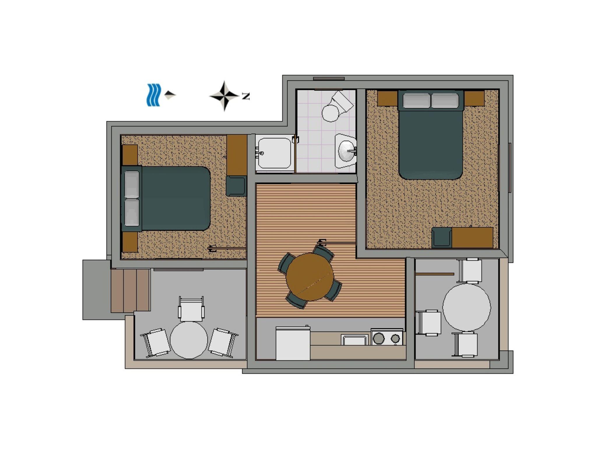 Ferienwohnung bietet Platz für 4 Gäste. Die Betten sind in Schlafzimmern, die es 2 gibt, innerhalb einer Gesamtfläche von 32m2, angeordnet. Die Gäste haben eine eigene Terrasse zur Verfügung, auf der sie in warmen Sommernächten genießen können. Das Apartment bietet Meerblick. Es ist erlaubt, Speisen auf dem Gemeinschafts-Grill vorzubereiten. IM PREIS INBEGRIFFEN: Kurtaxe, Endreinigung, Klimatisierung, Parkplatz, Internet, Bügeleisen, Bügelbrett, Föhn. Die Verfügbarkeit zusätzlicher Dienstleistungen in Ihrem reservierten Termin und die Preise derselben (falls nicht aufgeführt) müssen im Voraus überprüft werden. Zusätzliche Dienstleistungen die in der Zahlungsaufforderung nicht aufgeführt sind werden direkt beim Vermieter bezahlt, angenommen der Gast nutzt auch diese.