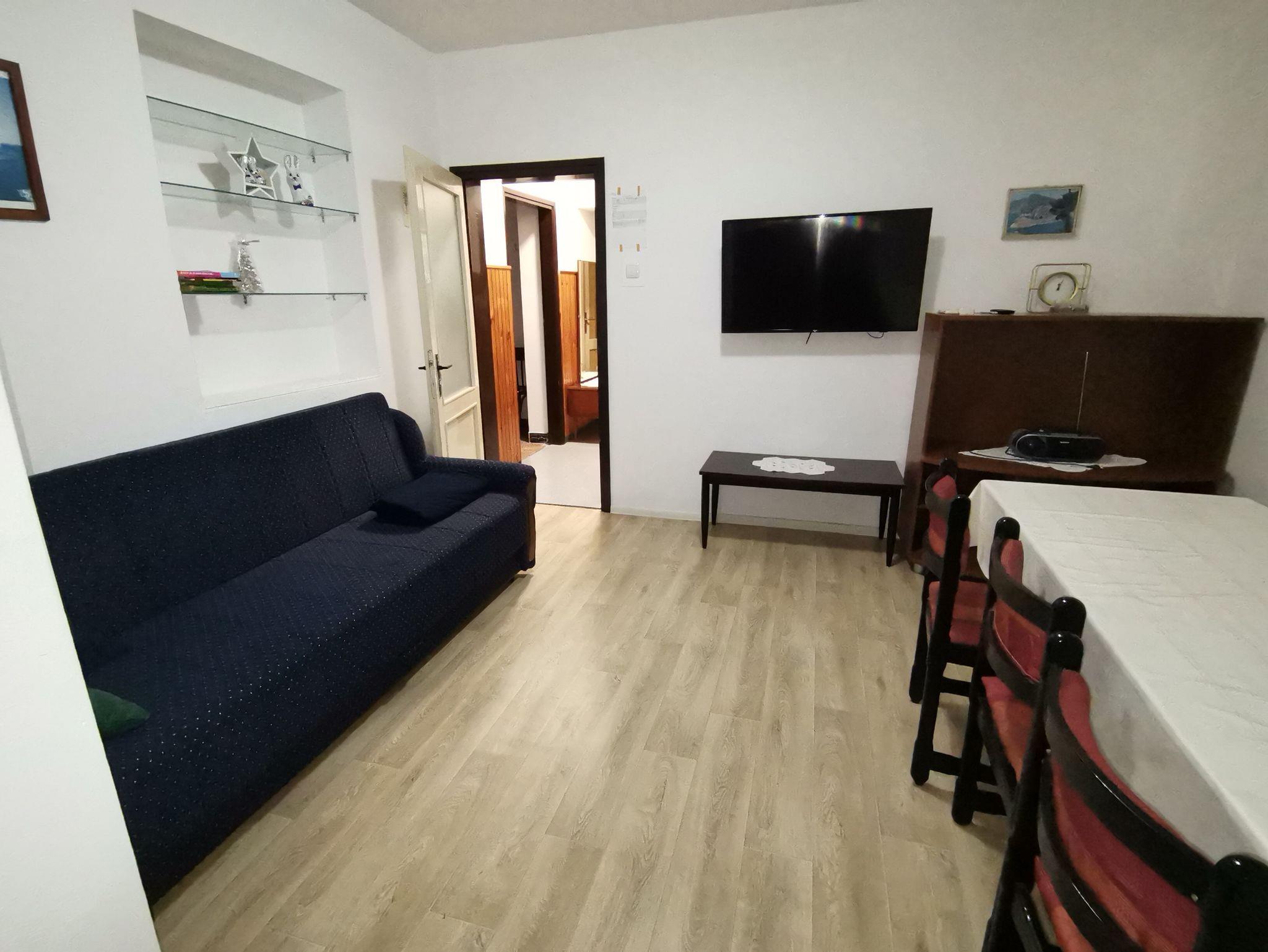 Ferienwohnung bietet Platz für 5 Gäste. Die Betten sind in Schlafzimmern, die es 2 gibt, innerhalb einer Gesamtfläche von 62m2, angeordnet. Die Gäste haben eine eigene Terrasse zur Verfügung, auf der sie in warmen Sommernächten genießen können. Das Apartment bietet Meerblick. Es ist erlaubt, Speisen auf dem Gemeinschafts-Grill vorzubereiten. IM PREIS INBEGRIFFEN: Kurtaxe, Endreinigung, Klimatisierung, Internet, Bügeleisen, Bügelbrett, Föhn. VERBINDLICHE ZUSÄTZLICHE KOSTEN: Aufzahlung für Kurzaufenthalte (prozentualer Zuschlag pro Nächtigungsanzahl: 30% - 1, 20% - 2, 10% - 3). UNVERBINDLICHE ZUSÄTZLICHE KOSTEN: Zusatzbett (6,00 € pro Nacht). Die Verfügbarkeit zusätzlicher Dienstleistungen in Ihrem reservierten Termin und die Preise derselben (falls nicht aufgeführt) müssen im Voraus überprüft werden. Zusätzliche Dienstleistungen die in der Zahlungsaufforderung nicht aufgeführt sind werden direkt beim Vermieter bezahlt, angenommen der Gast nutzt auch diese.