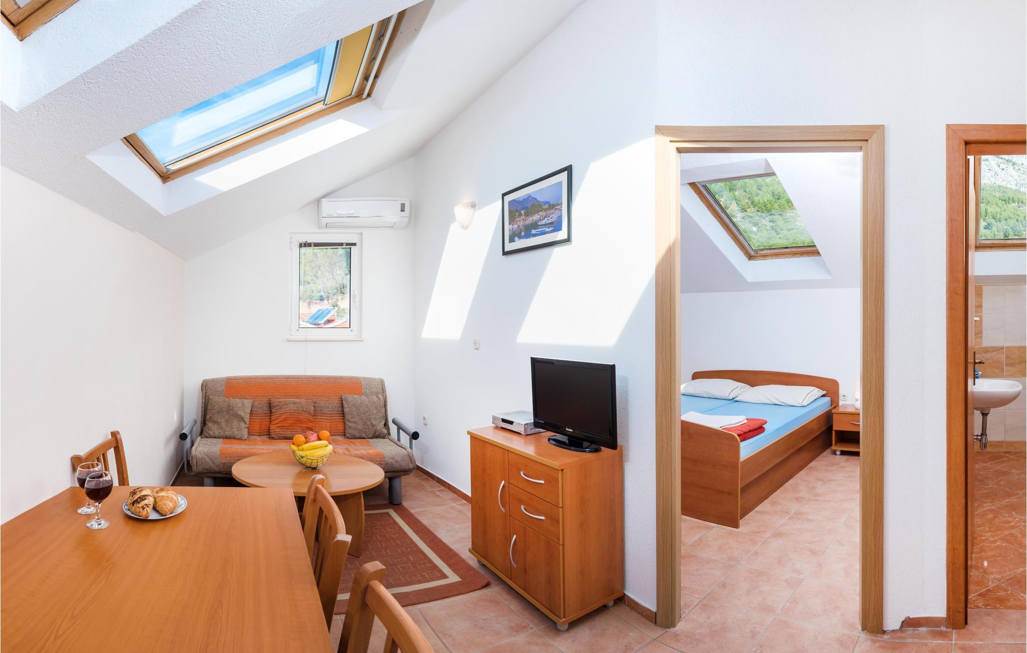 Die einladende Ferienwohnung empfängt Sie in guter Lage über dem Zentrum von Baska Voda nahe dem Strand und ist der ideale Ort für eine erholsame Auszeit mit dem richtigen Mix aus Aktivitäten und Entspannung. Nutzen Sie die wohnlichen Räume mit warmen Farben als Basis für einen schönen Urlaub, in dem Sie die Umgebung erkunden und in vollen Zügen das Strandleben genießen können.