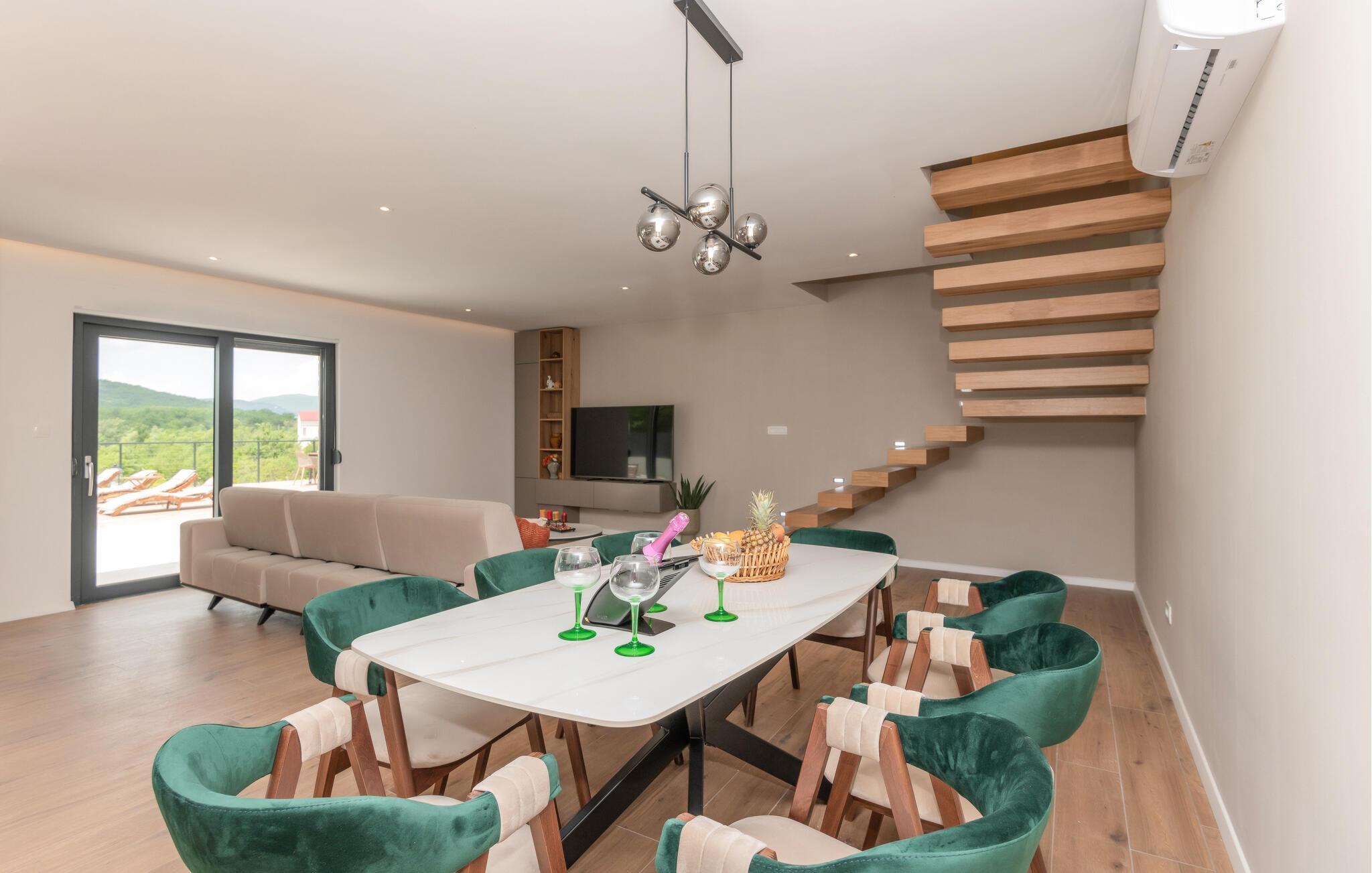 Ihr großes Ferienhaus in Kamenmost, das aus zwei Wohneinheiten mit separaten Eingängen besteht und Platz für bis zu drei Familien bietet, lädt Sie zu einem luxuriösen Ferienhausurlaub ein. Genießen Sie hier Ruhe und Entspannung inmitten der unberührten Natur. Ihr privater Pool steht gleich morgens zu Ihrer Verfügung und verspricht erfrischende und vergnügliche Stunden im Wasser. Am Grill können Sie frische lokale Zutaten zu einem köstlichen Mahl verarbeiten. Servieren Sie Ihre kulinarischen Kreationen unter freiem Himmel.