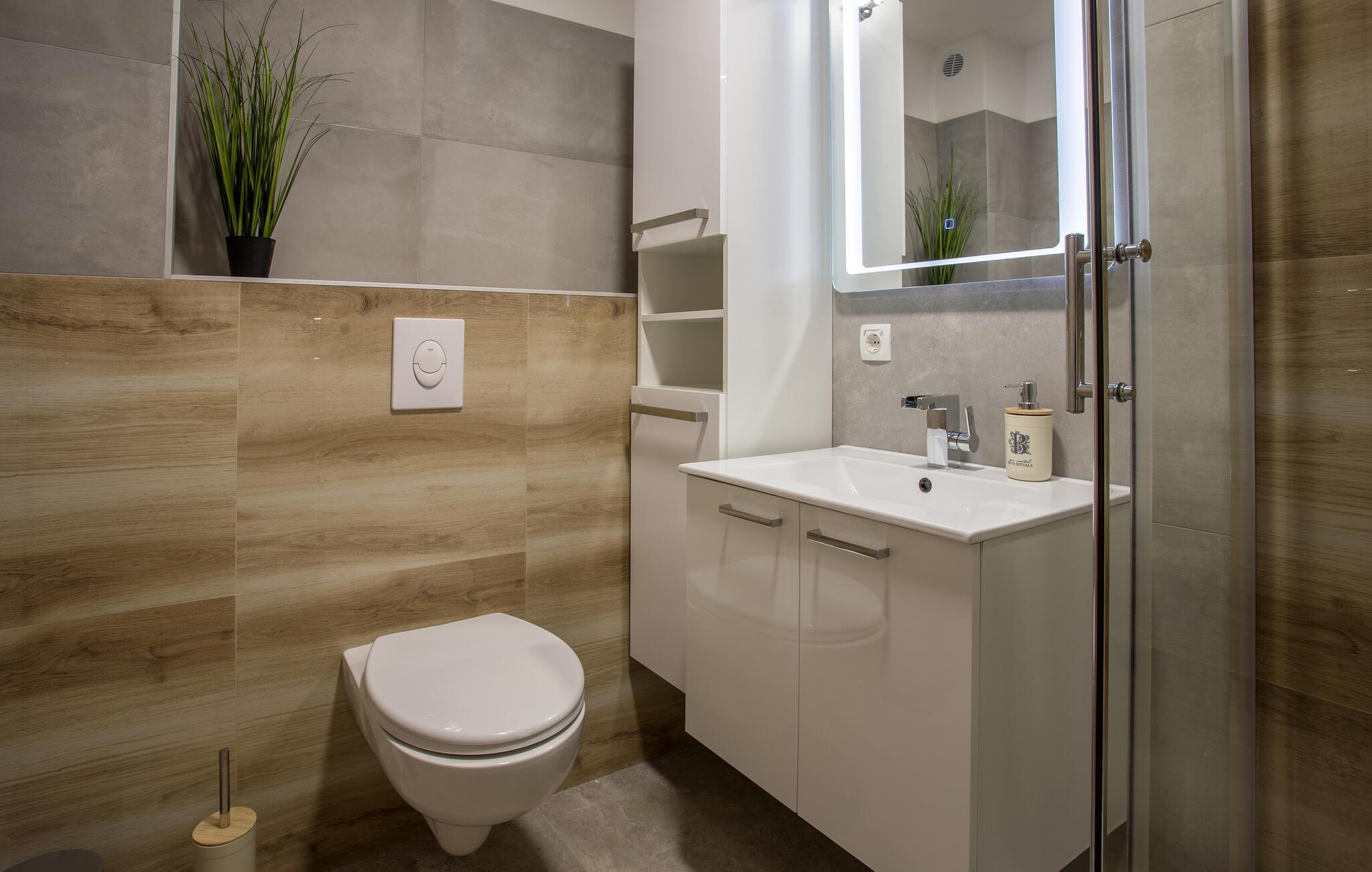 Badezimmer 6m2 (nr. 5) - WC. Warmes und kaltes Wasser. Dusche