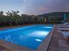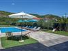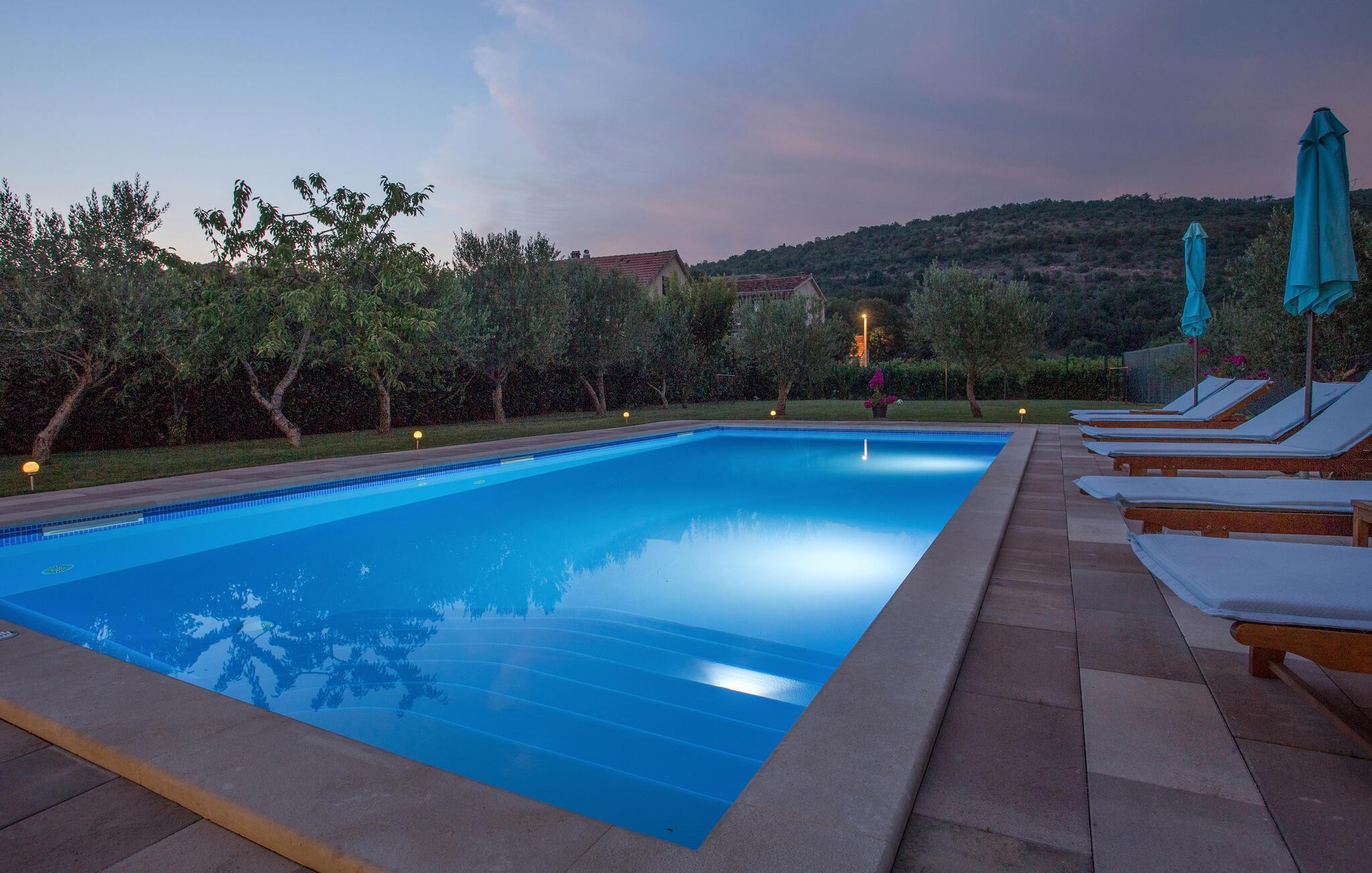 Großzügiges, familienfreundliches Poolhaus mit Blick auf die hügelige Landschaft.