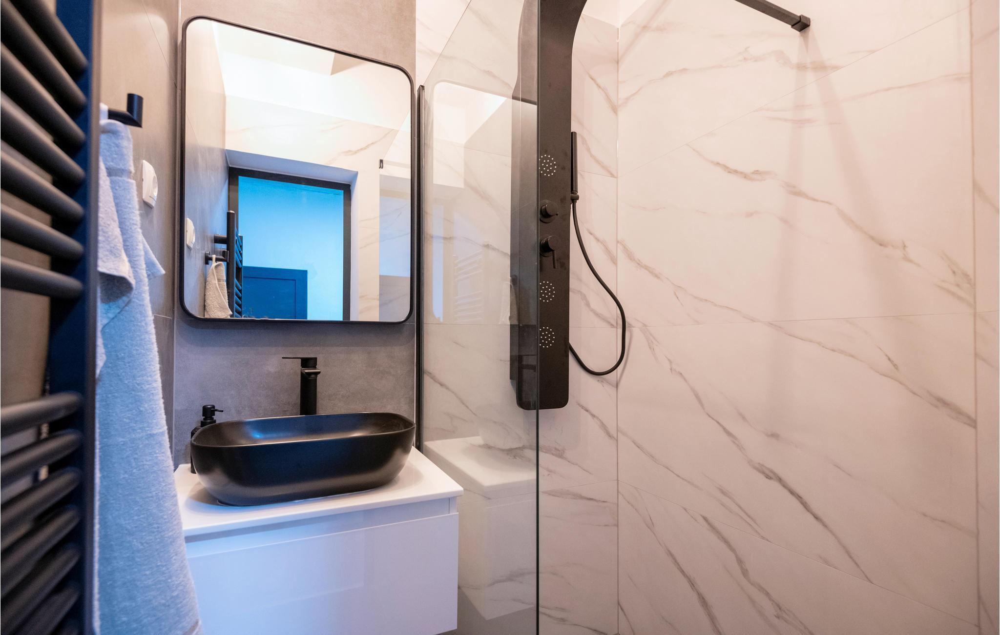 Badezimmer 5m2 (nr. 2) - WC. Warmes und kaltes Wasser. Dusche