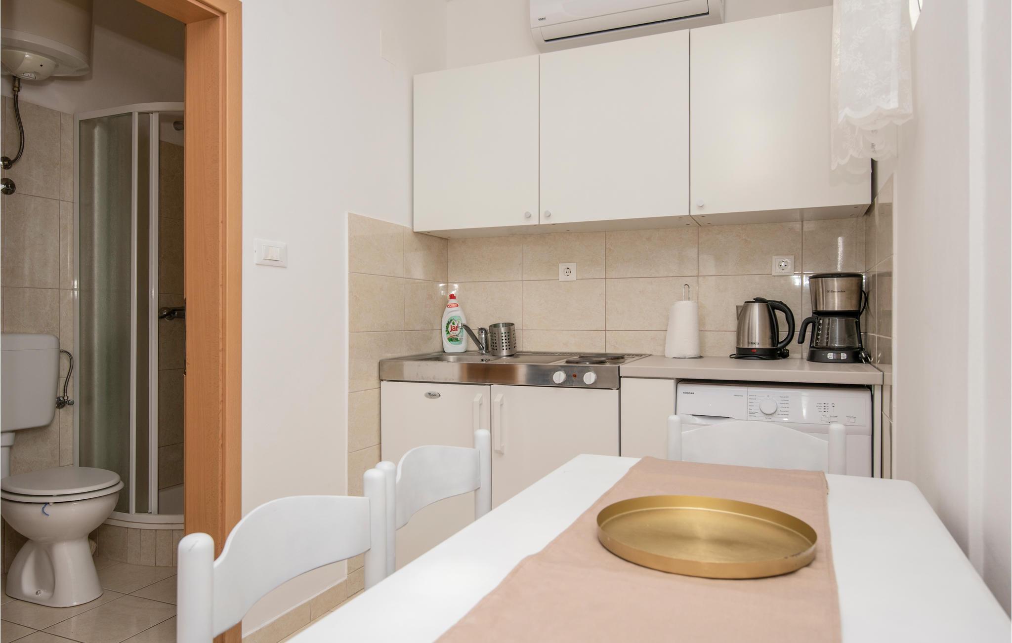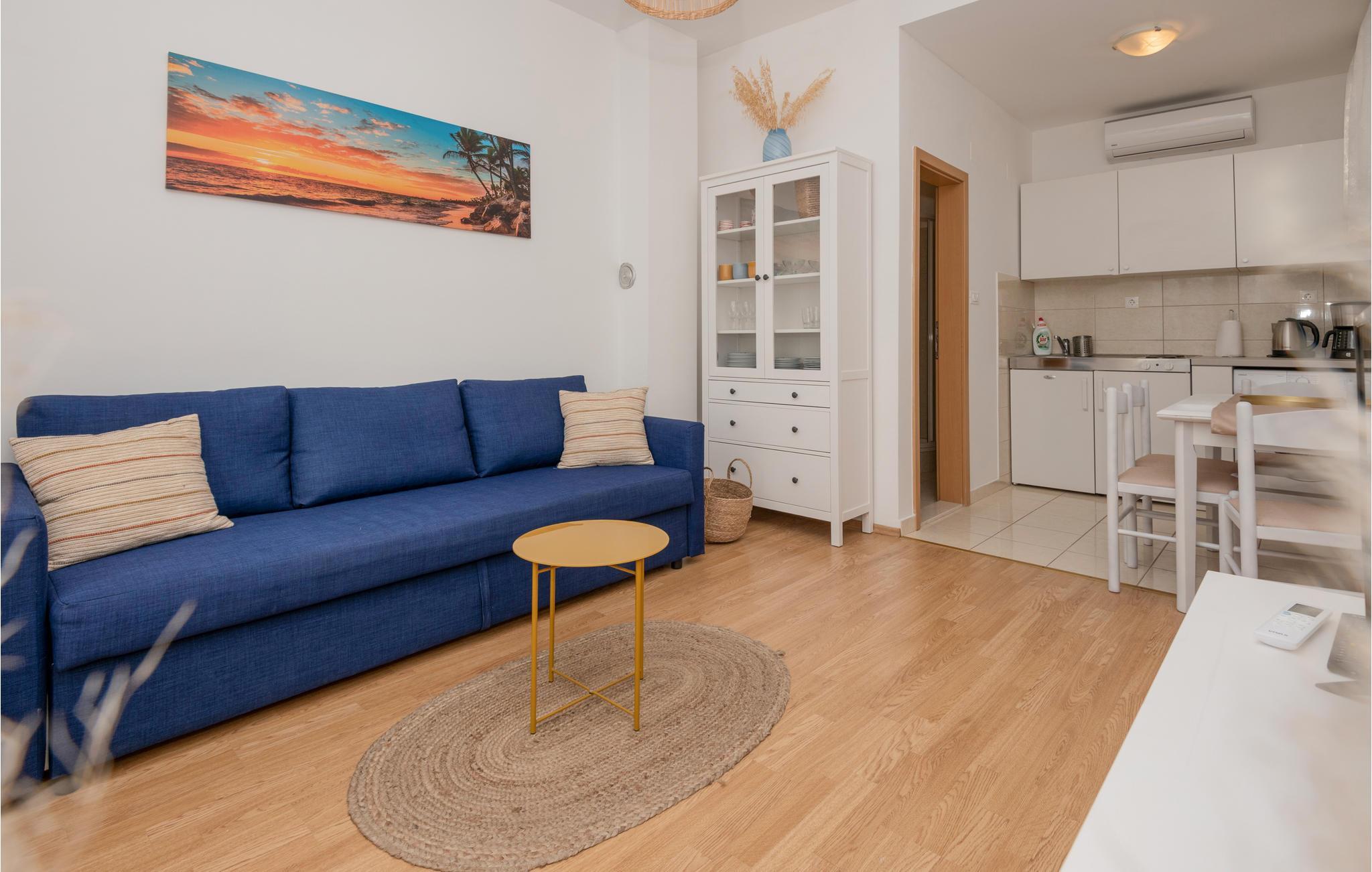 Machen Sie es sich in den hellen Räumen gemütlich, mit ihrer gepflegten und wohnlichen Einrichtung ist die Wohnung der ideale Ort für eine unvergessliche Auszeit an der Makarska Riviera. Bereiten Sie in der Küche ein leckeres Frühstück zu, nach einem gemütlichen Essen und einer Tasse Kaffee sind Sie bereit für die Aktivitäten des Tages. Abends lädt das gemütliche Sofa dazu ein, das Erlebte gemeinsam noch einmal Revue passieren zu lassen.
