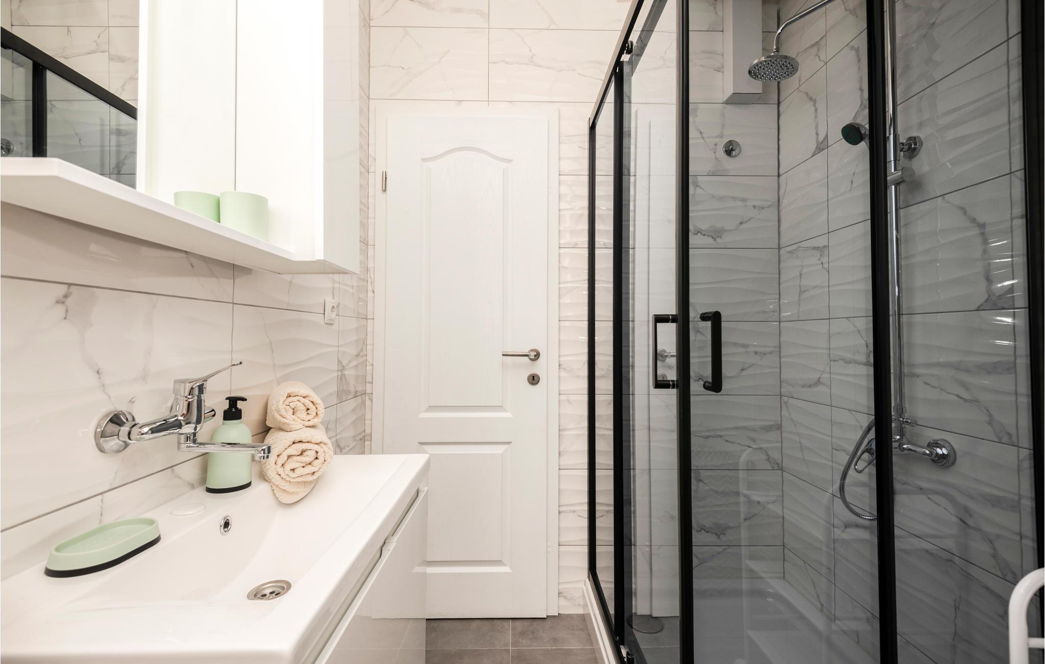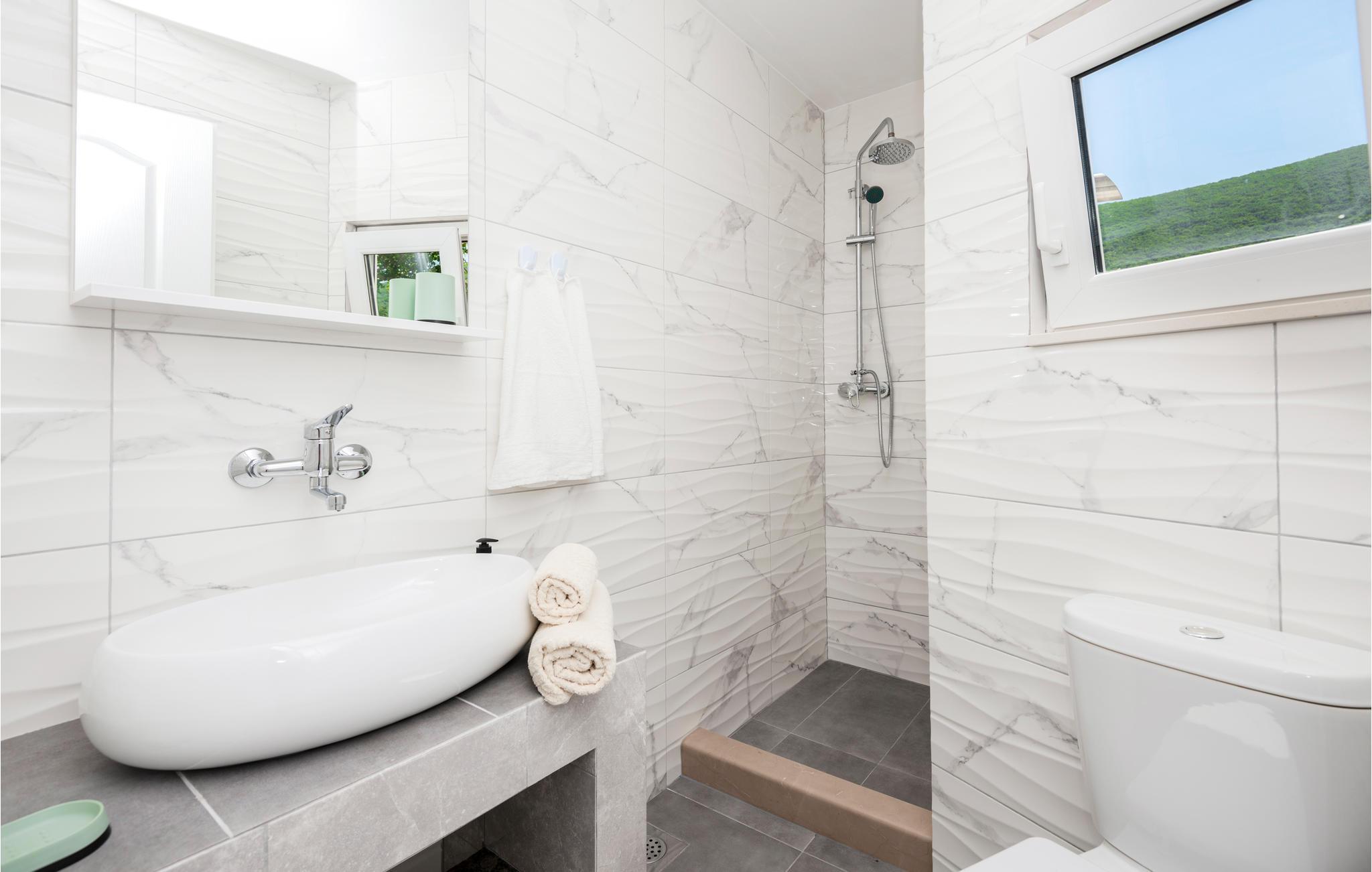 Badezimmer 4m2 (nr. 2) - WC. Warmes und kaltes Wasser. Dusche