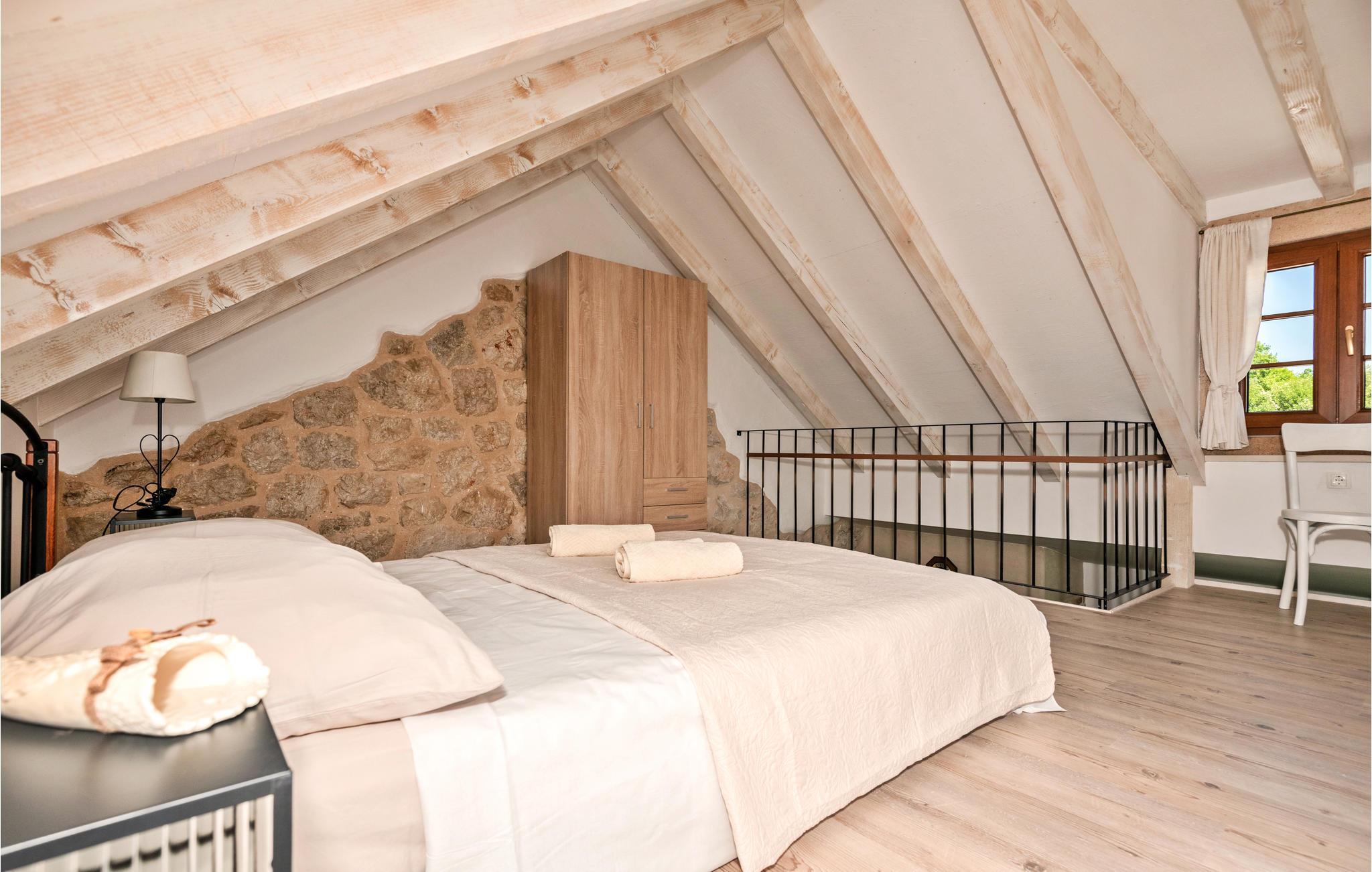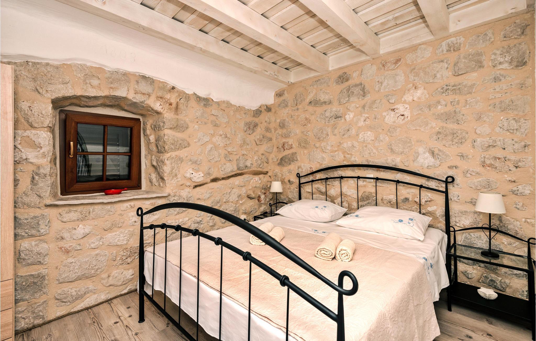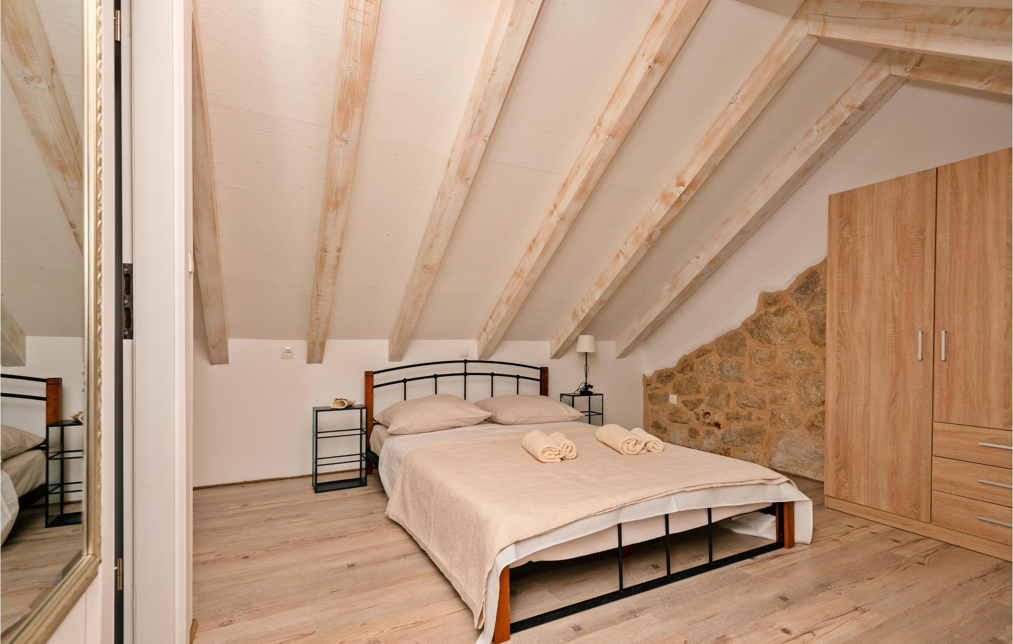 Dieses komplett renovierte Steinhaus im ursprünglichen Stil befindet sich im Landesinneren von Mitteldalmatien. Es erstreckt sich durch das Erdgeschoss, das durch Innentreppen mit dem ersten und zweiten Obergeschoss verbunden ist, die niedrigste Deckenhöhe im Dachgeschoss beträgt 90 cm.