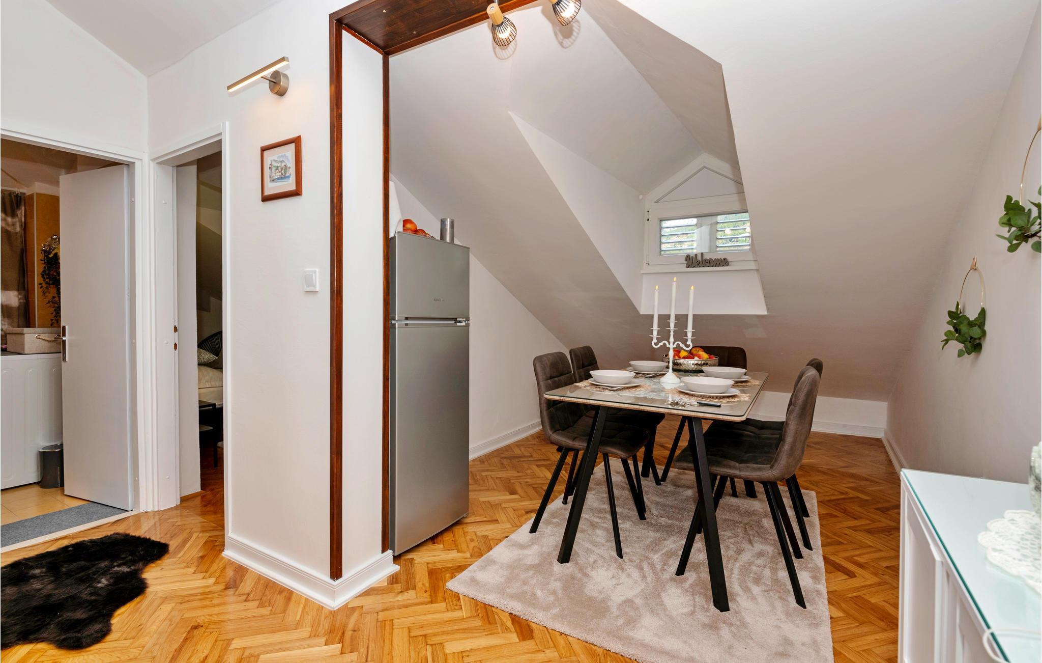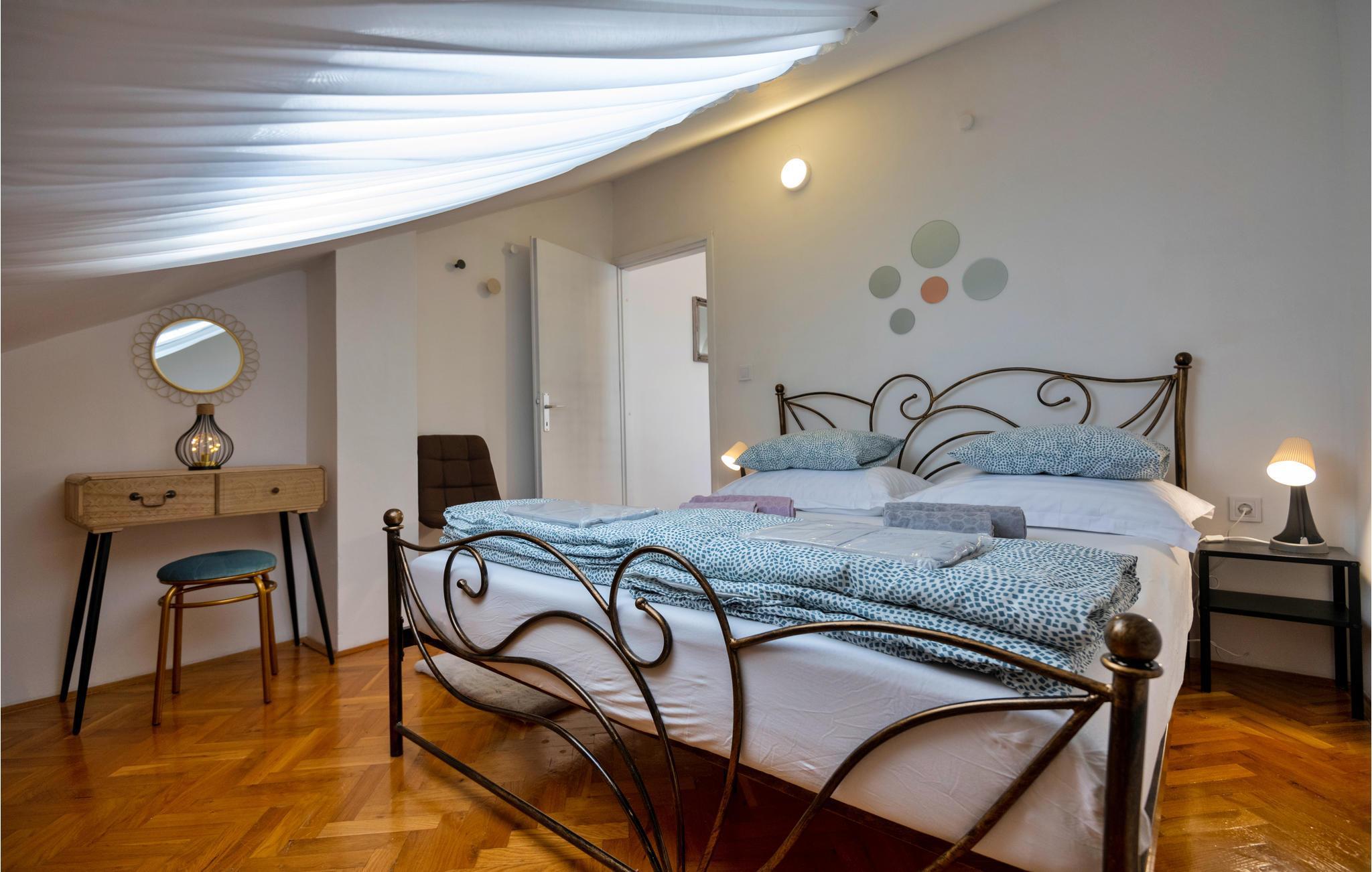 Diese geräumige und moderne Ferienwohnung befindet sich im fünften und letzten Stock eines Wohngebäudes und eignet sich gut für zwei Paare. Die Wohnung besteht aus zwei Schlafzimmern mit Doppelbetten und einem Wohnzimmer, einer Küche, einem Esszimmer und einem Badezimmer. Die Wohnung bietet einen teilweisen Blick auf das Meer und die Stadt.