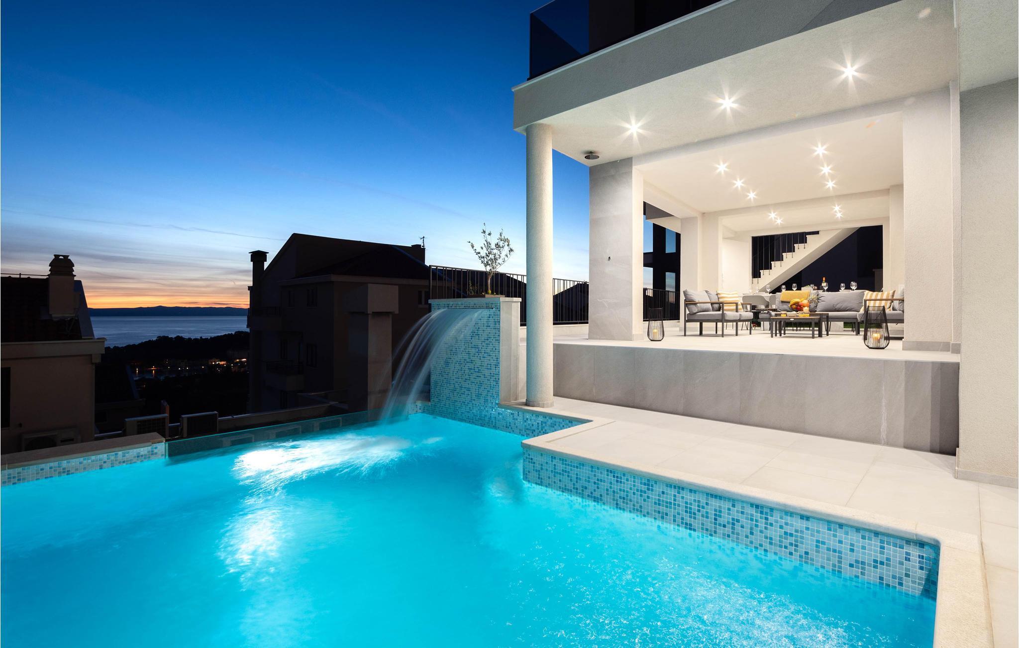 Versammeln Sie Ihre Familie oder Ihre besten Freunde und beziehen Sie diese außergewöhnlich tolle Villa mit weiter Aussicht über das Zentrum von Makarska und der Adria. Verteilt auf fünf Schlafzimmer, vier Badezimmer und geräumige Gemeinschaftsbereiche findet hier jeder Gast einen Platz. Terrasse, Balkon und Pool sind hell und freundlich gehalten und alle in Richtung des Meeres ausgerichtet.