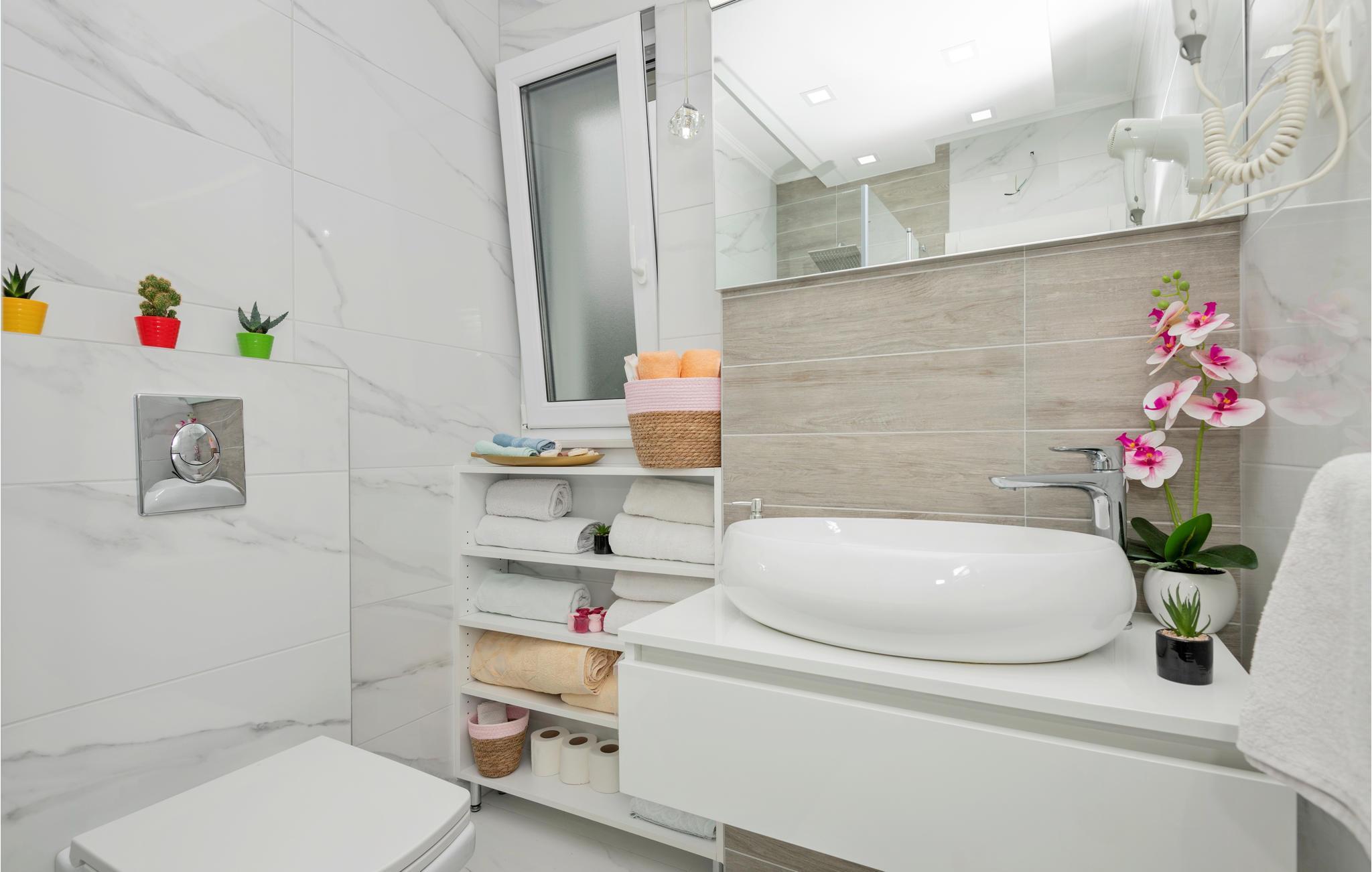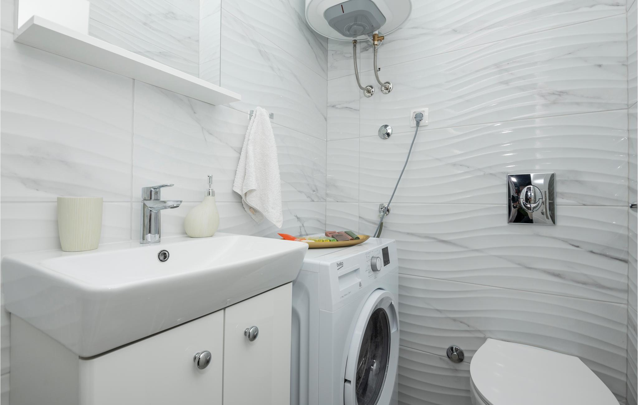 Badezimmer 5m2 (nr. 1) - WC. Warmes und kaltes Wasser. Dusche