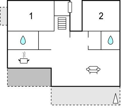 Badezimmer (nr. 2) - WC. Warmes und kaltes Wasser. Dusche