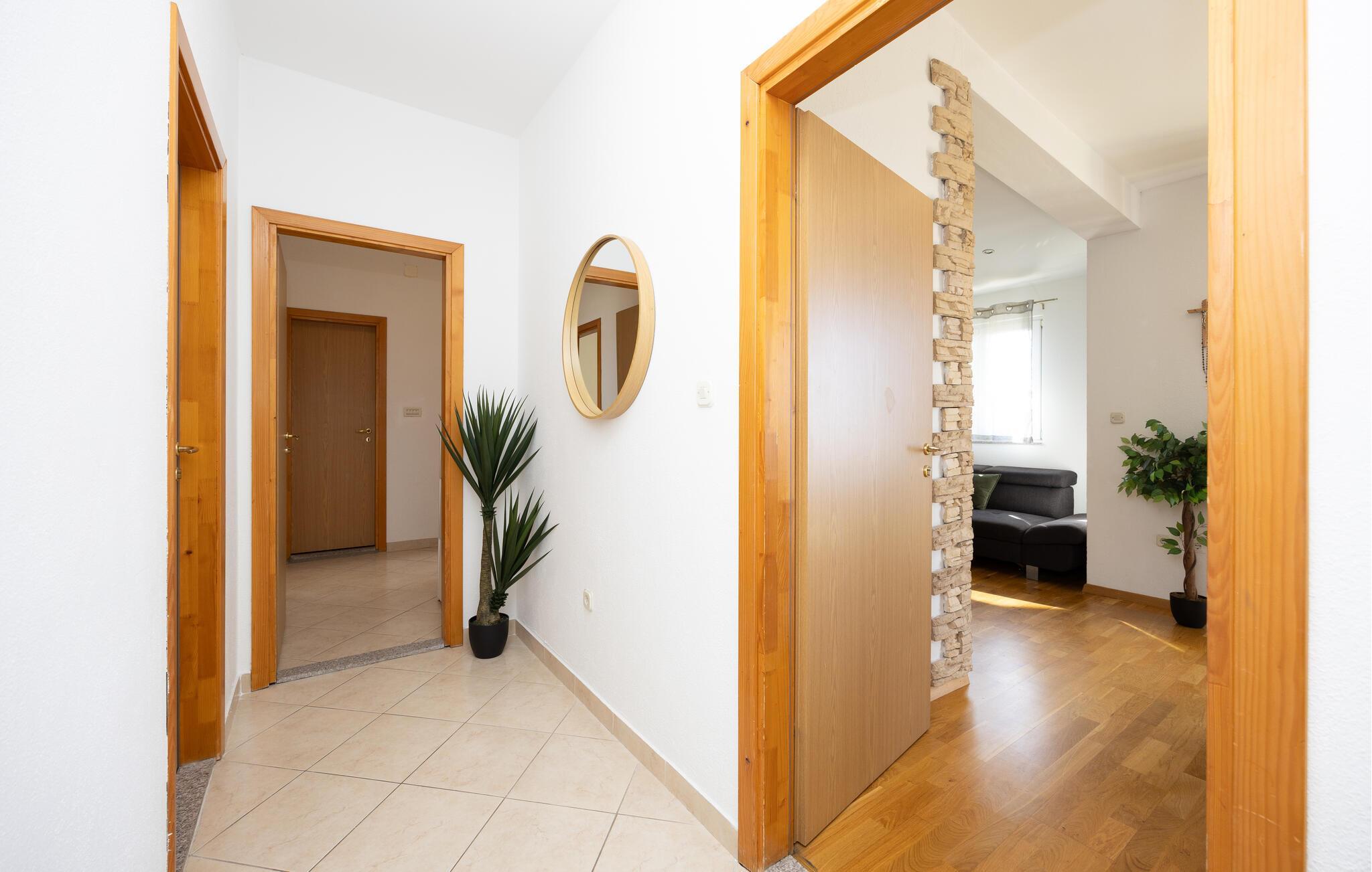 Willkommen in Ihrer stilvollen Ferienwohnung im malerischen Makarska. Diese geräumige Unterkunft im zweiten Stock ist ideal für einen entspannten Urlaub an der kroatischen Küste. Geschmackvoll eingerichtet und mit allem Nötigen ausgestattet, bietet die Wohnung eine komfortable Basis für Ihre Auszeit vom Alltag. Die moderne Küche ist bestens ausgestattet und lädt dazu ein, köstliche Mahlzeiten zuzubereiten, die Sie im offenen Wohnraum oder auf einem der beiden Balkone genießen können. Hier erwartet Sie ein fantastischer Meerblick.