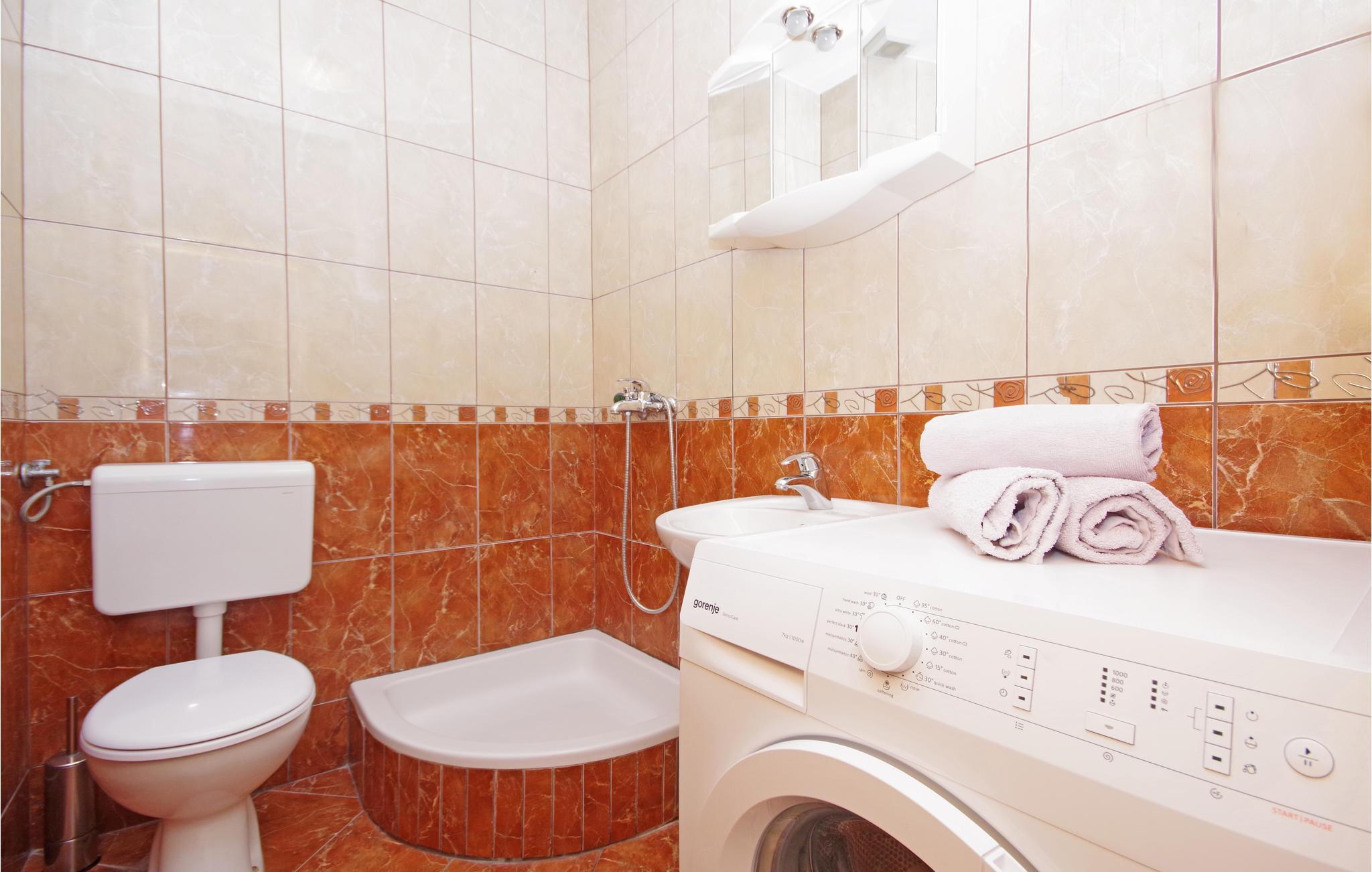 Badezimmer (nr. 2) - WC. Warmes und kaltes Wasser. Dusche