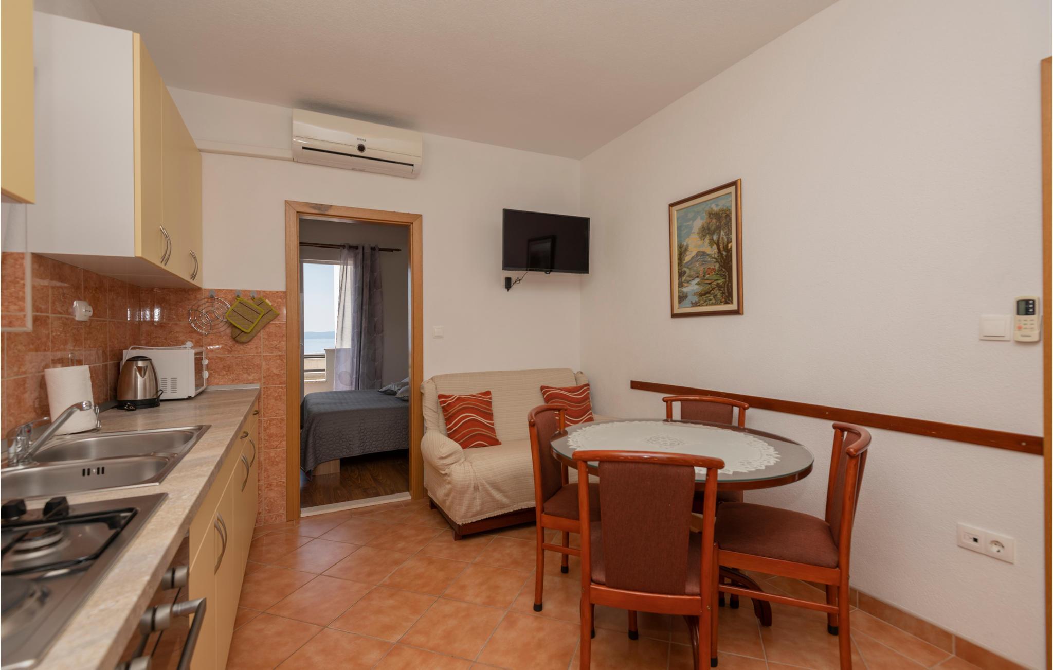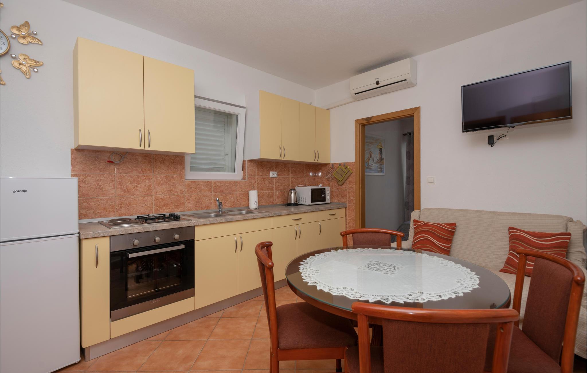 Auf einer Anhöhe oberhalb der schönen Stadt Makarska liegt das Haus mit diesen einfach und geschmackvoll eingerichteten Ferienwohnungen für einen traumhaften Urlaub. Mehrere Familien, die gemeinsam verreisen wollen, können diese Wohnungen zusammen buchen. Die Wohnung CDF537 befindet sich im Erdgeschoss, während CDF538 und CDF539 im ersten Stock liegen, und alle verfügen über einen eingeschränkten Blick auf das Meer und die Stadt Makarska. Vor dem Haus befinden sich die gemeinsame Terrasse mit Grill und Spielgeräte für Kinder. Das Stadtzentrum mit dem vielfältigen Angebot können Sie in einigen Fahrminuten erreichen.