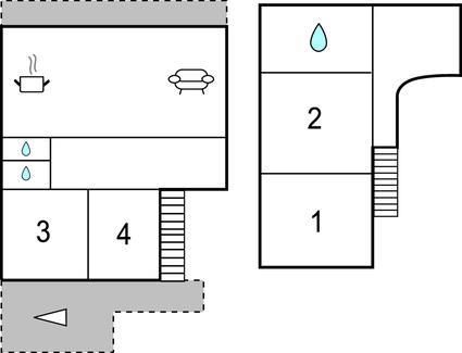 Badezimmer (nr. 1) - WC. Warmes und kaltes Wasser. Dusche