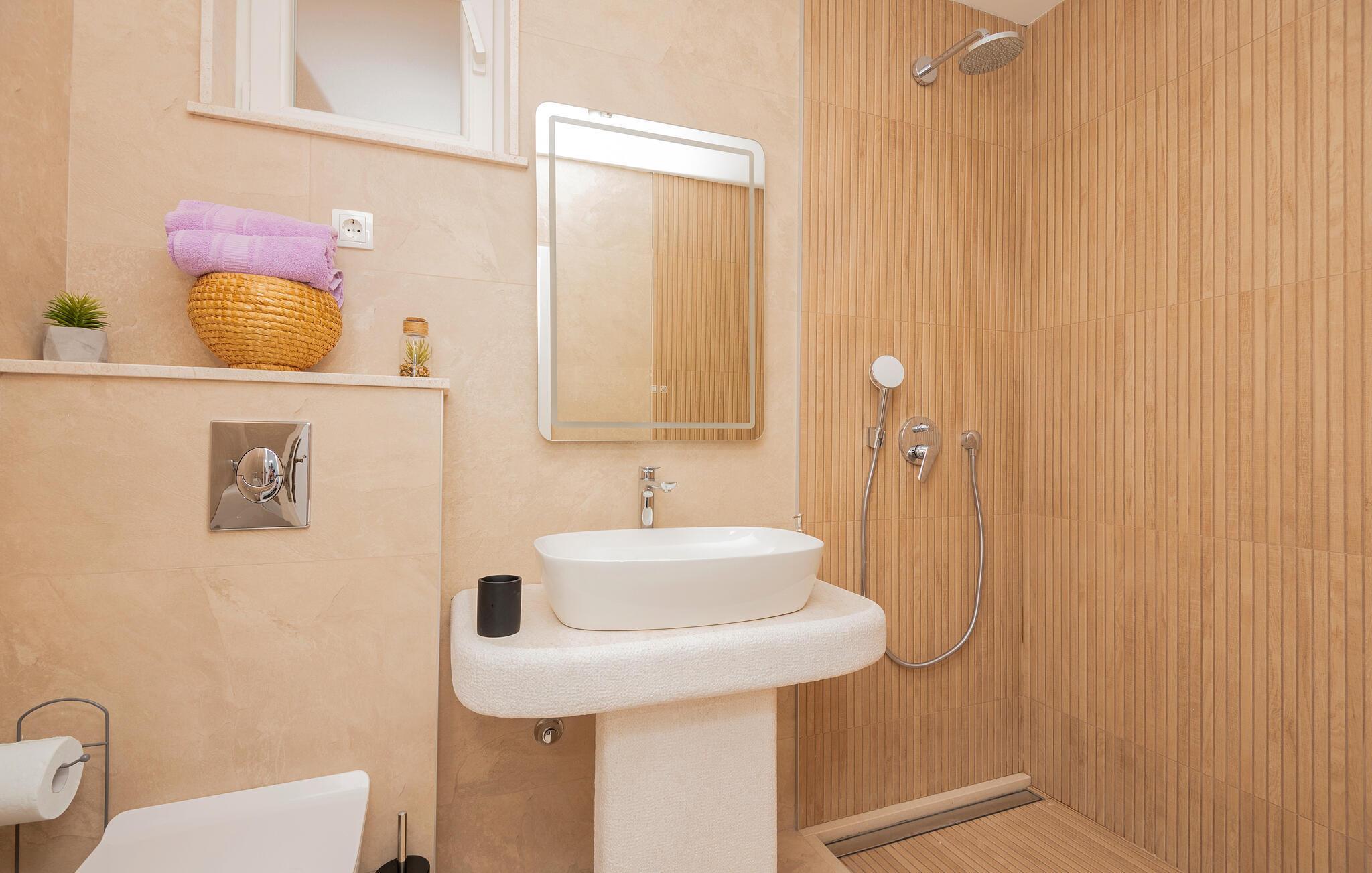Badezimmer (nr. 1) - WC. Warmes und kaltes Wasser. Dusche