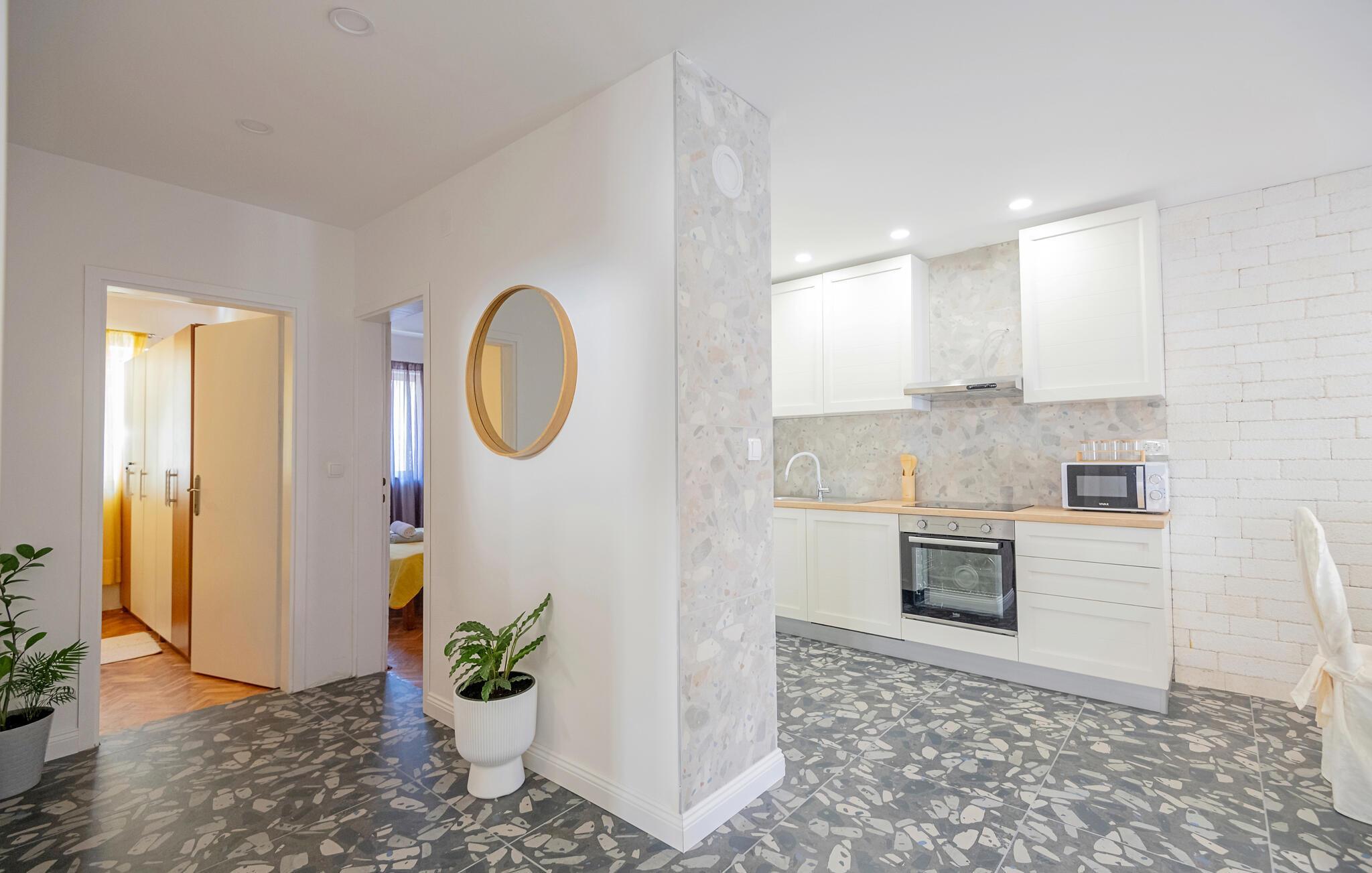 Diese einfach eingerichtete Ferienwohnung befindet sich im 1. Stock. Das Haus liegt in einer besonders schönen Umgebung und sehr guten Viertel der Stadt. Sie besteht aus 2 Schlafzimmern, Wohnzimmer, Küche und ein Bäderzimmer. Im Erdgeschoss ist ein Weinkeller vorhanden. Lange Kiesstrände mit verschiedenen Einrichtungen sind in nur wenige Minuten zu Fuß erreichbar. Machen Sie auch einen romantischen Spaziergang entlang der lebendigen Uferpromenade in Zentrum von Makarska. Hier sind zahlreiche Cafés, Restaurants und Souvenierläden aneinandergereiht.