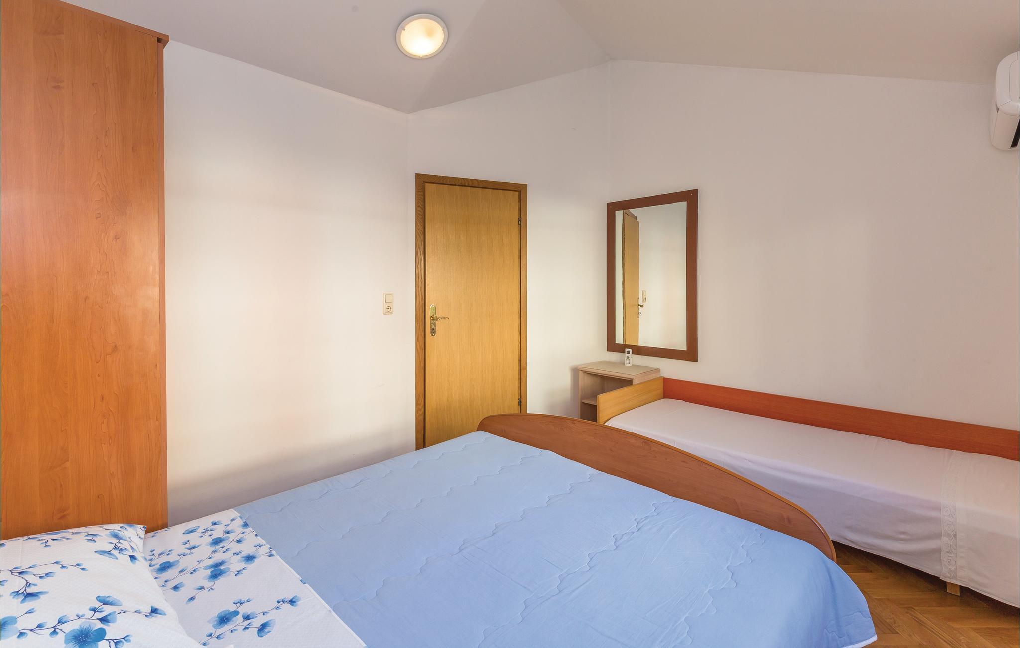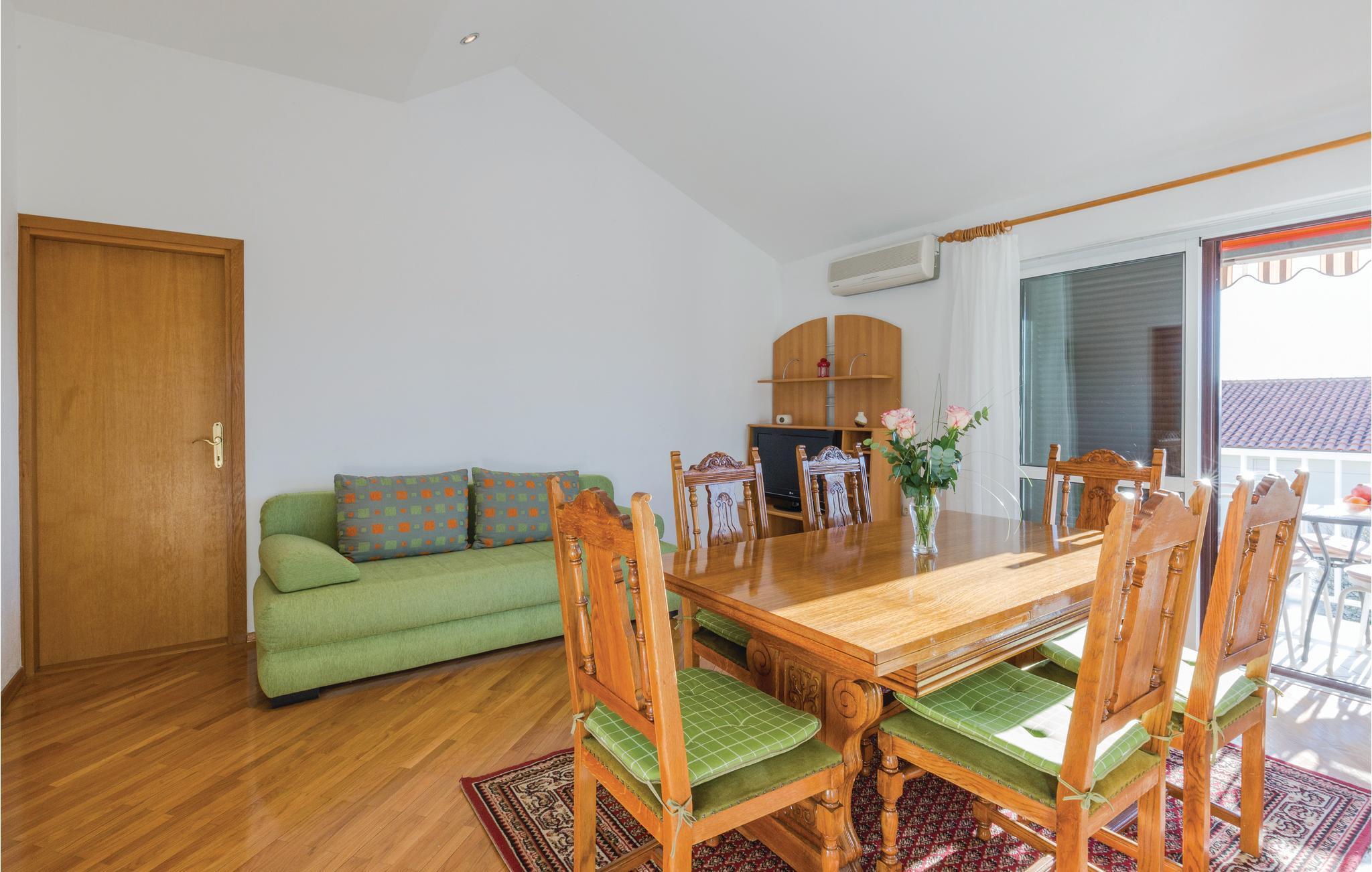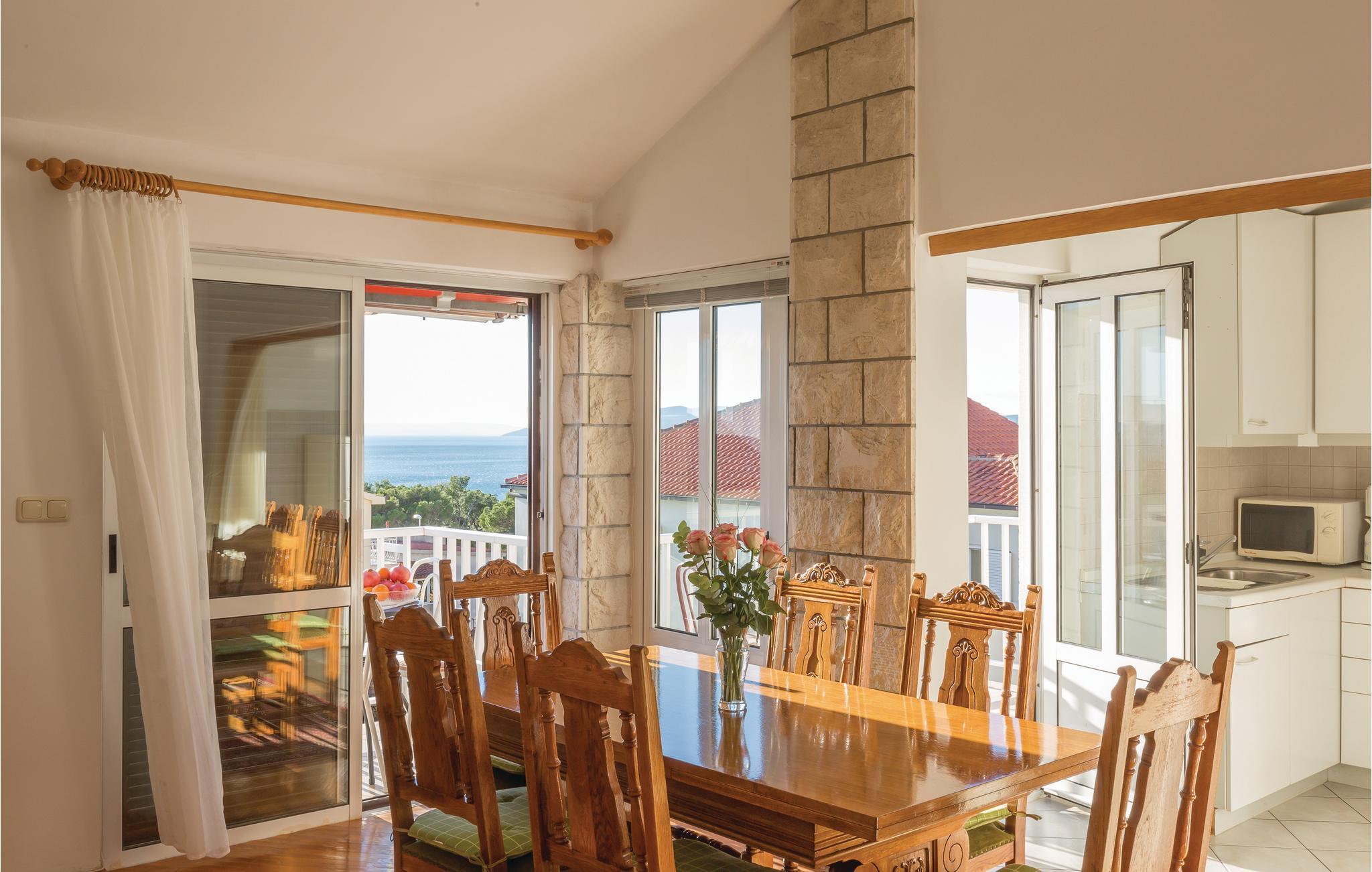 Diese funktionell eingerichtete Ferienwohnung befindet sich im zweiten Stock eines privaten Wohnhauses, nicht weit vom Zentrum des schönen Ferienortes Makarska entfernt. Den Strand erreichen Sie ebenfalls in nur wenigen Minuten zu Fuß. Von der Terrasse genießen Sie den herrlichen Ausblick auf die Stadt und auf die Insel Brac. Unternehmen Sie Ausflüge auf die nächstliegenden Inseln, machen Sie Picknick im Biokovo Gebirge auf dem Weg hinauf zur höchsten Erhebung im Nationalpark – dem 1762 m hohe Sveti Jure, besichtigen Sie die Kulturdenkmäler aus dem 11. Jahrhundert oder Sie genießen sportliche Aktivitäten am Wasser.