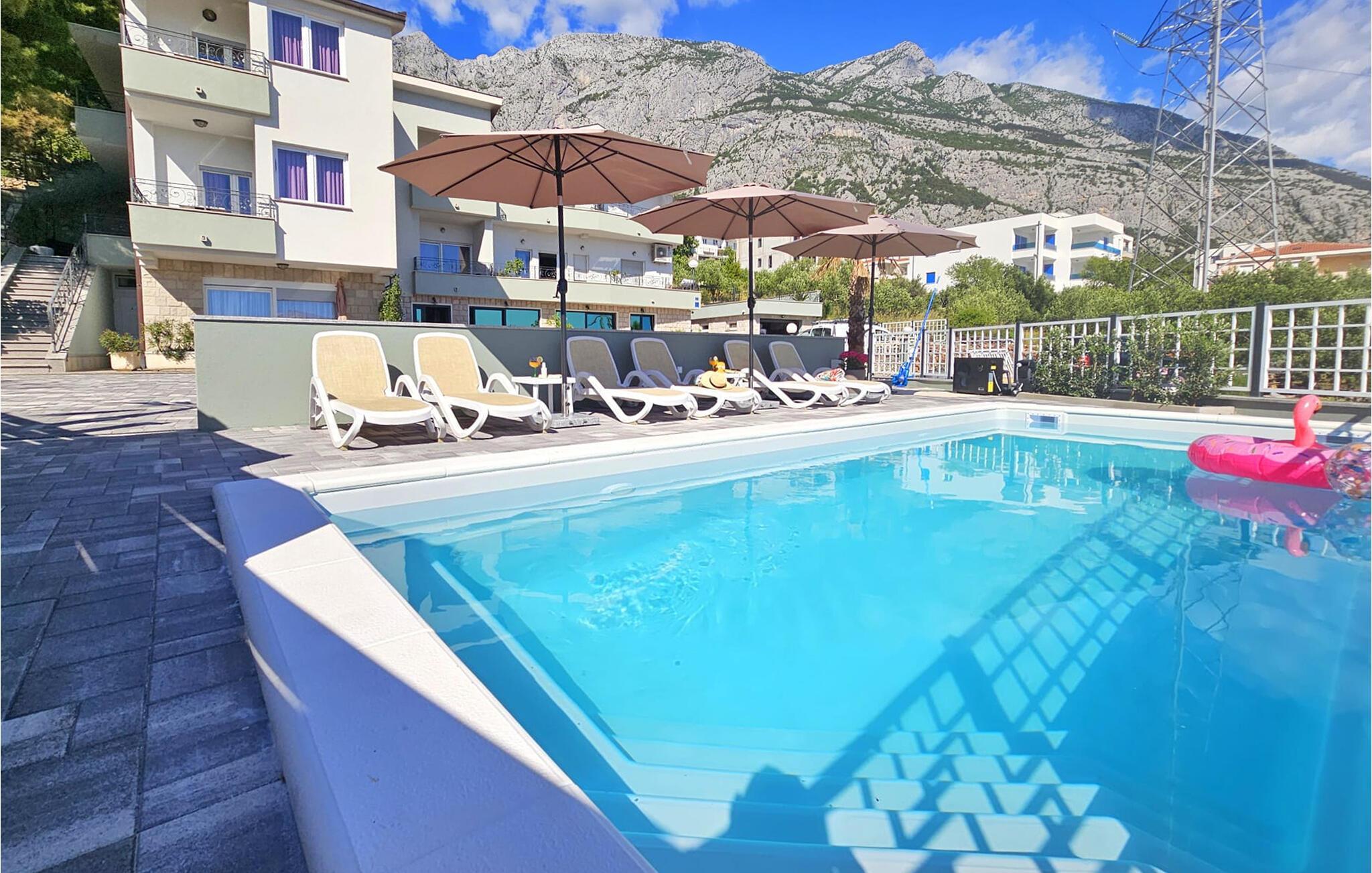 In einem ansprechenden Haus mit mehreren Wohneinheiten erwarten Sie diese beiden komfortablen und funktionalen Ferienwohnungen. Die Ferienwohnung CDT832 ist die größere der beiden Wohnungen, sie hat zwei Schlafzimmer, zwei Bäder, Küche und Wohnzimmer und Sie können den Anreisetag dort frei wählen. Die Ferienwohnung CDT833 hat dagegen ein Schlafzimmer, Bad, Küche und Wohnzimmer. Beide Wohnungen verfügen über eine Terrasse mit Panoramablick auf das Meer für schöne Stunden im Freien. Es gibt auch einen Grill für die Zubereitung schmackhafter Gerichte. Weitere Annehmlichkeiten für einen komfortablen Aufenthalt finden Sie in Zentrum von Makarska, das ca. 2 km entfernt ist.